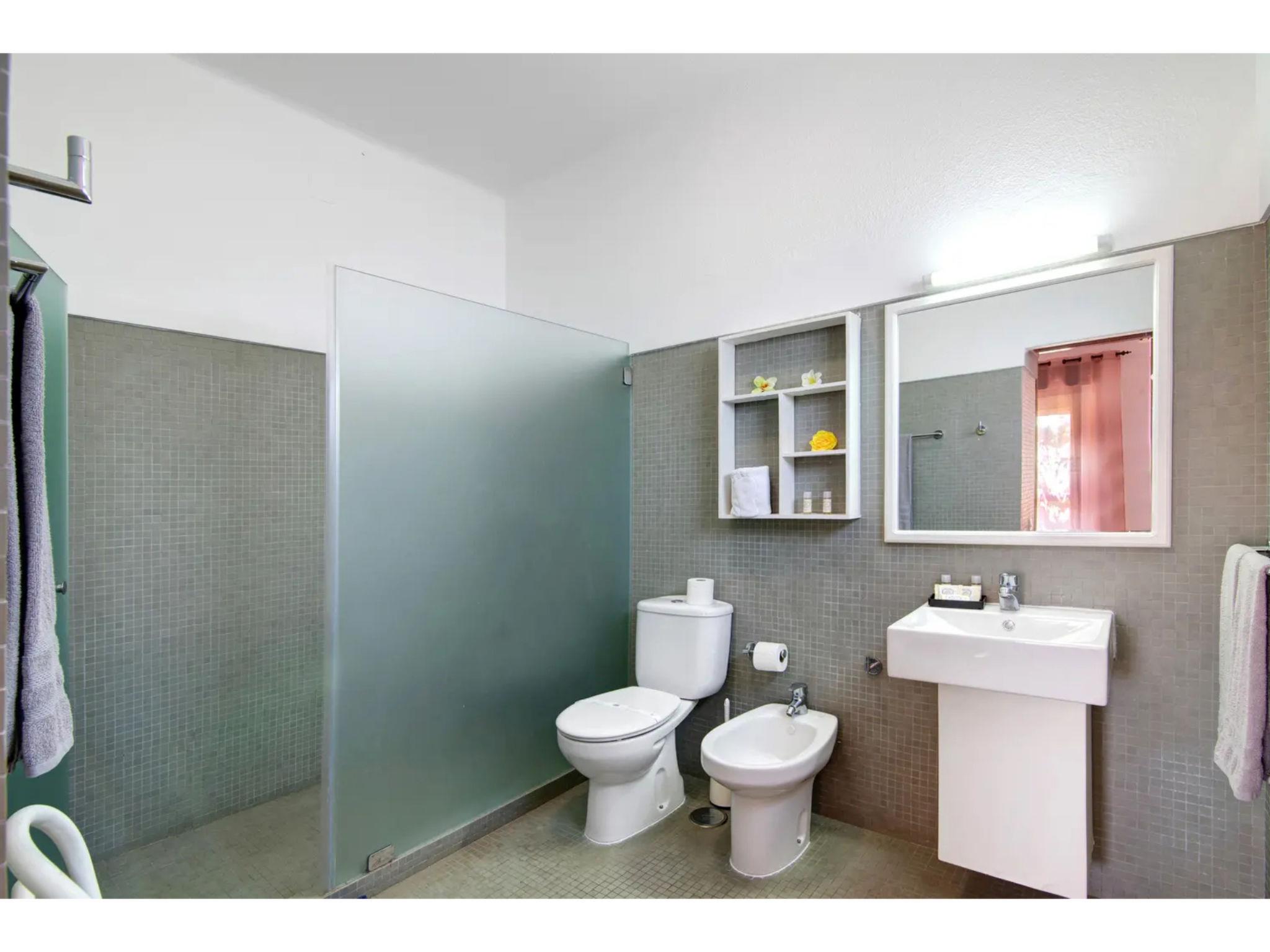 "Casa Mila - Sunny Way", 4-room house 128 m2, on the ground floor. Very cosy furnishings: living room with dining table, cable TV, flat screen, air conditioning and forced-air heating. Exit to the garden. 1 room with 2 beds (90 cm, length 200 cm), air conditioning and forced-air heating. 1 room with 2 beds (90 cm, length 200 cm), air conditioning and forced-air heating. 1 room with 3 beds (90 cm, length 200 cm), air conditioning and forced-air heating. Open kitchen (4 hot plates, oven, dishwasher, toaster, kettle, microwave, freezer, electric coffee machine). 2 showers. Garden. Terrace furniture, deck chairs (2). Facilities: washing machine, iron, hair dryer. Internet (WiFi, free). Please note: suitable for families. Fire extinguisher. 77834/AL