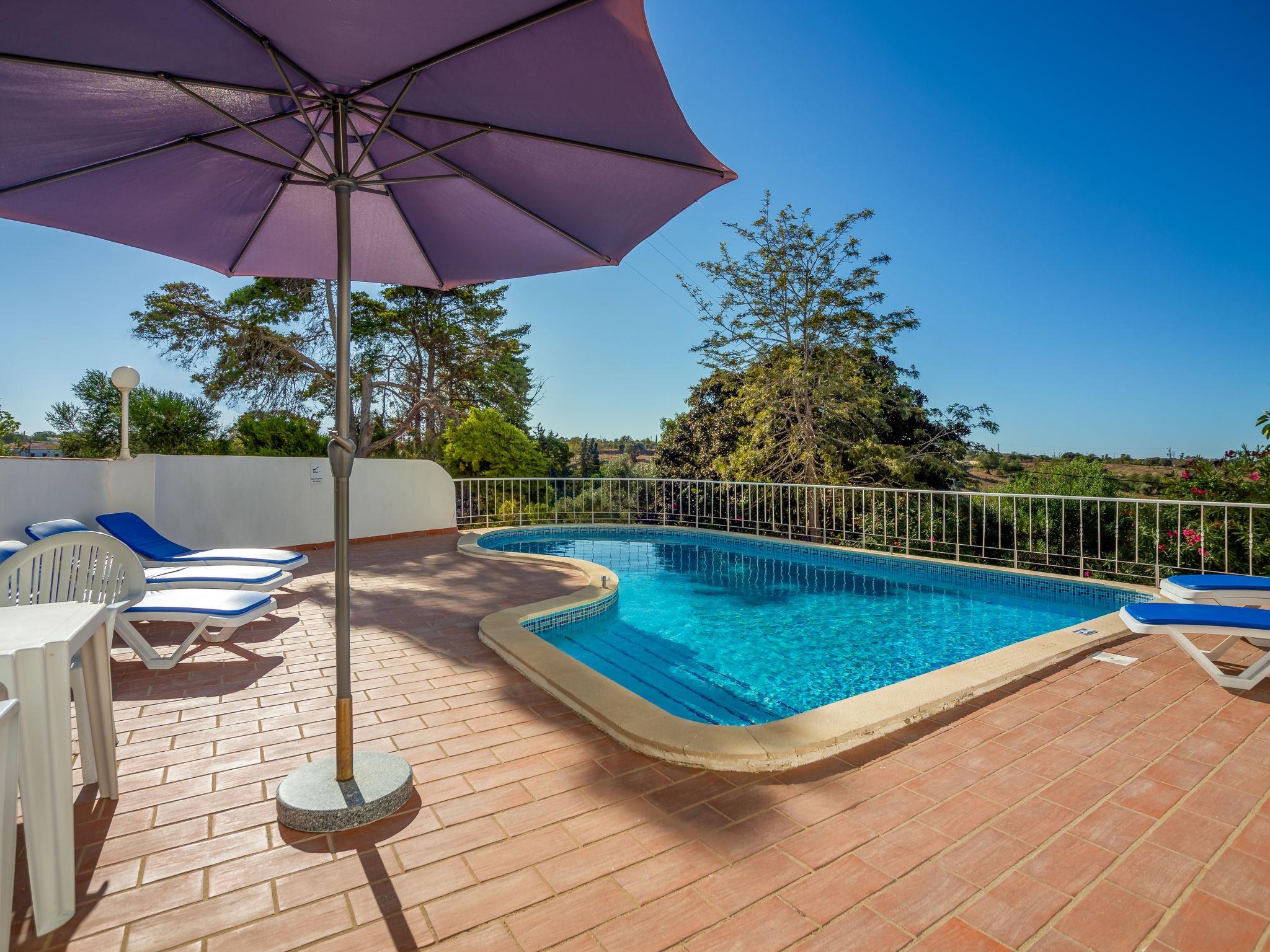 Beautiful, rustic house "Neves I", surrounded by trees and meadows. 4 km from the centre of Albufeira, 3 km from the sea. For shared use: tennis. Private: property 500 m2 (fenced) with trees, meadow, swimming pool heated (37 m2, depth 70 - 200 cm, seasonal availability: 01.Jan. - 31.Dec.) with internal staircase. Unconventional pool shape. Table tennis. In the house: sun terrace, roof terrace, burglar alarm system. Parking on the premises. Shop 2 km, restaurant 1.5 km, bus stop 1.5 km, sandy beach 4 km, outdoor swimming pool 10 km. Marina 4.5 km.