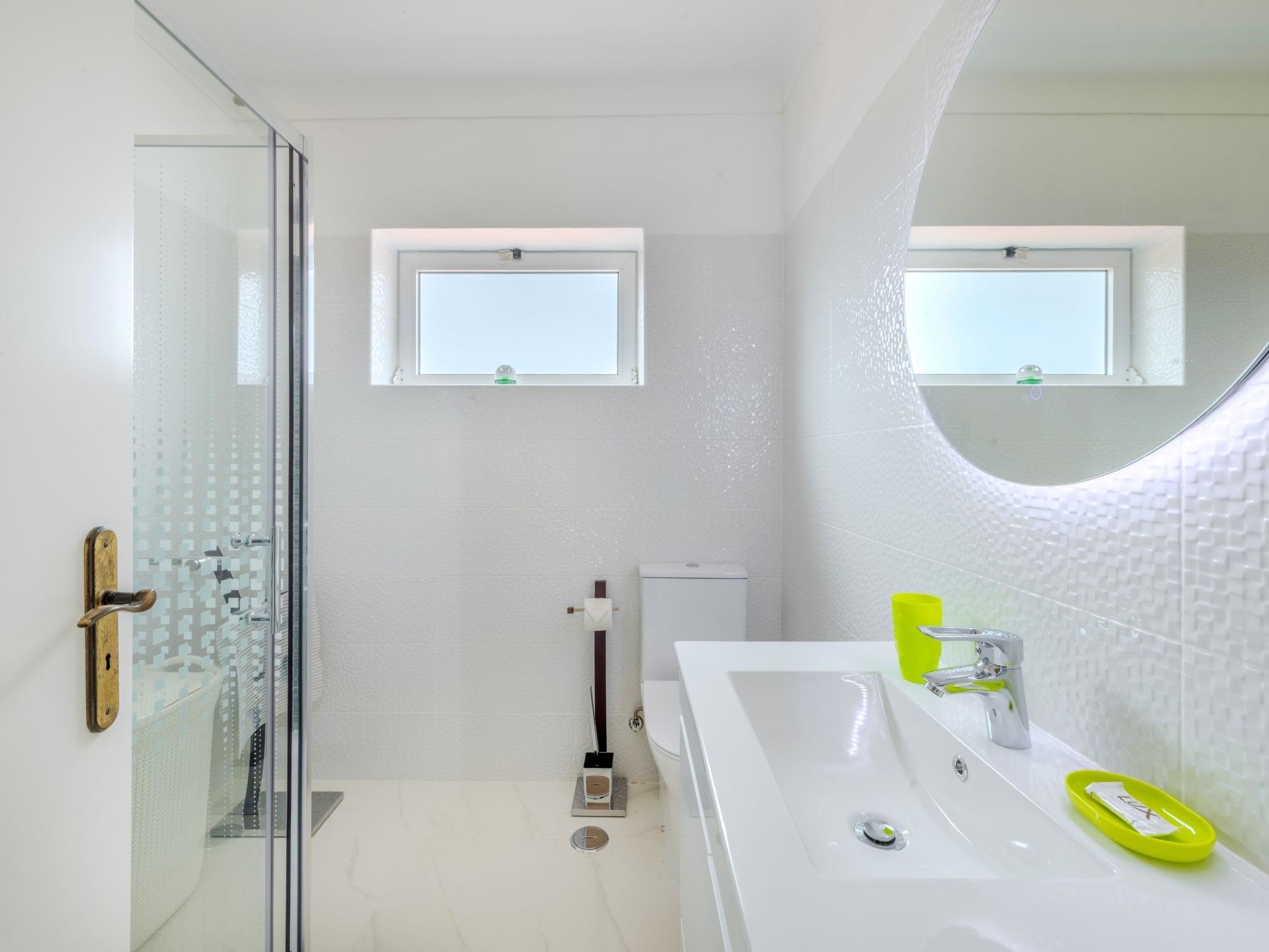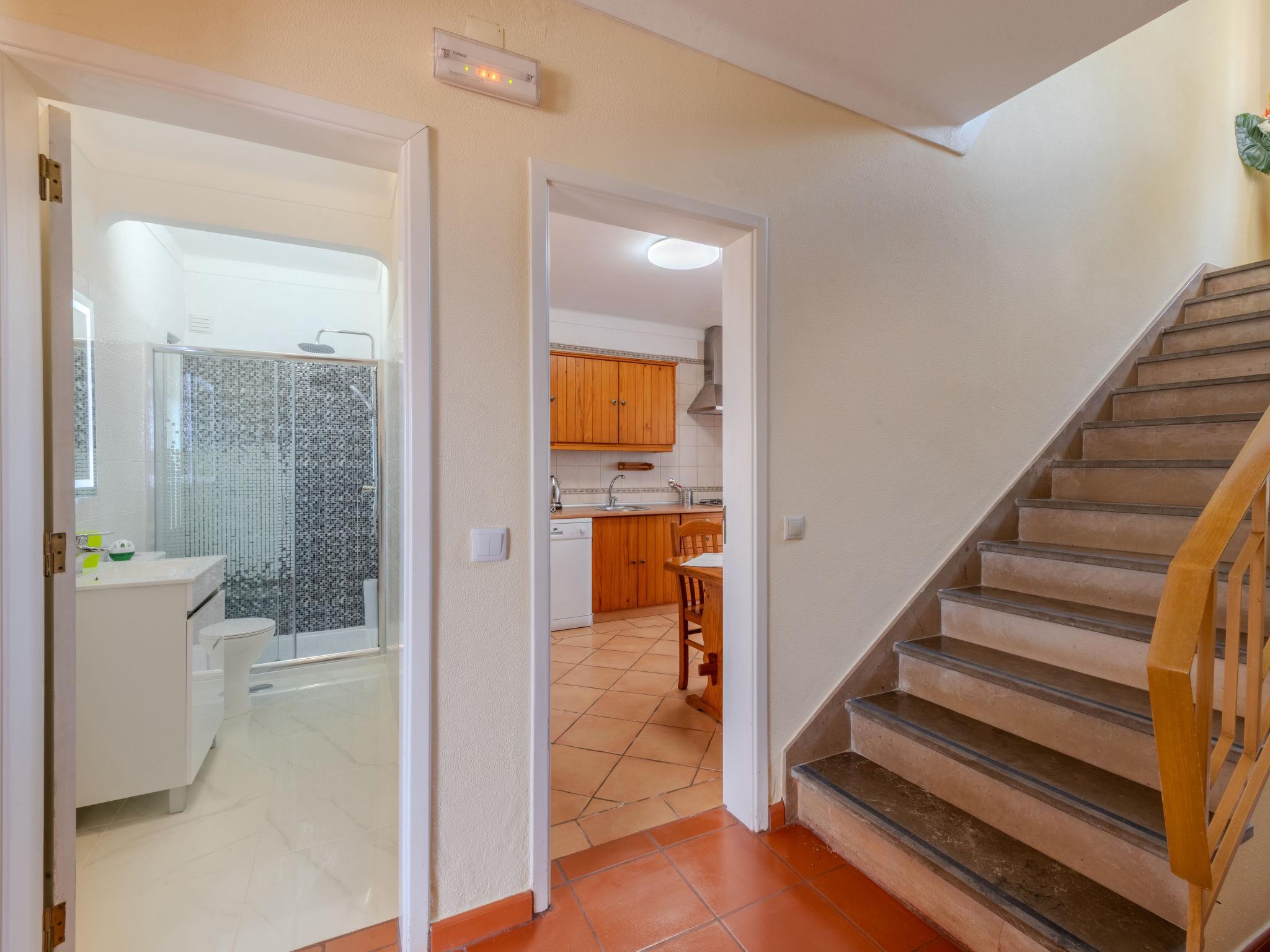 "Neves I", 4-room house 95 m2 on 2 levels. Practical and rustic furnishings: living/dining room with open-hearth fireplace (only for decoration), dining table, satellite TV and DVD. Exit to the terrace. 1 room with 2 beds (90 cm, length 200 cm), air conditioning. Exit to the terrace. Kitchen (oven, dishwasher, 4 gas rings, toaster, kettle, microwave, freezer, electric coffee machine) with dining table. Exit to the garden. Shower/WC. Upper floor: 1 room with 1 french bed (140 cm, length 200 cm), air conditioning. Exit to the terrace. 1 room with 2 beds (90 cm, length 200 cm), air conditioning. Exit to the terrace. Shower/WC. Electric heating. Heating not available in all rooms. Parquet floors. Terrace roofed. Terrace furniture, barbecue, deck chairs (6). Facilities: washing machine, safe, iron, children's high chair, baby cot, hair dryer. Internet (WiFi, free). Please note: non-smokers only. Smoke alarm, fire extinguisher. 42696/AL