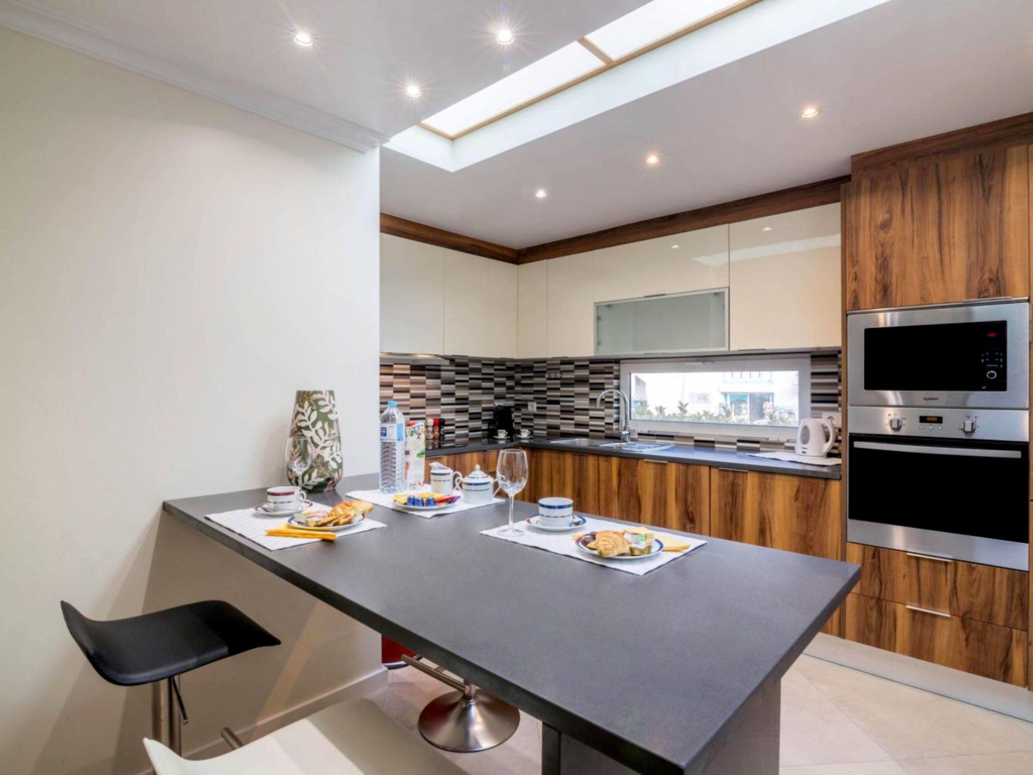 "Malick- Sunny Way", 2-room apartment 53 m2. Very cosy furnishings: living room with cable TV, flat screen, air conditioning and forced-air heating. 1 room with 1 french bed (180 cm, length 200 cm), air conditioning and forced-air heating. Kitchenette (4 hot plates, oven, dishwasher, toaster, kettle, microwave, freezer, electric coffee machine). Shower/WC. Facilities: iron, hair dryer. Internet (WiFi, free). Please note: suitable for families. No lift. 119435/AL