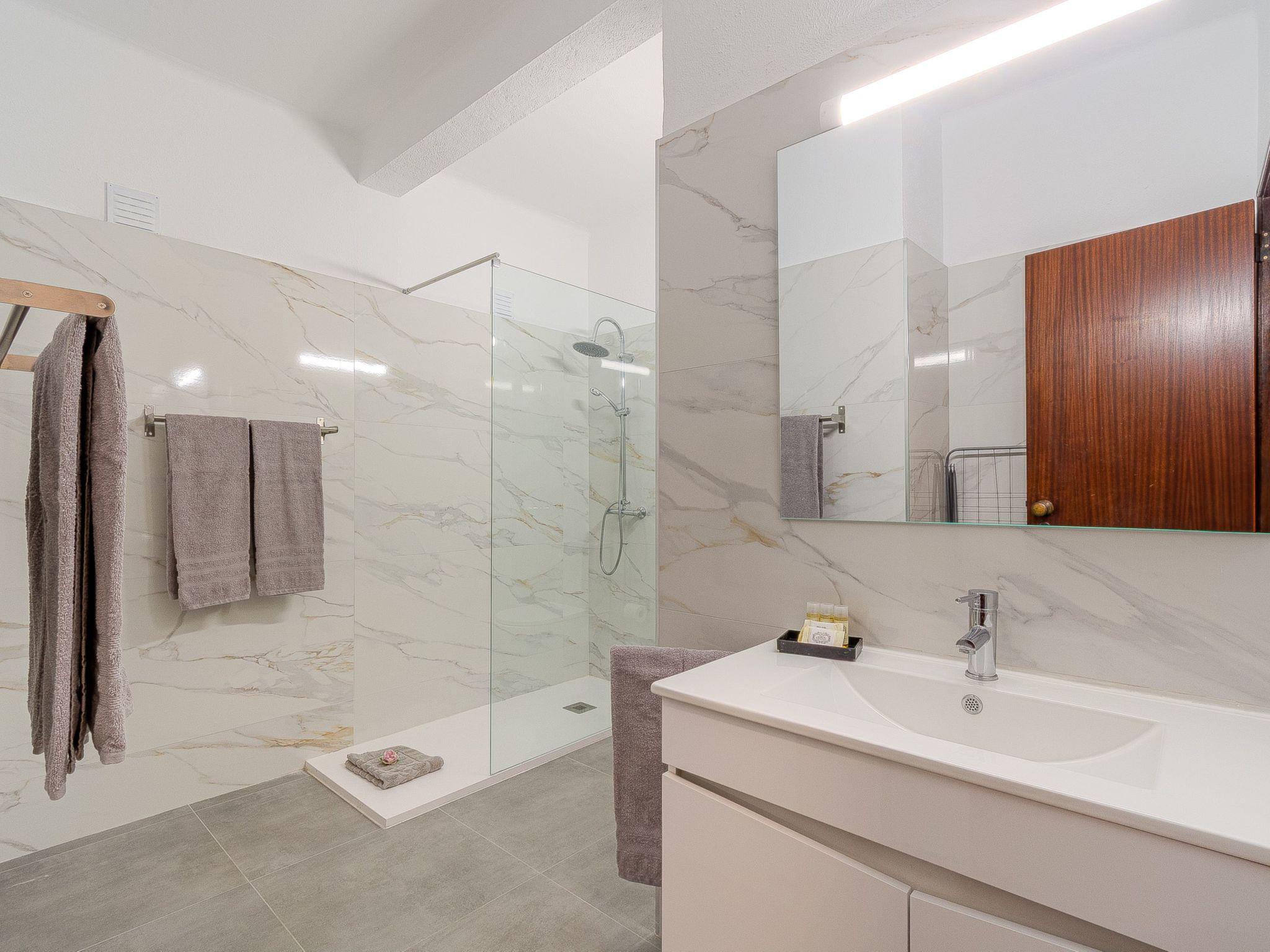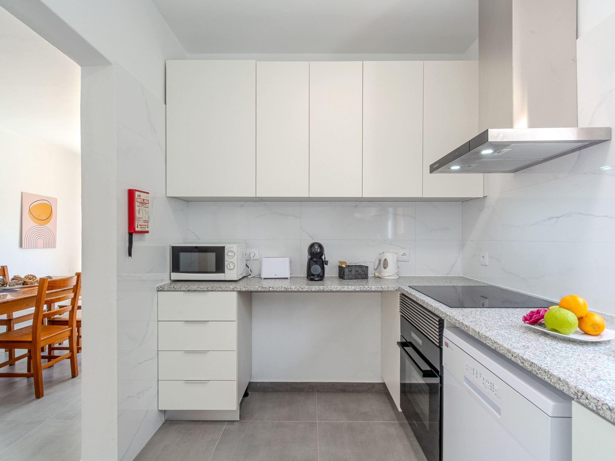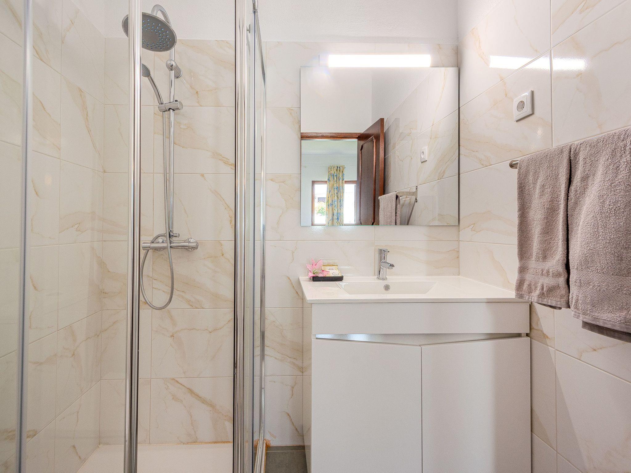 "Amélia - Sunny Way", 4-room villa 100 m2. Very practical and cosy furnishings: living room with dining table, cable TV, flat screen, air conditioning and forced-air heating. 1 room with 2 beds (90 cm, length 200 cm), air conditioning and forced-air heating. 1 room with 2 beds (90 cm, length 200 cm), air conditioning and forced-air heating. 1 room with 2 beds (90 cm, length 200 cm), air conditioning and forced-air heating. Kitchen (4 hot plates, dishwasher, toaster, kettle, microwave, freezer, electric coffee machine). 2 showers/WC. Small balcony. Balcony furniture. Facilities: washing machine, iron, hair dryer. Internet (WiFi, free). Please note: suitable for families. Fire extinguisher. 47034/AL