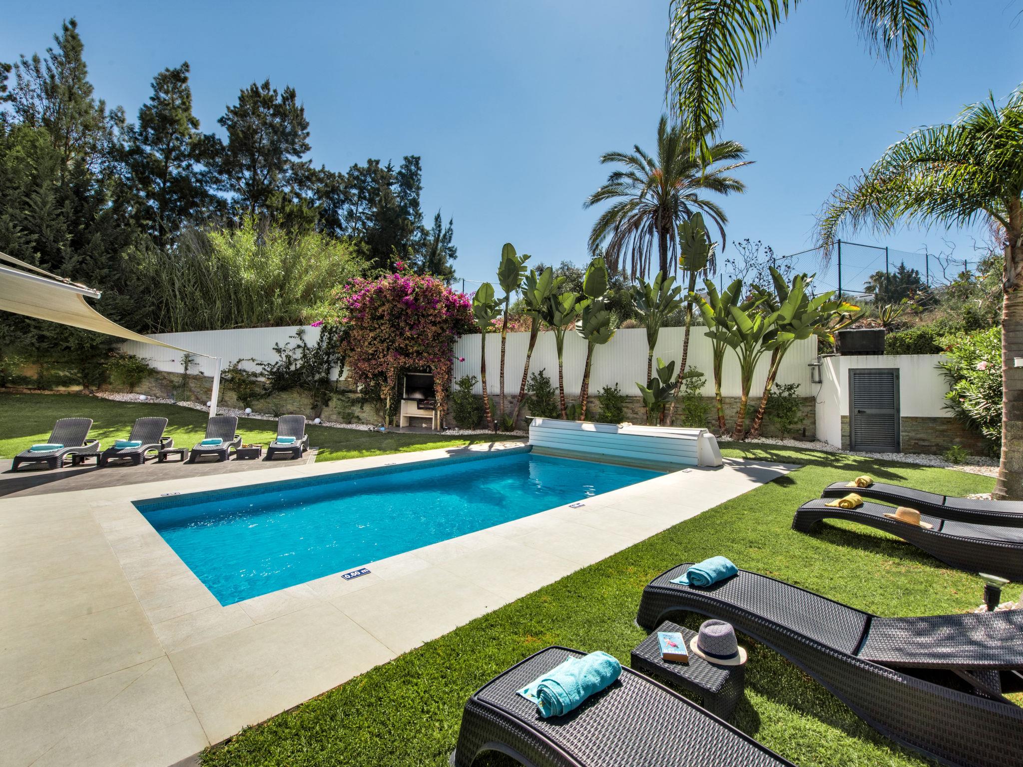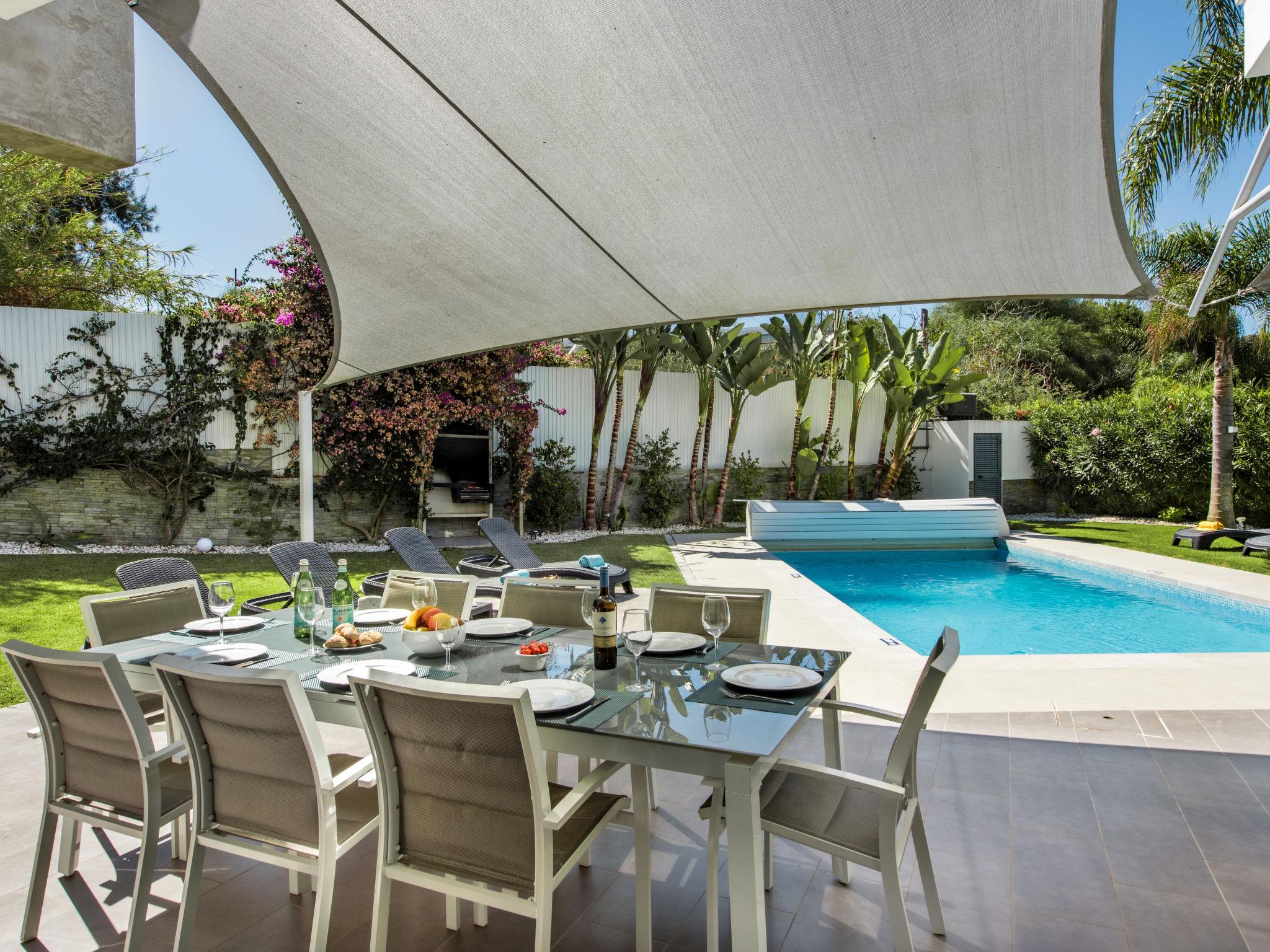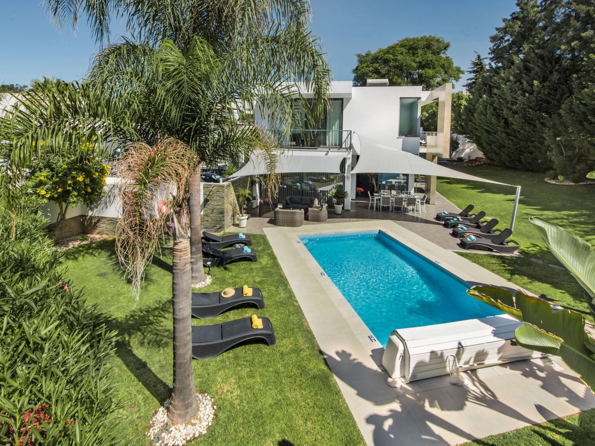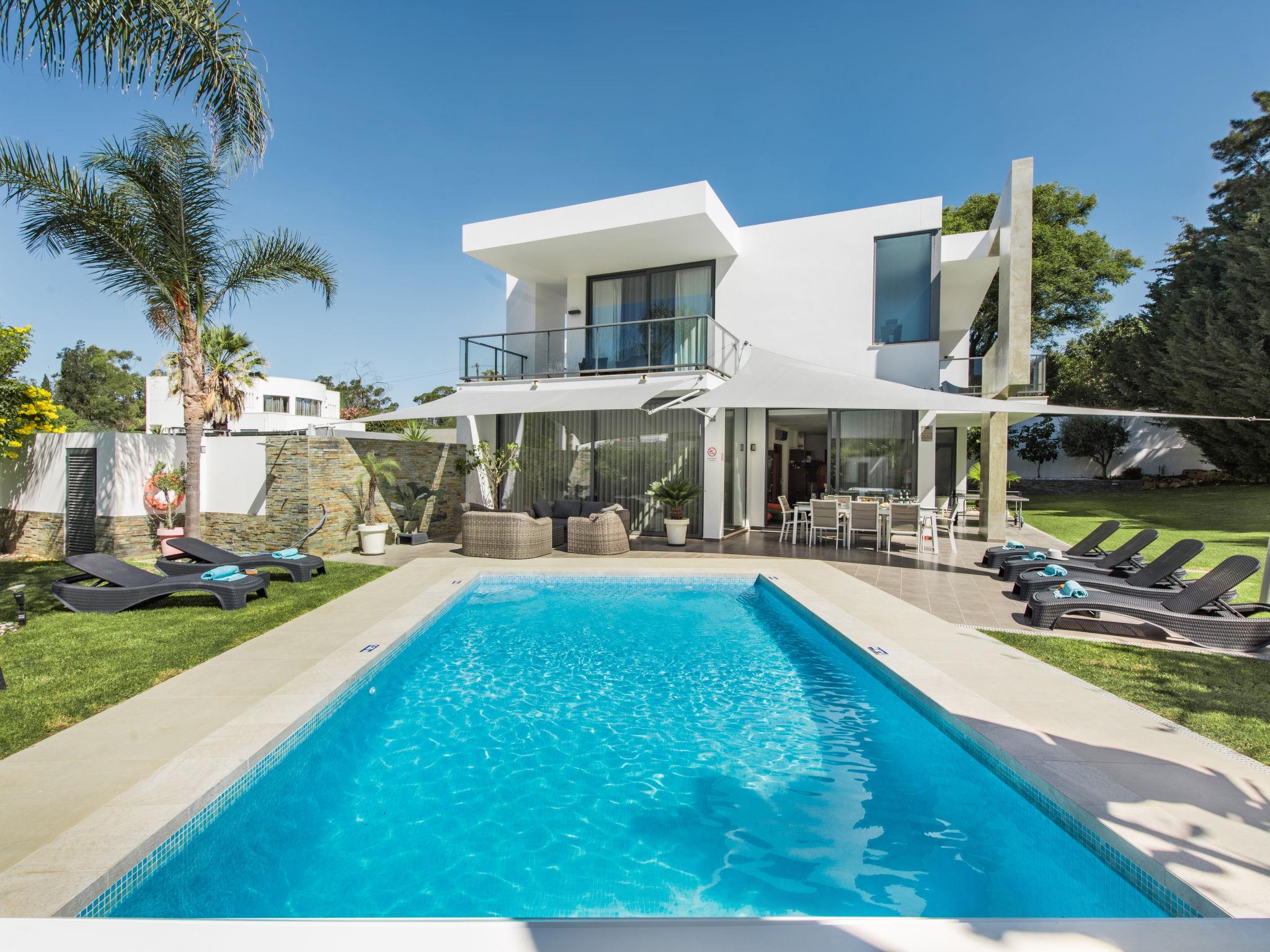 Very cosy, comfortable villa "Nobre - VIP Properties". Outside the resort, 4.7 km from the centre of Albufeira, 1.8 km from the sea. Private: swimming pool angular, heated (5 x 10 m, depth 110 - 170 cm, seasonal availability: 01.Jan. - 31.Dec.). Shower/WC in the pool area, table tennis, garden furniture, barbecue. In the house: WiFi, fitness room, table tennis, air conditioning, washing machine, drying room. Parking at the house. Shop 2.5 km, grocery 2.2 km, supermarket 1.3 km, shopping centre 3.7 km, restaurant 1 km, bar 2.4 km, bakery 2.2 km, café 1 km, bicycle rental 5.2 km, bus stop 1 km, sandy beach "Praia Maria Luísa" 1.8 km, diving center 8.8 km. Marina 8.5 km, golf course (18 hole) 900 m, surf school 6.5 km, tennis 4.1 km, minigolf 3.3 km, riding stable 3.5 km, children's playground 3.9 km. Nearby attractions: Zebra Safari Tours 2.9 km, Adventure Mini Golfe Park 3.5 km, Algarve Shopping - Guia 10.3 km, Zoomarine 12.9 km, Krazy World 16.4 km, Faro Airport 34 km. Well-known lakes can easily be reached: Lagoa dos Salgados 16 km. Please note: car recommended. Suitable for families. Loading and unloading of baggage is possible at the holiday house. Young groups under 25 y.o. will be charged an extra deposit per person on spot. The pool heating service (20ºC-22ºC) must be informed to the KH one week before of your arrival paid on spot. After 7 nights extra 50€ per day for pool heating.