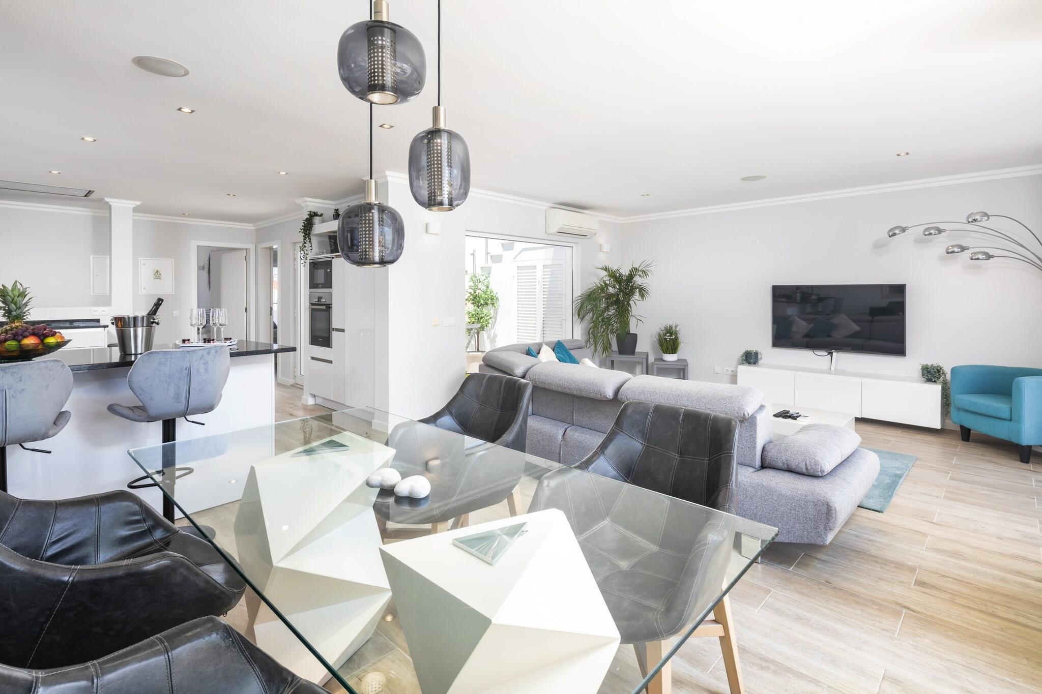 I 2. etasje: (åpent kjøkken(vannkoker, brødrister, kaffetrakter, stekovn, mikrobølgeovn, oppvaskmaskin, kjøleskap med fryser, Juicemaskin, ), Stue/spisestue(1 persons sovesofa, TV(flatskjerm, satellitt, Smart-TV), spisebord, sittehjørne, radio), soveværelse(enkeltseng, enkeltseng, TV(flatskjerm, satellitt, Smart-TV)), soveværelse(king size dobbeltseng, TV(flatskjerm, satellitt, Smart-TV)), bad(dusj, Hårtørker, , ), bad(dusj, Hårtørker, , ), Internett-tilgang) Hagemøbler, tørketrommel, vaskemaskin, balkon, oppvarming(sentral), klimaanlegg, terrasse, grill, parkering, svømmebasseng(oppvarmet), strykebrett, strykejern, Hårtørker, , Wine glasses