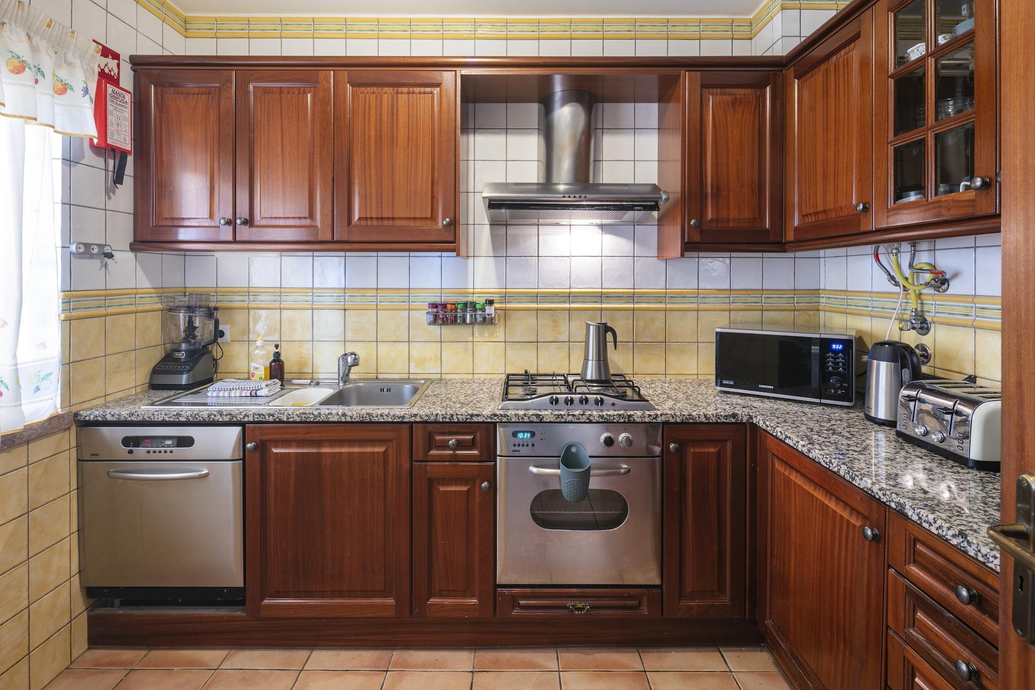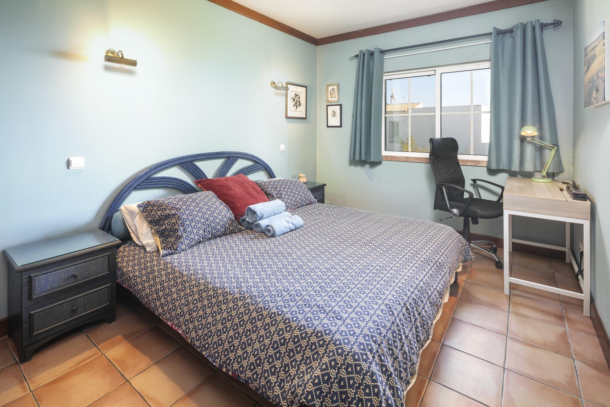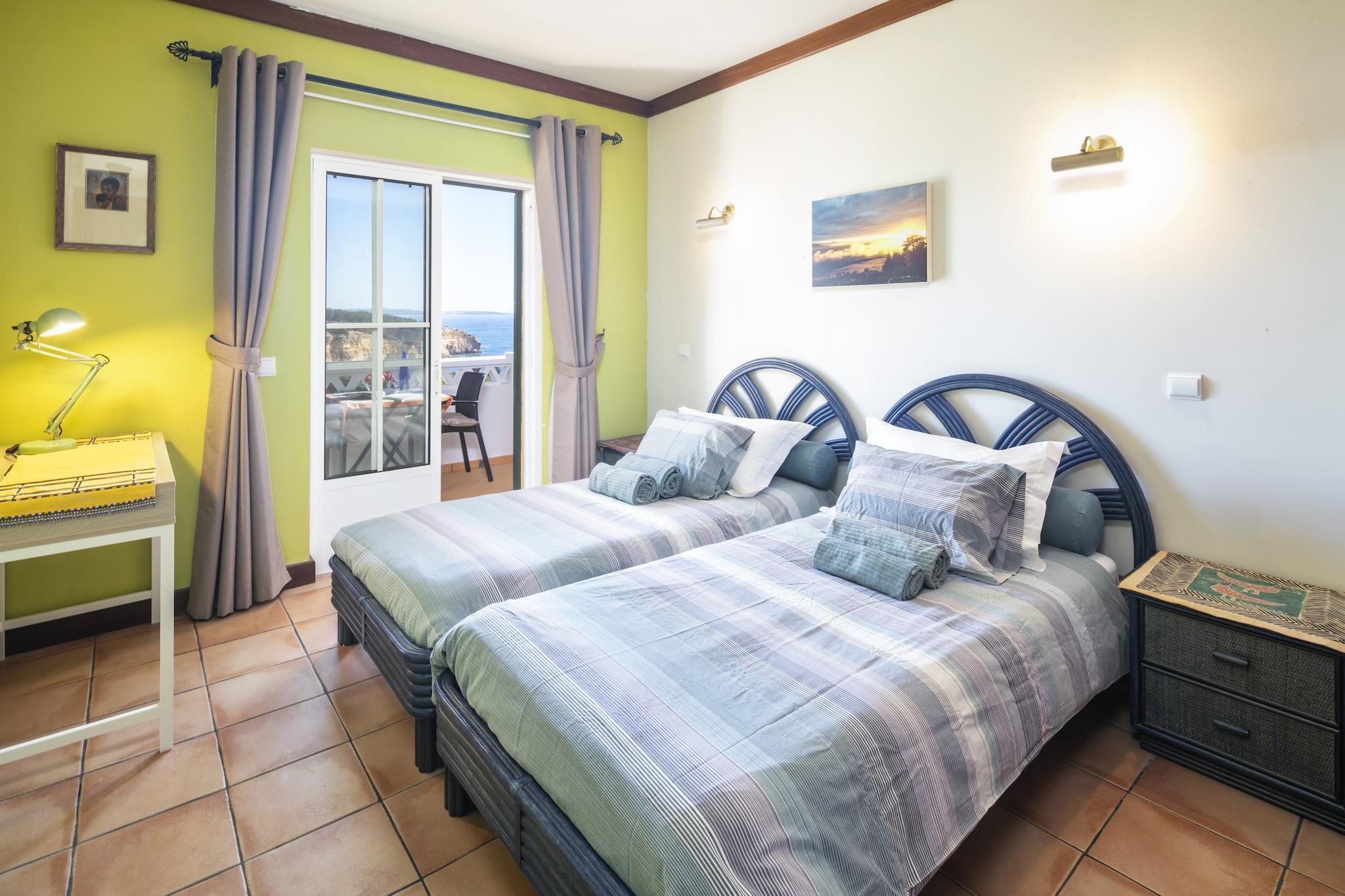 Plassert i den sjarmerende kystbyen Benagil, er dette innbydende feriehuset et fristed for familier, par og vennegrupper som søker en minneverdig flukt. Med fantastisk havutsikt som møter deg hver morgen og sandstrender bare en rolig spasertur unna, fungerer denne eiendommen som en herlig base for å utforske den pittoreske Algarve-regionen. Den rolige atmosfæren og det fantastiske landskapet gjør det til en ideell setting for å skape varige minner. Med nærliggende attraksjoner som den fantastiske Praia de Benagil og den berømte Vale do Milho Golf, er det noe for enhver smak i denne herlige oase. Enten du søker avslapning eller eventyr, lover dette feriehuset i Benagil en uforglemmelig opplevelse i hjertet av Algarve. Innvendig har hjemmet to romslige soverom designet for å gi komfort og avslapning for opptil fire gjester. Hovedsuiten, utsmykket med en myk king-size-seng, tilbyr en rolig flukt, mens det andre soverommet er utstyrt med to individuelle senger – perfekt for venner eller barn. Nyt bekvemmeligheten til et moderne kjøkken, fullt utstyrt med alt du trenger for å lage deilige familiemåltider, som kan nytes i spisestuen eller utendørs på den møblerte terrassen med utsikt over det glitrende havet. For ekstra komfort har hvert rom individuelt kontrollert klimaanlegg, og den koselige stuen har flatskjerm-TV med satellittkanaler for underholdning. Hold deg tilkoblet med gratis høyhastighets Wi-Fi, og tilbring dagene i solskinnet ved det felles utendørsbassenget.