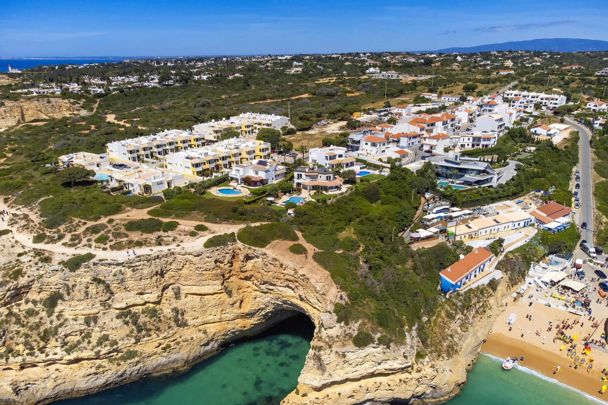 Denne innbydende leiligheten ligger i den sjarmerende kystbyen Benagil, og tilbyr et perfekt tilfluktssted for din neste ferie. Med fantastisk havutsikt og et felles utendørsbasseng, er det et ideelt valg for familier, par eller vennegrupper som søker en avslappende ferie i den vakre Algarve-regionen. Nyt den rolige atmosfæren mens du er bare noen øyeblikk unna sandstrender. Leiligheten har plass til opptil fire gjester, og har to komfortable soverom: et hovedsoverom med en king-size-seng og et annet soverom med to enkeltsenger. Med tre bad – to med dusj og ett med et avslappende badekar – vil du finne privatliv og bekvemmelighet for alle. Det fullt utstyrte kjøkkenet har kjøleskap, stekeovn, mikrobølgeovn og oppvaskmaskin, noe som gjør det enkelt å tilberede deilige måltider under oppholdet. Gå ut til den møblerte balkongen eller terrassen, perfekt for utendørs servering mens du nyter den fantastiske havutsikten. Det felles utendørsbassenget, som måler 14m x 6m, gir en forfriskende oase på varme sommerdager. Ytterligere funksjoner inkluderer klimaanlegg, flatskjerm-TV, Wi-Fi og praktiske apparater som kaffemaskin og vinglass for å forbedre komforten. Denne leiligheten ligger bare noen minutter fra de fantastiske strendene Praia de Benagil og Praia do Carvoeiro, og har en ideell beliggenhet for å utforske Algarves naturlige underverk. Med lokale fasiliteter, supermarkeder og restauranter innen gangavstand, pluss offentlig parkering tilgjengelig, er alt du trenger for en minneverdig ferie rett ved fingertuppene. Enten du planlegger en familieferie, romantisk flukt eller ferie med venner, lover denne moderne leiligheten i Benagil den perfekte basen for eventyret ditt.