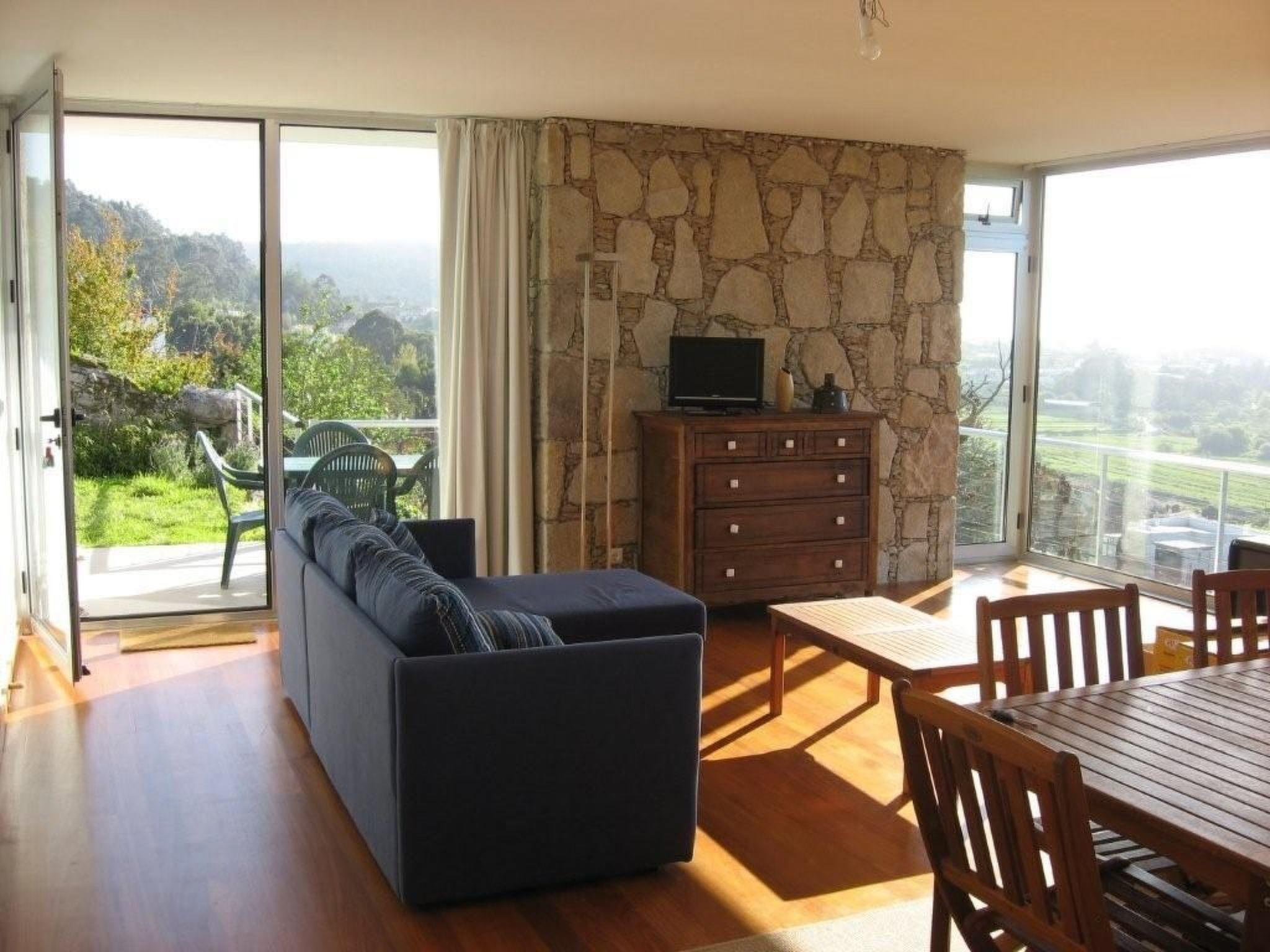 "This architect-designed house is ideally situated on a mountainside 2 km from the ocean, with large picture windows offering panoramic views all day long. The use of wood, glass, metal and stone gives the house a special charm and character. The furnishings are sober and contemporary. Ideally located 60 km from Vigo, 90 km from Porto and 25 km from Viana do Castelo, in the heart of a quiet village overlooking the countryside, "