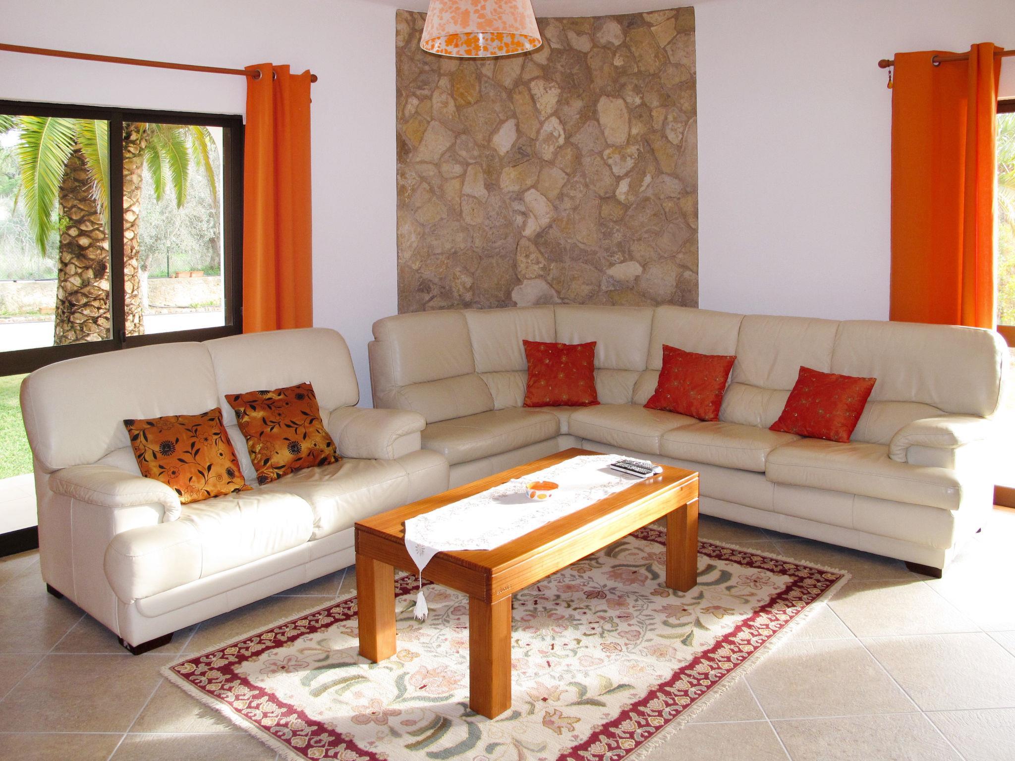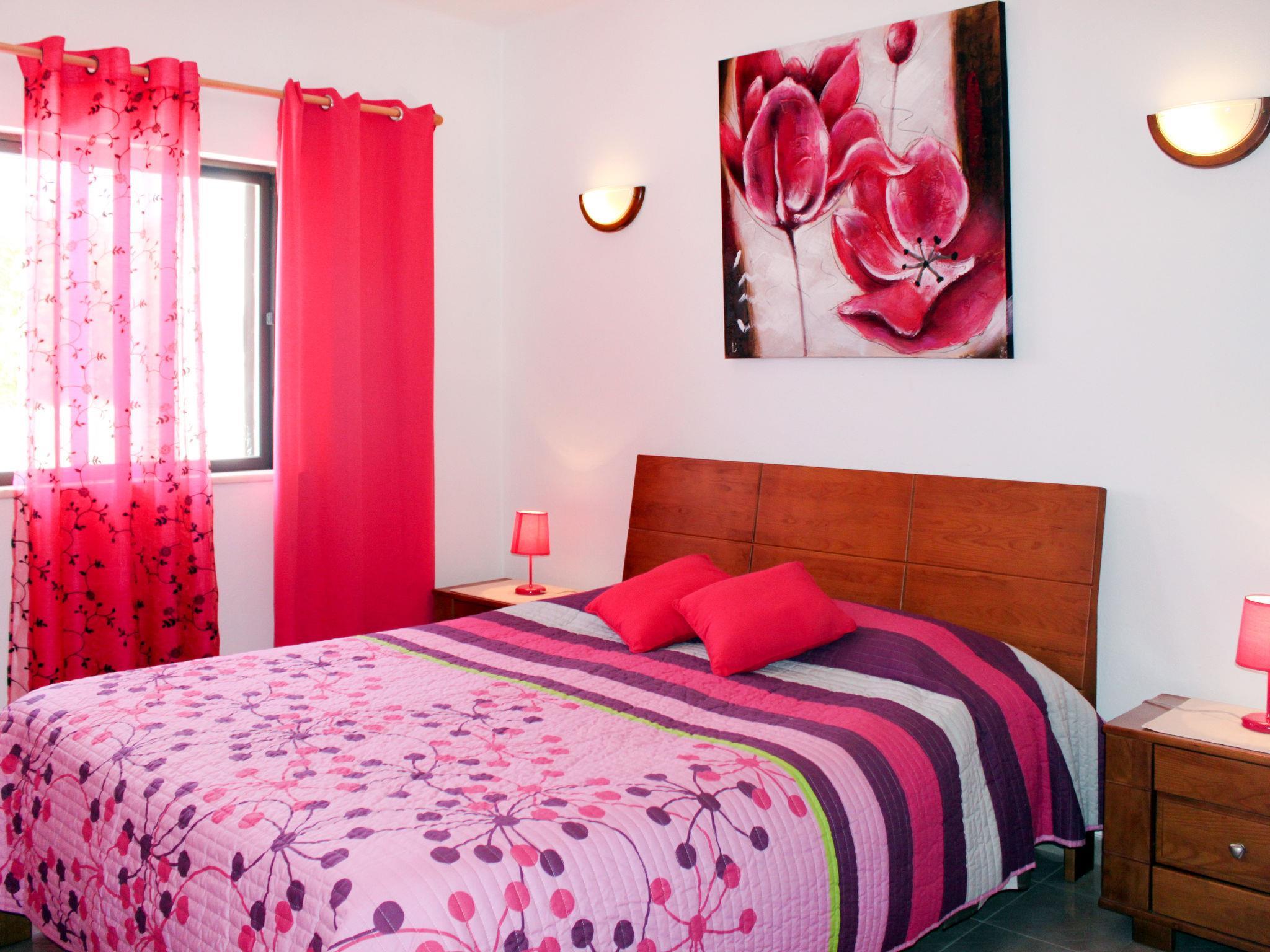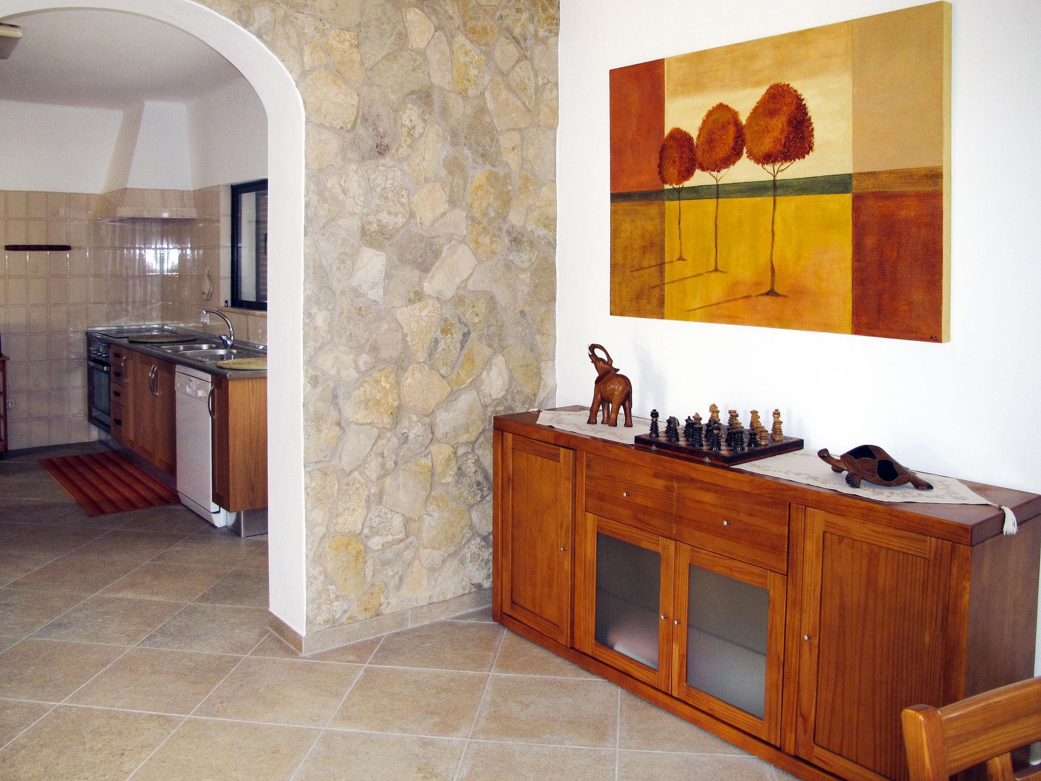 "Do Lagar", 5-room house 160 m2 on 2 levels. Bright, tasteful furnishings: living/dining room with open-hearth fireplace, dining table, satellite TV and DVD. Exit to the terrace. 1 room with 1 french bed (150 cm). 1 room with 1 french bed (160 cm). Kitchen (4 hot plates, oven, dishwasher, kettle, microwave, freezer, electric coffee machine). Exit to the terrace. Shower/WC. Upper floor: (spiral staircase), 1 room with 2 beds (90 cm, length 200 cm), shower/WC. Exit to the balcony. Balcony 35 m2, terrace. Terrace furniture, barbecue, deck chairs. Facilities: washing machine, iron, children's high chair, baby cot. Internet (WiFi, free). Please note: non-smokers only. 19264/AL