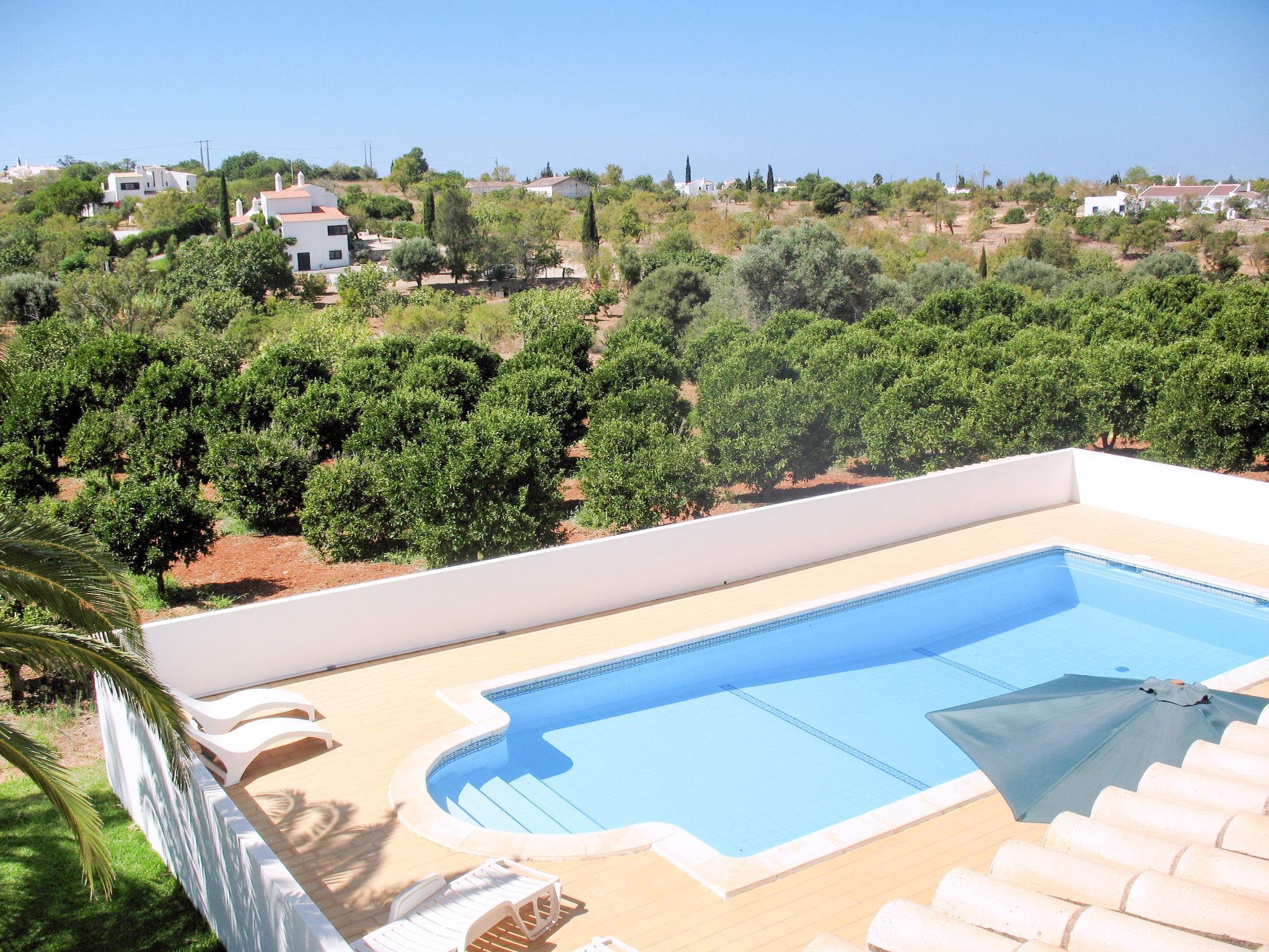 House "Do Lagar", detached, surrounded by meadows and fields. 3 km from the centre of Carvoeiro, 3 km from the centre of Lagoa, 3 km from the sea, in the countryside. Private: property 12'000 m2, beautiful garden with lawn and trees, orchard, swimming pool angular (9 x 4 m, depth 110 - 230 cm, seasonal availability: 01.Jan. - 31.Dec.) with internal staircase. Outdoor shower. In the house: roof terrace. Storeroom available. Parking on the premises. Shop 800 m, supermarket 1.2 km, restaurant 500 m, bus stop 750 m, sandy beach 3 km, outdoor swimming pool 6 km. Golf course (9 hole) 1.4 km. Please note: the owner lives on the same property.