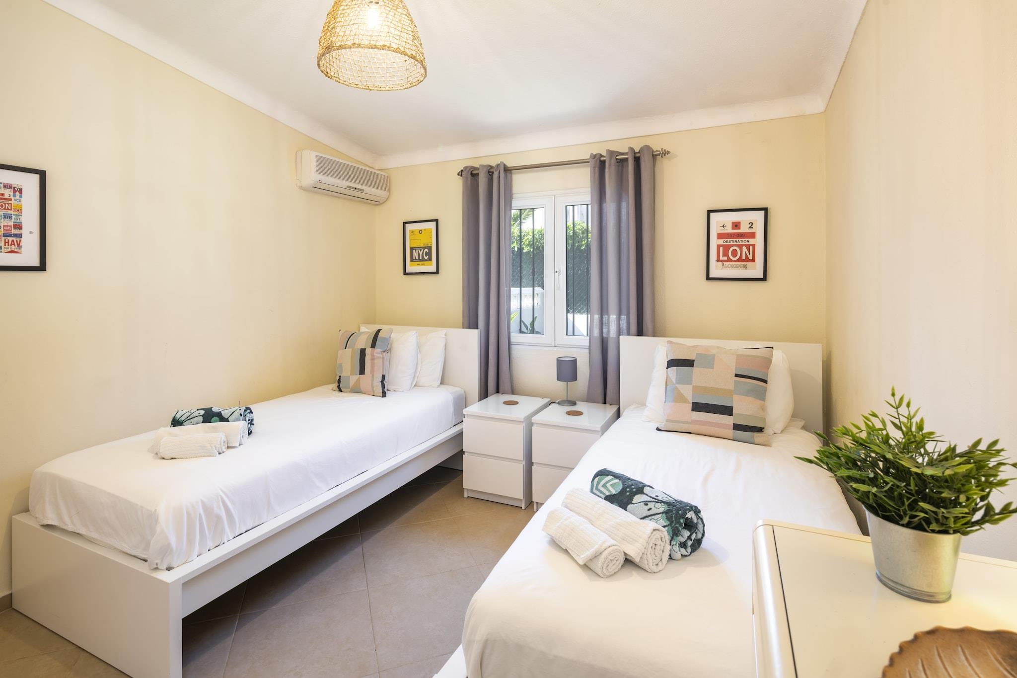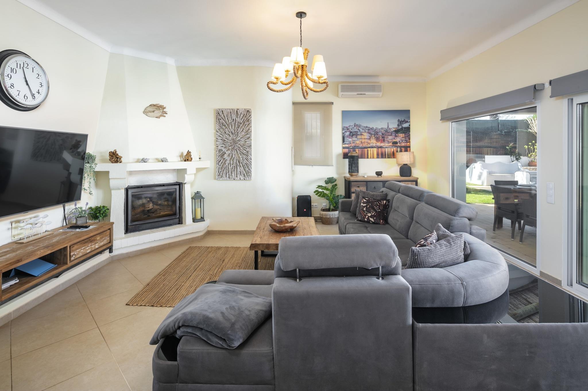Oppdag et ideelt familieferiested i denne fantastiske 5-roms villaen som ligger i den vakre kystbyen Carvoeiro, Algarve. Romslig og gjennomtenkt utformet, er denne innkvarteringen perfekt for familier, par og venner som ønsker en minneverdig ferieopplevelse i Portugal. Med imponerende 240 kvadratmeter boareal på en sjenerøs 1100 kvadratmeter stor tomt, har denne villaen plass til opptil 10 gjester. Gå ut for å nyte spektakulære uterom, inkludert et privat oppvarmet saltvannsbasseng (8m x 4m), en solterrasse og flere loungeområder, ideelle for å slikke sol. Familier vil elske grillområdet, hagemøblene og inngjerdet tomt, som gir et trygt miljø for barn. Innendørs er komfort nøkkelen med sentralvarme, klimaanlegg og gulvvarme for nytelse året rundt. Underholdningsalternativene inkluderer en smart-TV med flere kanaler, et stereoanlegg og et bordtennisbord for familiemoro. Villaen ligger kun 1,3 km fra de fantastiske strendene Praia do Carvoeiro og Praia do Paraíso, og tilbyr enkel tilgang til kystattraksjoner. Nærliggende fasiliteter, inkludert supermarkeder, restauranter og golfbaner, forbedrer opplevelsen din. Andre funksjoner inkluderer gratis Wi-Fi, nødvendigheter på stranden, utendørs dusj og en peis for koselige kvelder. Med privat parkering for 3 biler og en utmerket beliggenhet, lover denne villaen en uforglemmelig ferie i Algarve. Vennligst merk: Ingen kjæledyr er tillatt, og eiendommen er ikke egnet for ungdomsgrupper. Røyking inne er forbudt.