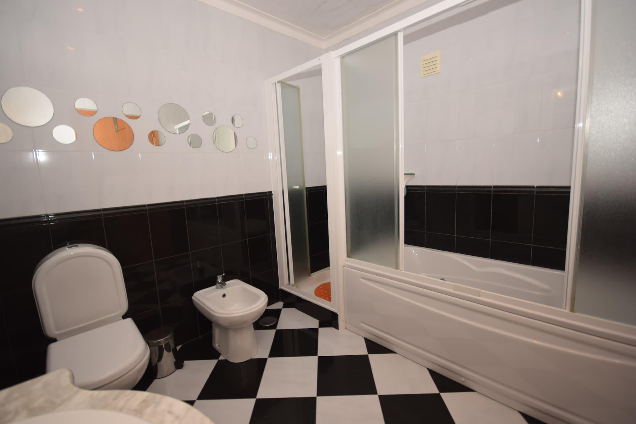 Første etasje: (Kjøkken(vannkoker, brødrister, komfyr(komfyr med 4 kokeplater, gass), kaffetrakter, stekovn, grill, mikrobølgeovn, oppvaskmaskin, kjøleskap med fryser, Juicemaskin), Stue/spisestue(TV(flatskjerm), peisen, DVD-spiller, radio), soveværelse(dobbeltseng(150 x 190 cm)), soveværelse(2x enkeltseng(90 x 190 cm)), bad(dusj, håndvask, toalett), bad(badekar med dusj, håndvask, toalett, bidet), vaskerom(vaskemaskin), franske dører) Kjelleren: (soveværelse(dobbeltseng(140 x 200 cm), toalett), Sovrum med badrum(2x enkeltseng(90 x 200 cm), badekar med dusj, dusj, håndvask, toalett, bidet, balkon)) balkon, terrasse(privat), hage(privat), hagemøbler, solsenge, grill, fluktstoler, svømmebasseng(privat, 9 x 4 m., opened from Jan upto and including Dec), babyseng/sprinkelseng, høy barnestol