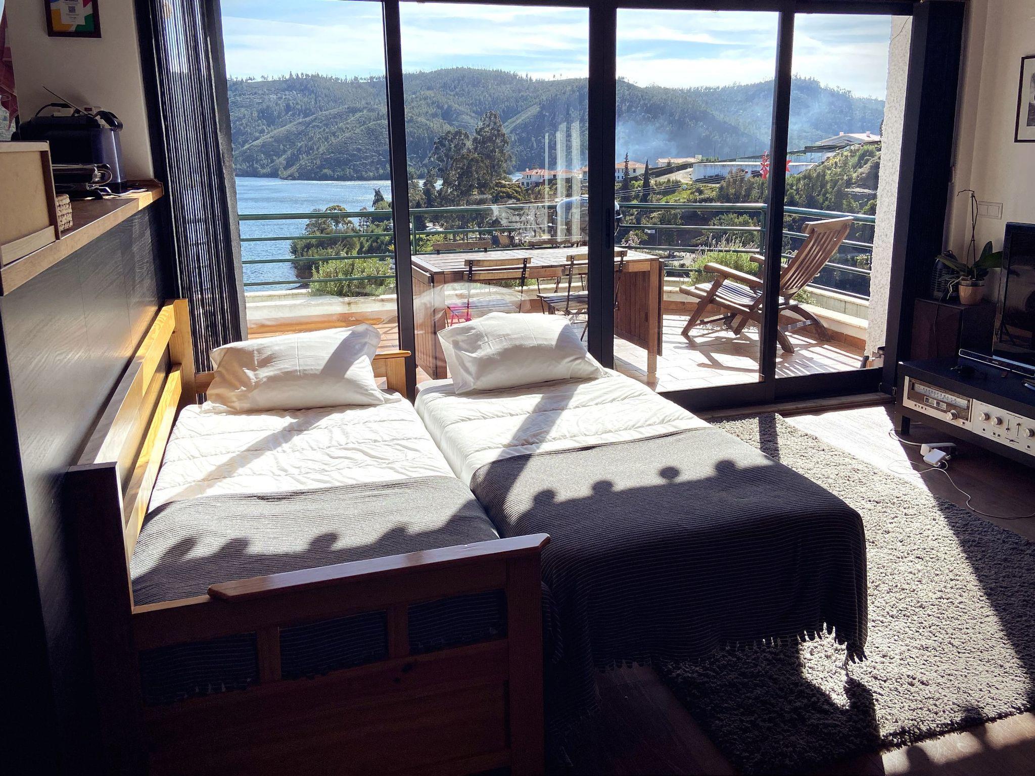 Bedroom 2: 2 Twin-Single Beds with a balcony overlooking the lake