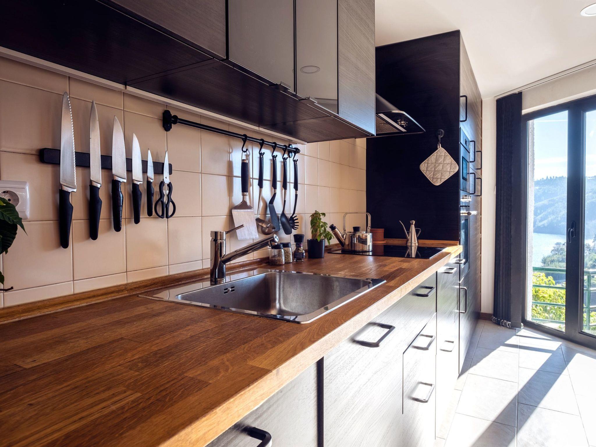 This fully equipped kitchen features state-of-the-art stainless steel appliances, ideal for preparing any meal, from a simple breakfast to a three-course gourmet dinner.