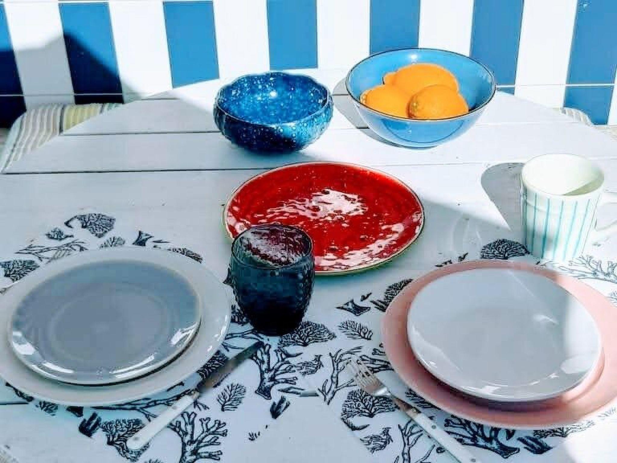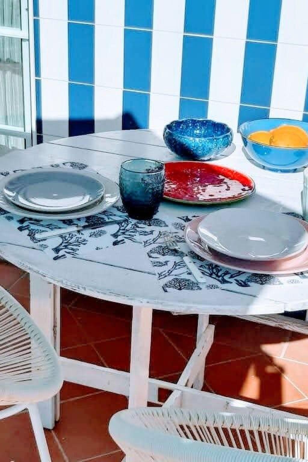 Inside, guests will discover a thoughtfully laid-out space where natural light floods through each corner, creating a warm and inviting atmosphere. The heart of the apartment is its kitchenette, equipped with a gas cooker, coffee machine, dishwasher, and electric kettle, making meal preparation a breeze. Meals can then be savored in the cozy living area, offering a seamless blend of functionality and relaxation. The essence of the decor pays homage to the spirit of old fishermen's huts, enhanced with the vibrant colors of Morocco and sprinkled with vintage details. Authentic Portuguese tiles capture this unique aesthetic, imbuing the space with character and charm.
