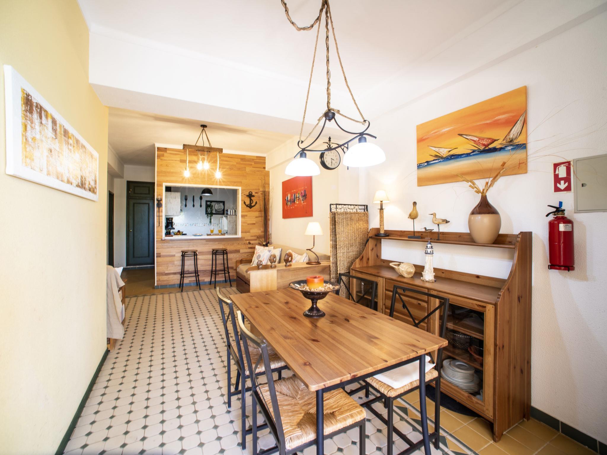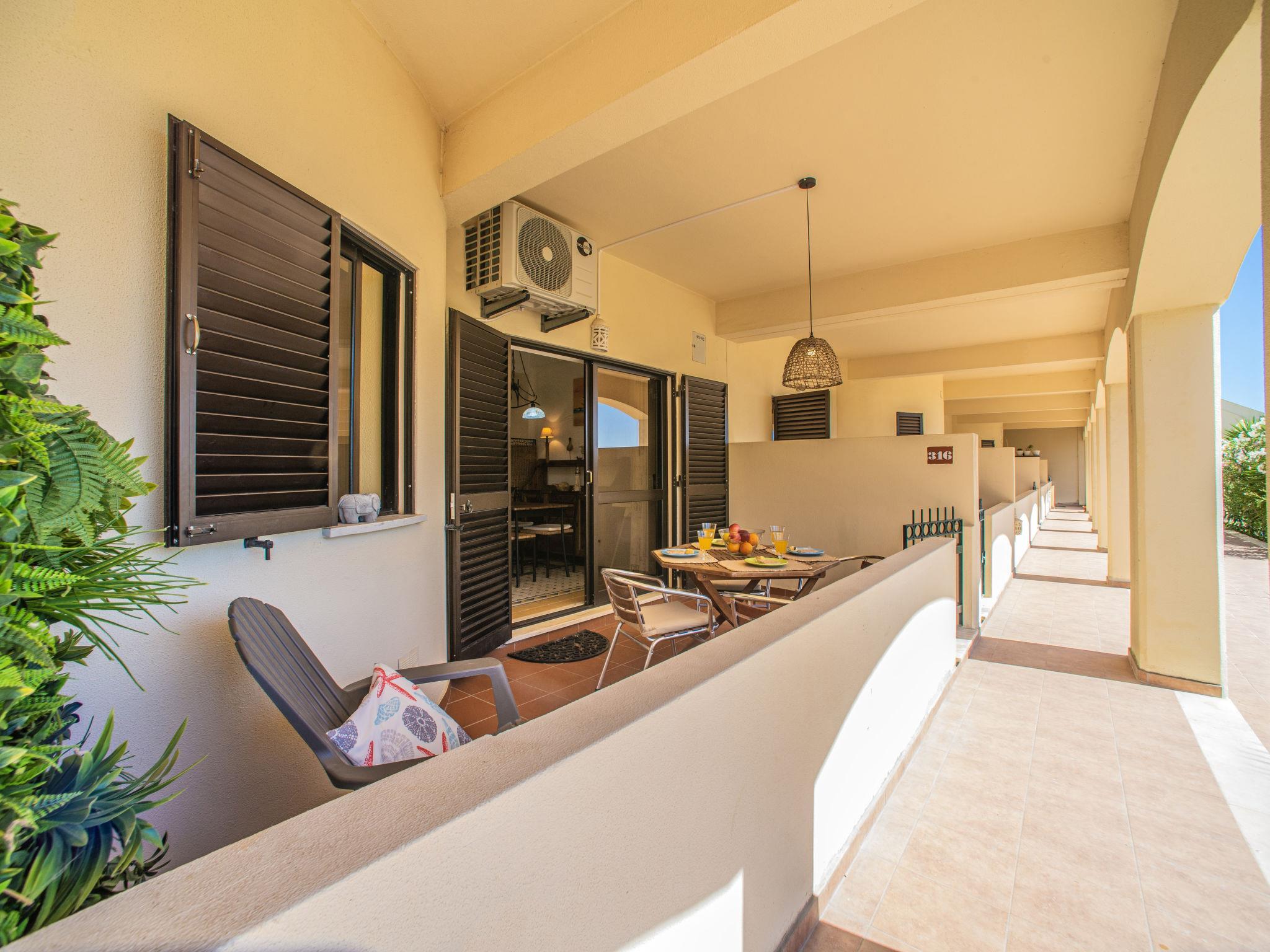 "Iberlagos", 2-room apartment 60 m2, on the ground floor. Bright, practical furnishings: living/sleeping room with 1 sofabed, 1 pull-out bed, dining table, cable TV, DVD, electric heater and air conditioning. Exit to the terrace. 1 small room with 1 french bed and electric heating. Open kitchen (mini-oven, 4 ceramic glass hob hotplates, toaster, kettle, microwave, freezer, electric coffee machine). Bath/WC. Heating not available in all rooms. Terrace roofed. Terrace furniture, deck chairs (2). View of the sea. Facilities: washing machine, dryer, iron, children's high chair, baby cot. Internet (WiFi, free). Please note: non-smokers only. Fire extinguisher. 140777/AL