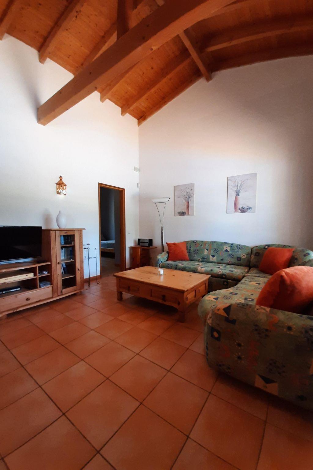 The outdoor area of the house offers numerous opportunities for relaxation and leisure activities. You can experience refreshing moments in the communal pool or take a stroll in the spacious Mediterranean garden, which extends over 5000m² and impresses with its variety of exotic plants. For younger guests, there is a playground with swings and a trampoline, and the pool area is equipped with a pool lift for people with reduced mobility, making the property particularly welcoming for all visitors.