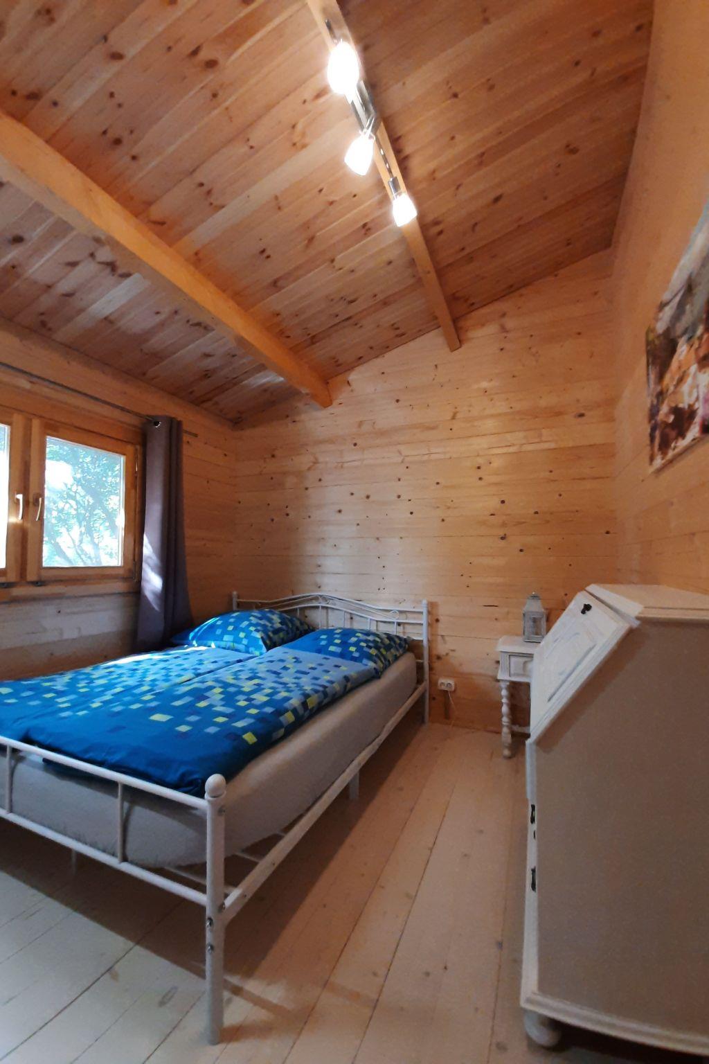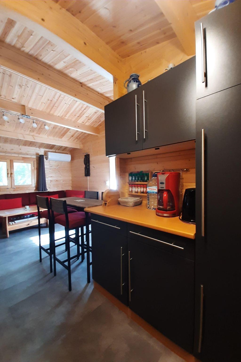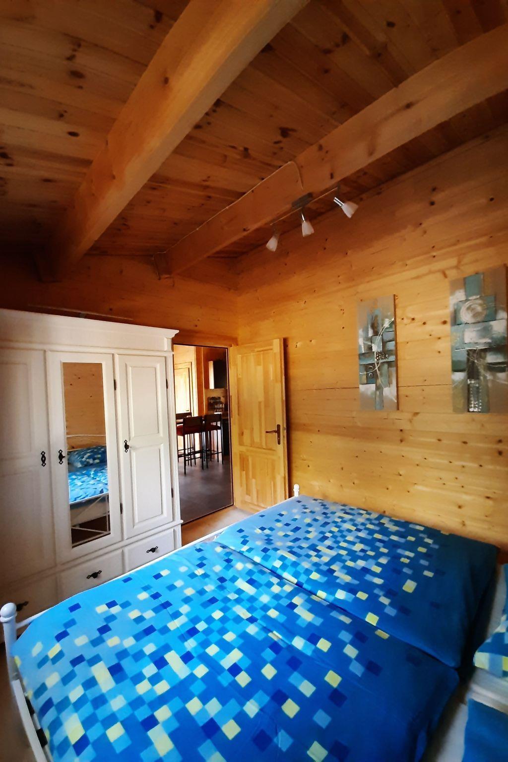 The house is on one floor and the entrance has a ramp. There is air conditioning in the living room, which can also be used as heating in winter. The house can accommodate 3 people and has 2 bedrooms, one bedroom with a double bed 1.80x2.00m with orthopaedic mattress, and another bedroom with a bed 1.00x2.00 also with orthopaedic mattress. Duvet and pillows are suitable for allergy sufferers. A cot and a high chair for children up to 3 years old are also available and can be provided free of charge if required. A small paddling pool and a children's swing for toddlers are also available. In the living room you will find a cosy XXL sofa that invites you to linger. The 40" TV is equipped with WLAN and allows you to log in with your account at e.g. Netflix or Amazon Prime. The kitchen is fully equipped, with a coffee machine, toaster, kettle, super modern microwave oven, a dishwasher, a 4 ring gas hob, crockery, pans etc. Everything is available. The bathroom has a shower, washbasin and toilet. The outdoor gas barbecue is located next to the covered terrace, the pool is about 100 metres away. There are 2 other holiday flats on the property, the pool must be shared with these holiday guests.