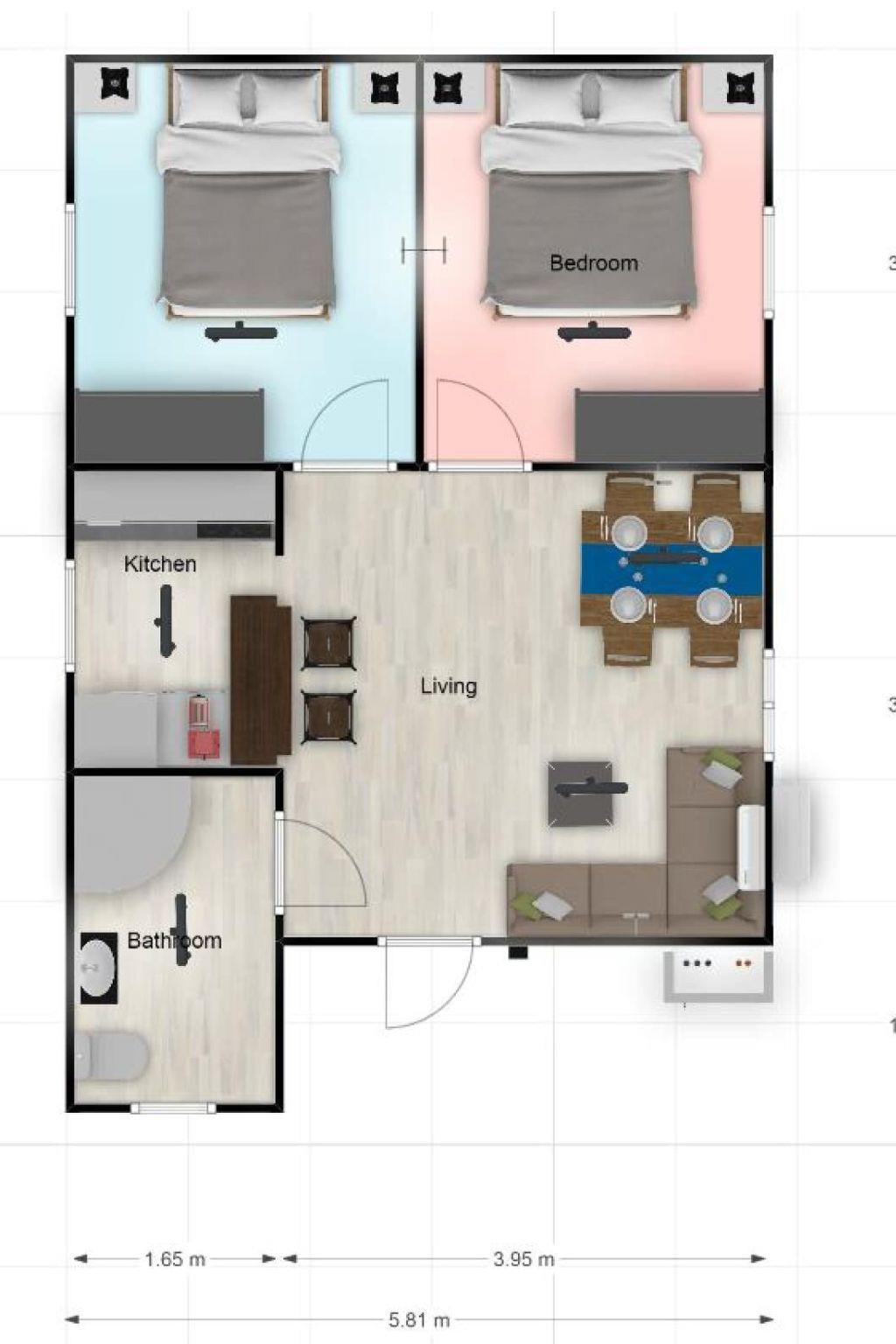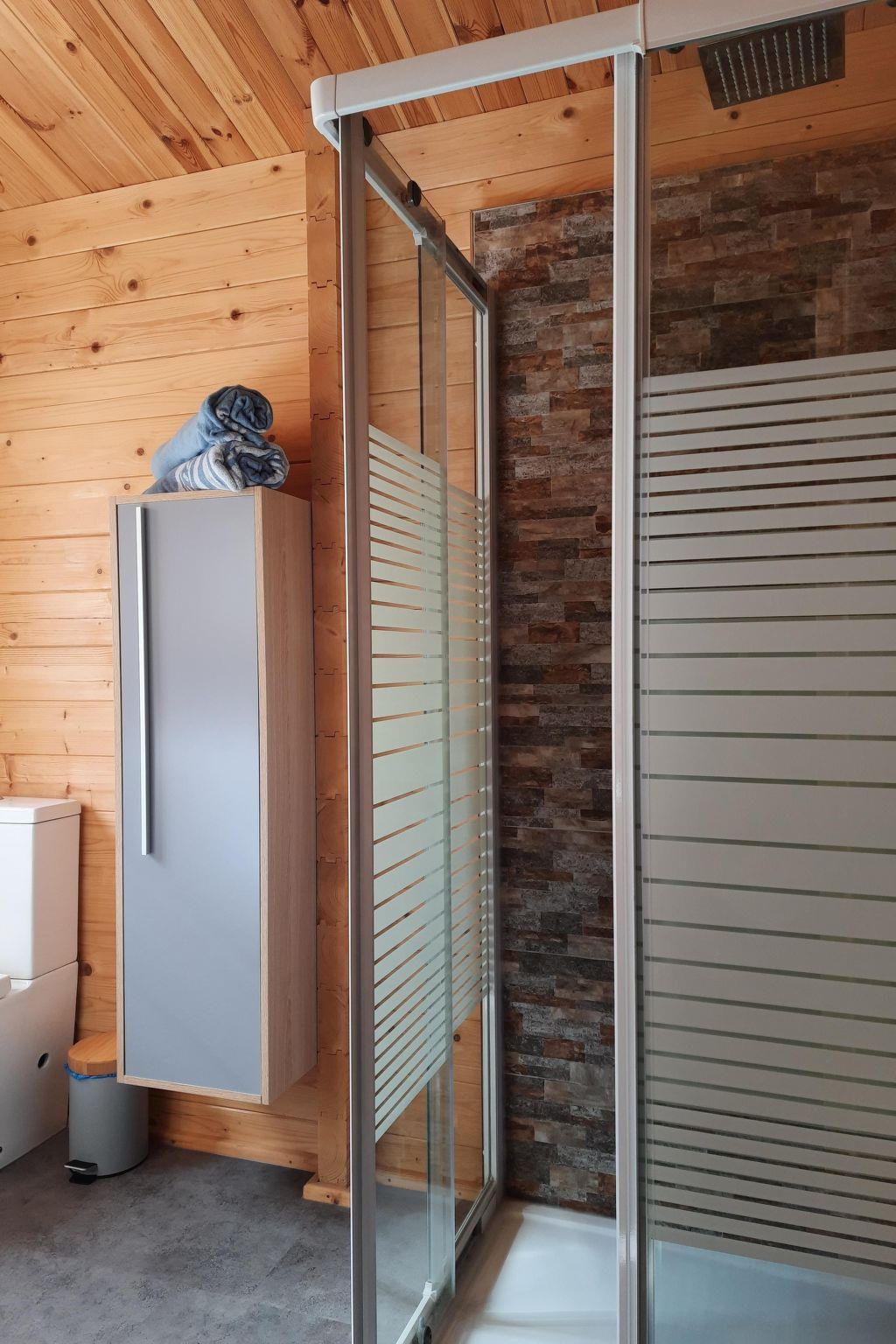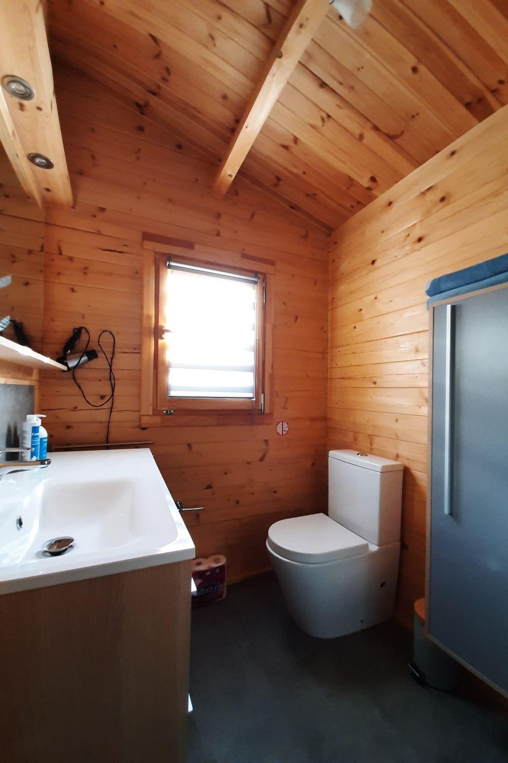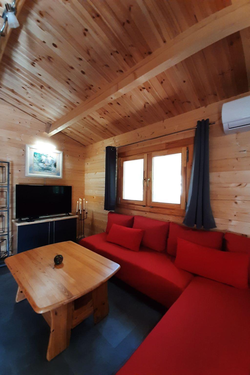 The house is on one floor and the entrance has a ramp. There is air conditioning in the living room, which can also be used as heating in winter. The house can accommodate 3 people and has 2 bedrooms, one bedroom with a double bed 1.80x2.00m with orthopaedic mattress, and another bedroom with a bed 1.00x2.00 also with orthopaedic mattress. Duvet and pillows are suitable for allergy sufferers. A cot and a high chair for children up to 3 years old are also available and can be provided free of charge if required. A small paddling pool and a children's swing for toddlers are also available. In the living room you will find a cosy XXL sofa that invites you to linger. The 40" TV is equipped with WLAN and allows you to log in with your account at e.g. Netflix or Amazon Prime. The kitchen is fully equipped, with a coffee machine, toaster, kettle, super modern microwave oven, a dishwasher, a 4 ring gas hob, crockery, pans etc. Everything is available. The bathroom has a shower, washbasin and toilet. The outdoor gas barbecue is located next to the covered terrace, the pool is about 100 metres away. There are 2 other holiday flats on the property, the pool must be shared with these holiday guests.