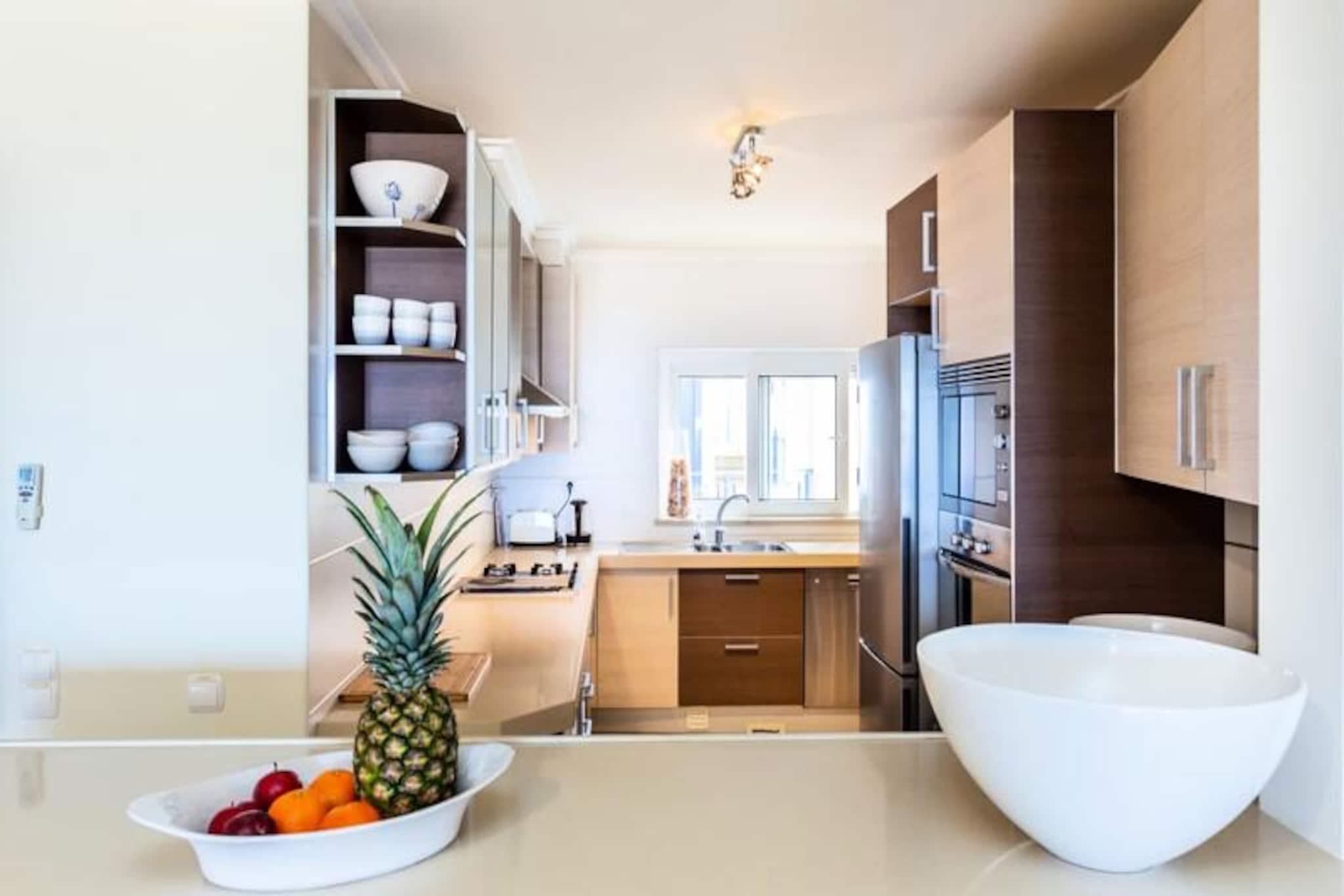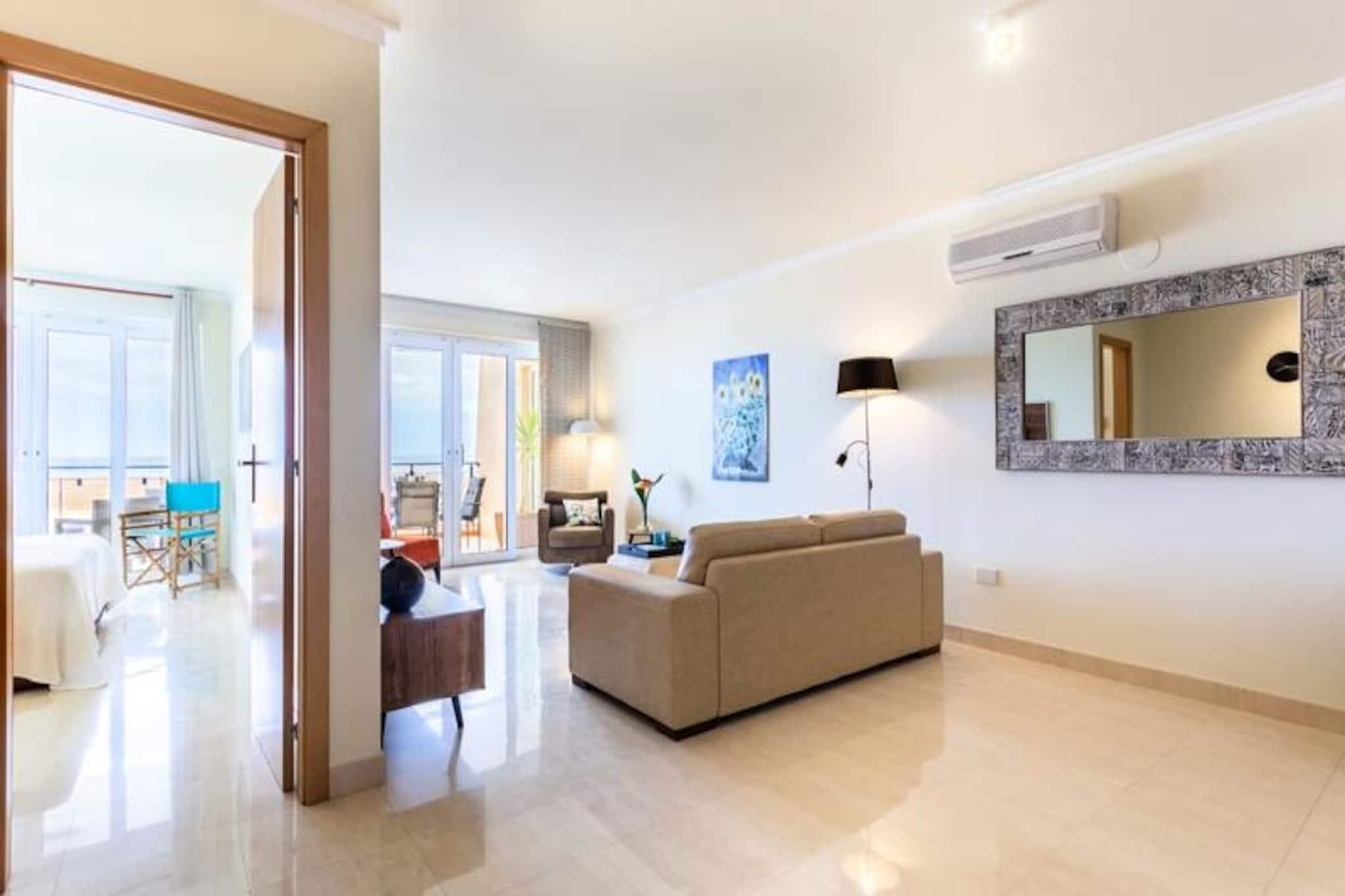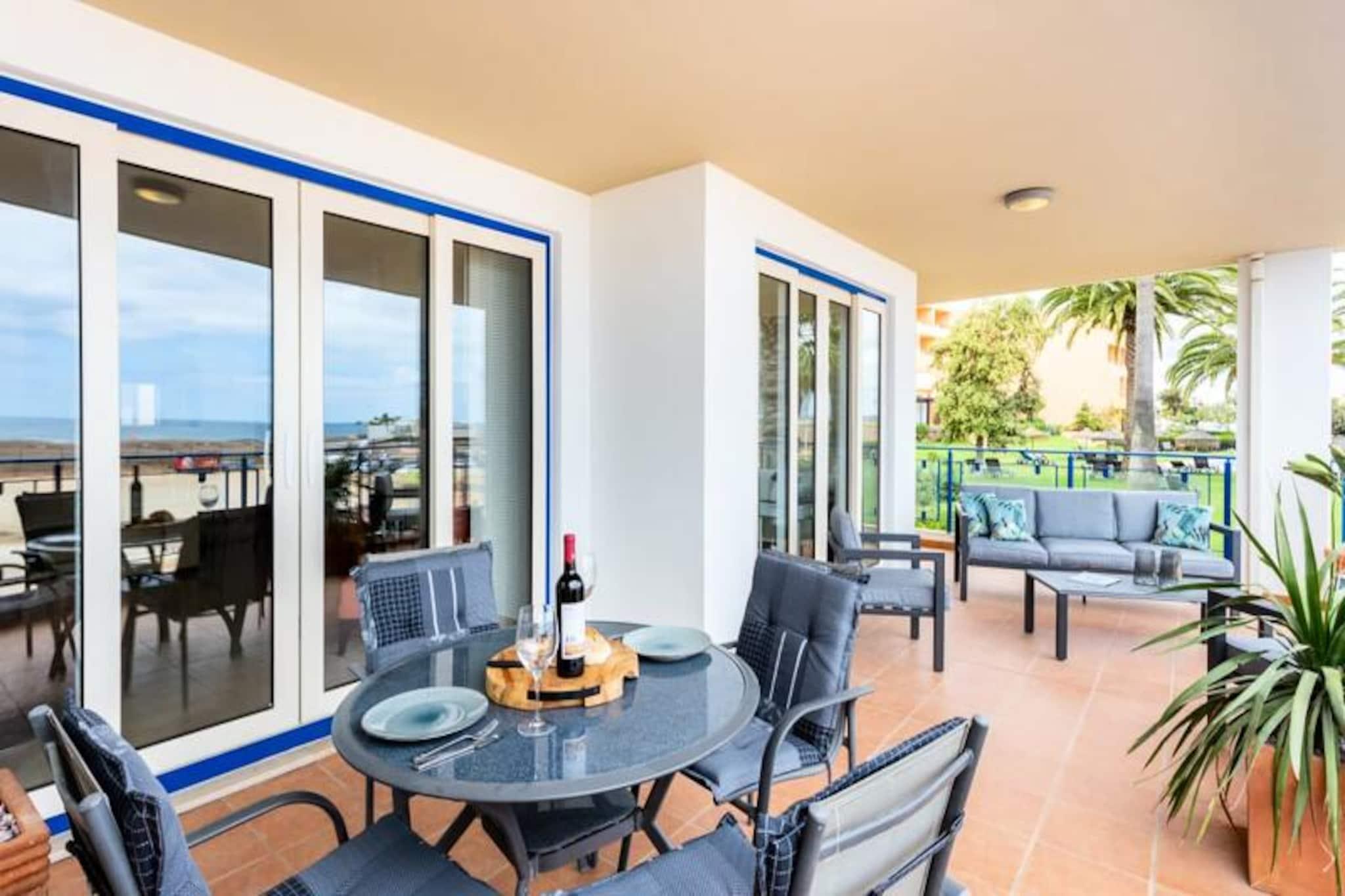 Tenk deg å våkne til lyden av bølgene og den endeløse horisonten av Atlanterhavet som strekker seg foran deg. Denne luksuriøse leiligheten med 2 soverom og 2 bad er et ekte fristed ved sjøen, perfekt beliggende bare noen skritt fra den gylne sanden på Meia Praia-stranden i Lagos. Med sin moderne design og elegante interiør tilbyr denne eiendommen et rolig tilfluktssted for familier eller par som søker en blanding av komfort og fantastisk utsikt. Enten du nyter morgenkaffen på den romslige private balkongen eller tar en dukkert i bassenget på taket, føles hvert øyeblikk her som en feiring av kystens skjønnhet. Leiligheten er gjennomtenkt designet for å imøtekomme alle dine behov. Det åpne kjøkkenet og stuen er badet i naturlig lys, med store vinduer som rammer inn den fantastiske utsikten over havet. Begge soverommene er koselige, men likevel sofistikerte, mens badene, som ble renovert i 2020, har elegante dusjkabinetter. Bygningen har også et soloppvarmet basseng på taket og en solterrasse, som er det perfekte stedet å slappe av etter en dag med utforsking. Med Wi-Fi, TV og alt sengetøy inkludert, lover oppholdet ditt å bli like praktisk som det er avslappende. Utenfor leiligheten venter den livlige byen Lagos. En 15-minutters spasertur tar deg til marinaen, hvor du finner livlige barer, restauranter og butikker. Herfra kan du krysse broen til det historiske sentrum, kjent for sine sjarmerende gater, lokale markeder og deilige matretter. For de som søker eventyr, er de dramatiske klippene og hulene langs Algarve-kysten best å utforske med båt, kajakk eller paddleboard. Meia Praia tilbyr en rekke spisesteder ved stranden, mens det nærliggende Vila Galé-komplekset tilbyr spa- og treningsfasiliteter for litt ekstra velvære. Enten du er her for å slappe av ved sjøen, utforske Lagos' rike historie eller prøve spennende vannsport, er denne leiligheten det perfekte utgangspunktet. Med Faro lufthavn bare en time unna, er din drømmeferie ved kysten nærmere enn du tror.