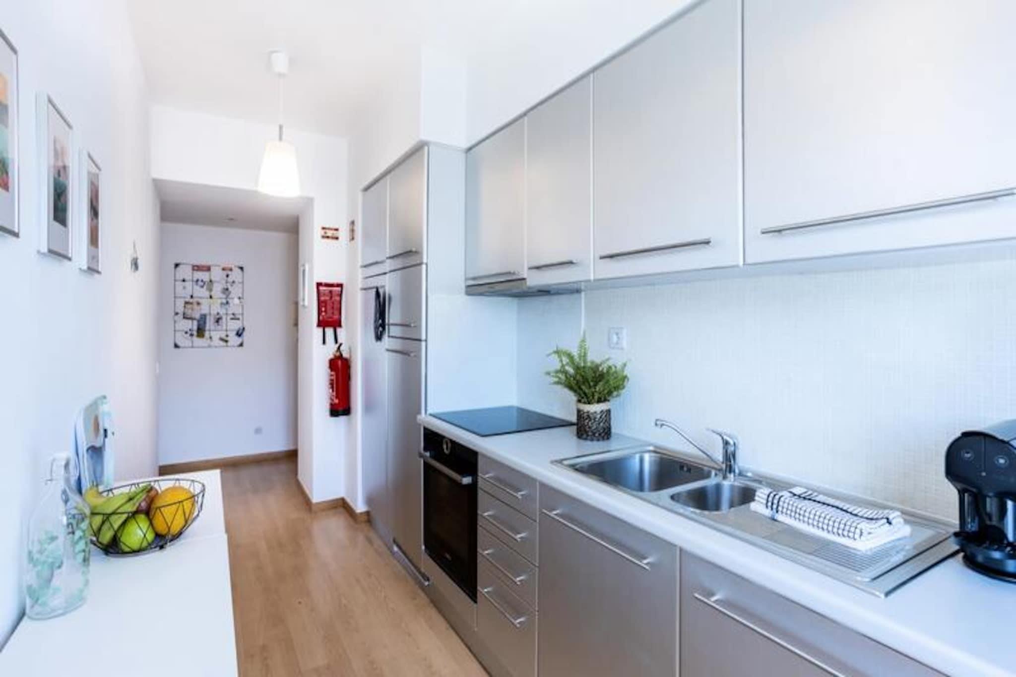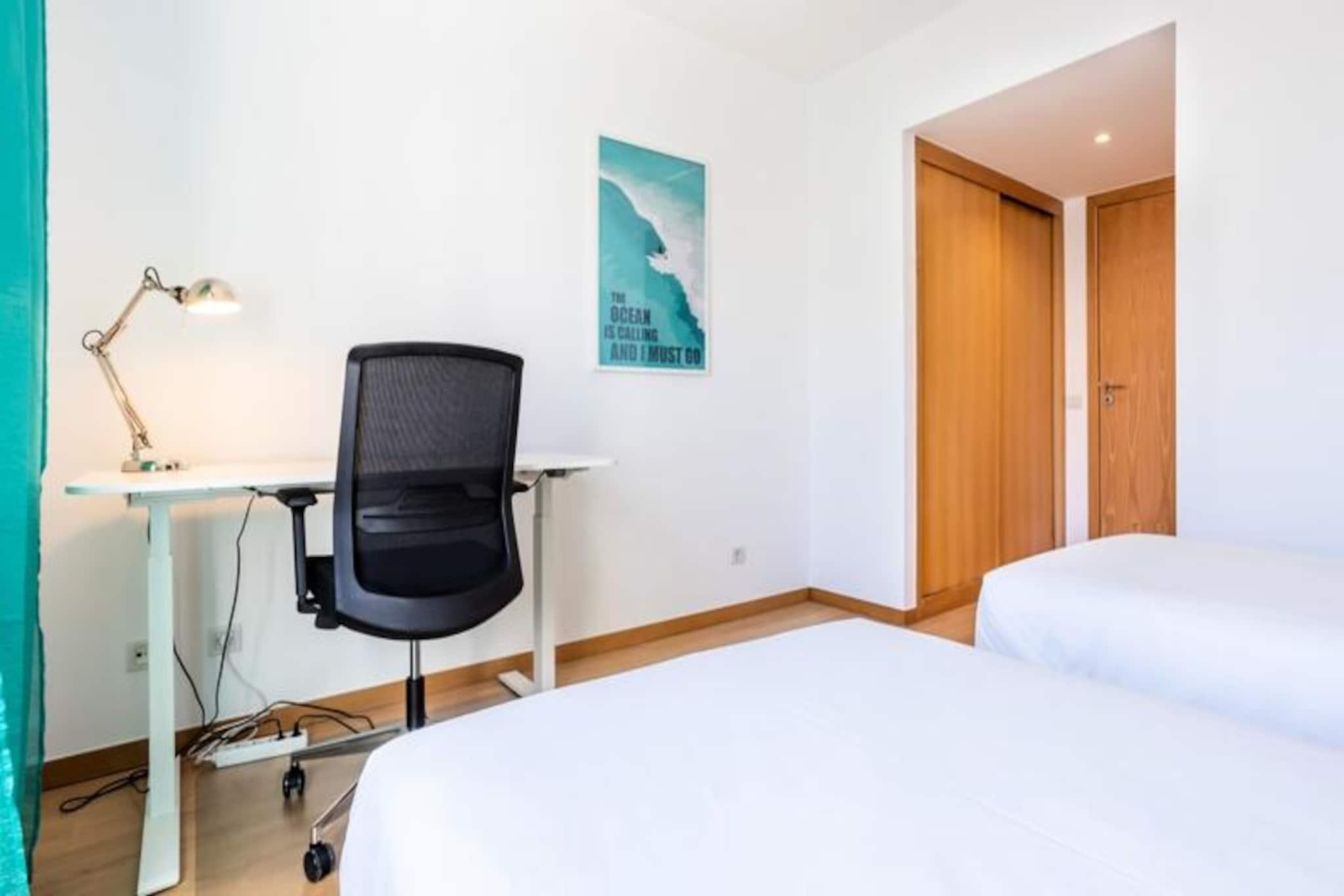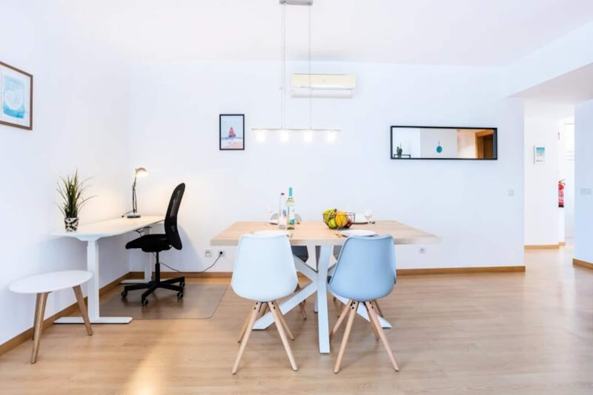 I hjertet av Algarve, der gylne strender møter asurblått vann, tilbyr denne moderne leiligheten med to soverom en fredelig tilflukt like utenfor Lagos sentrum. Med sin førsteklasses beliggenhet nær marinaen er dette stilige tilfluktsstedet perfekt for familier eller par som søker en blanding av komfort og bekvemmelighet. Se for deg å nippe til morgenkaffen din på den romslige balkongen, med utsikt over den rolige naturlige innsjøen bak bygningen, mens solen står opp over horisonten. Disse fredelige omgivelsene er det perfekte bakteppet for en minneverdig ferie. Leiligheten har nylig blitt renovert for å tilby et luksuriøst og moderne rom. Den har et fullt utstyrt kjøkken med oppvaskmaskin, som åpner inn i en lys og luftig stue komplett med spiseplass og salong. De to soverommene er gjennomtenkt designet, ett med dobbeltseng og det andre med to enkeltsenger, noe som sikrer avslappende netter for alle gjester. To moderne bad, ett med badekar og det andre med dusj, bidrar til bekvemmeligheten. For de som kombinerer arbeid og fritid, har leiligheten to profesjonelle, høydejusterbare skrivebord, noe som gjør den til et ideelt valg for fjernarbeid. Denne eiendommen ligger i andre etasje i en rolig leilighet med heis, og sikrer privatliv og avslapning. Marinaområdet, bare en 10-minutters spasertur unna, tilbyr et pulserende utvalg av restauranter, barer med levende musikk og et stort supermarked. Lagos i seg selv er en skattekiste av aktiviteter, fra å utforske det historiske sentrum og lokale markeder til å legge ut på båt- eller kajakkturer for å beundre de fantastiske klippene og grottene langs kystlinjen. Regionen er også et paradis for vannsportsentusiaster, med muligheter for surfing, seiling og padlebrett. Enten du søker eventyr eller ro, er denne leiligheten den perfekte basen for å oppleve det beste Lagos og Algarve har å by på. Med sine moderne fasiliteter, førsteklasses beliggenhet og varme atmosfære lover den en uforglemmelig ferie.