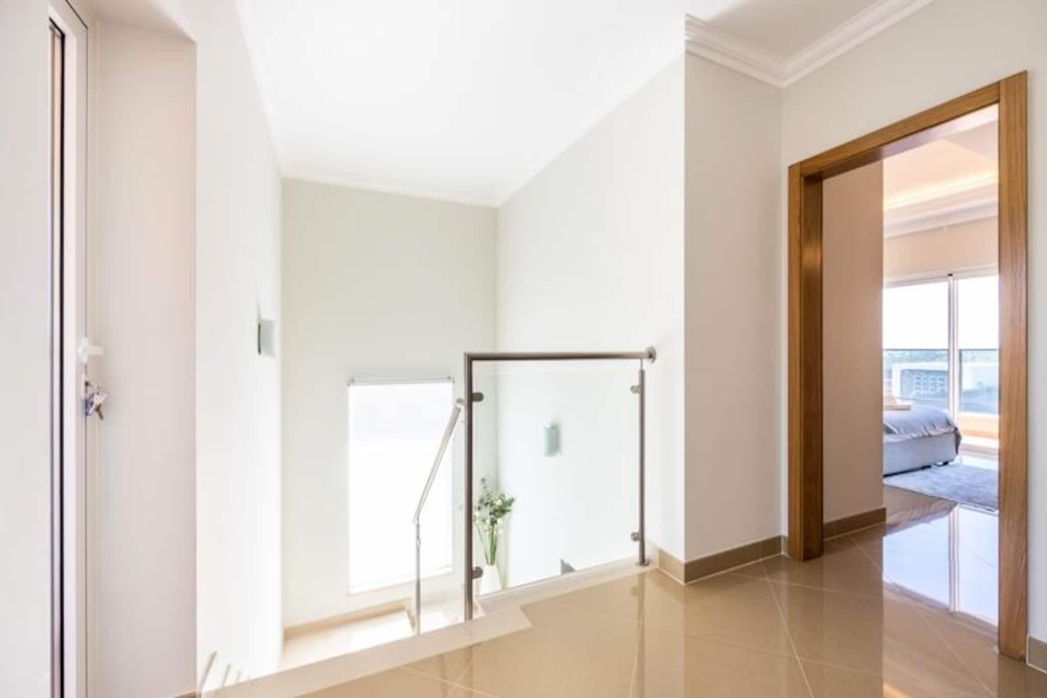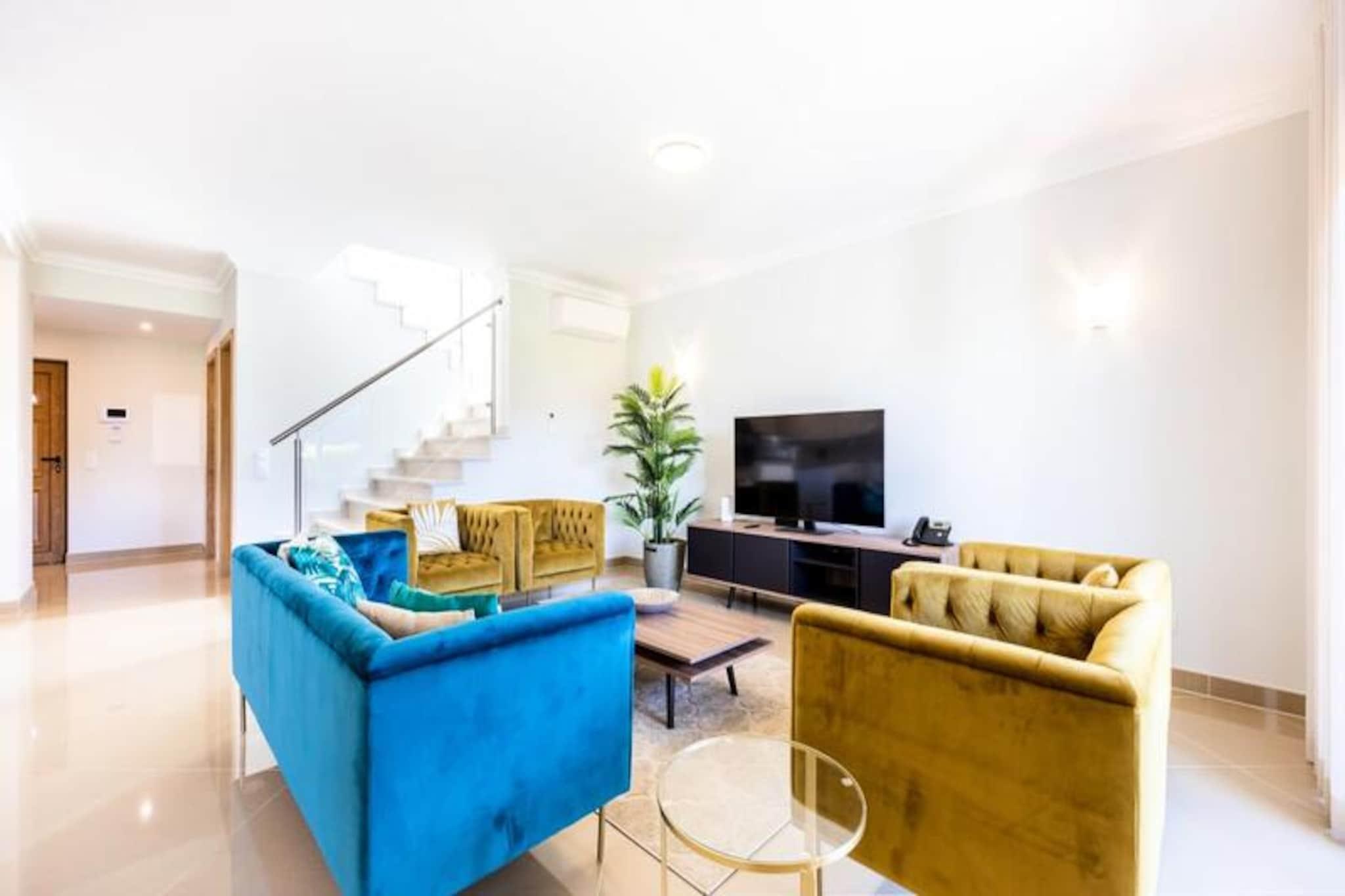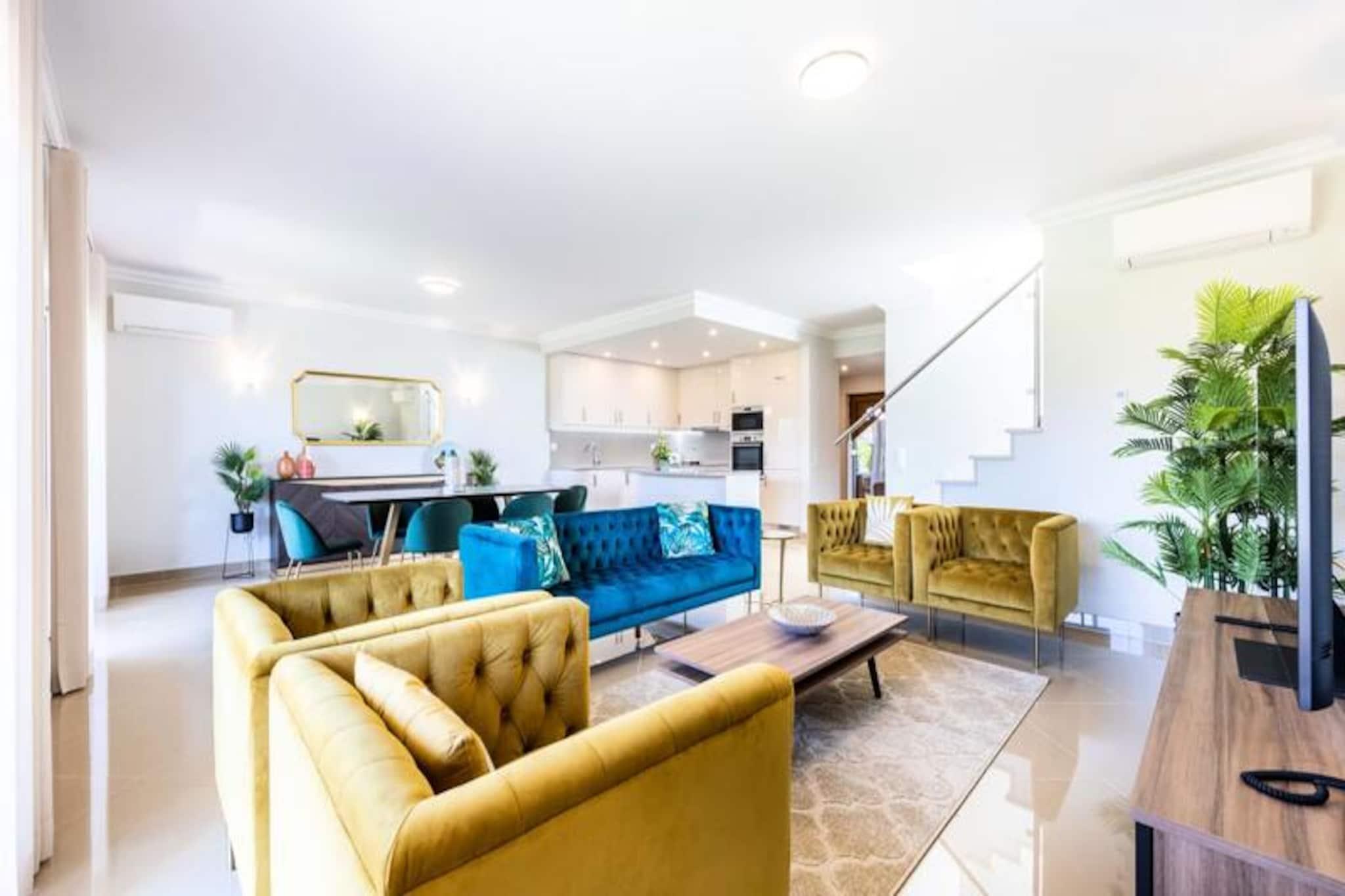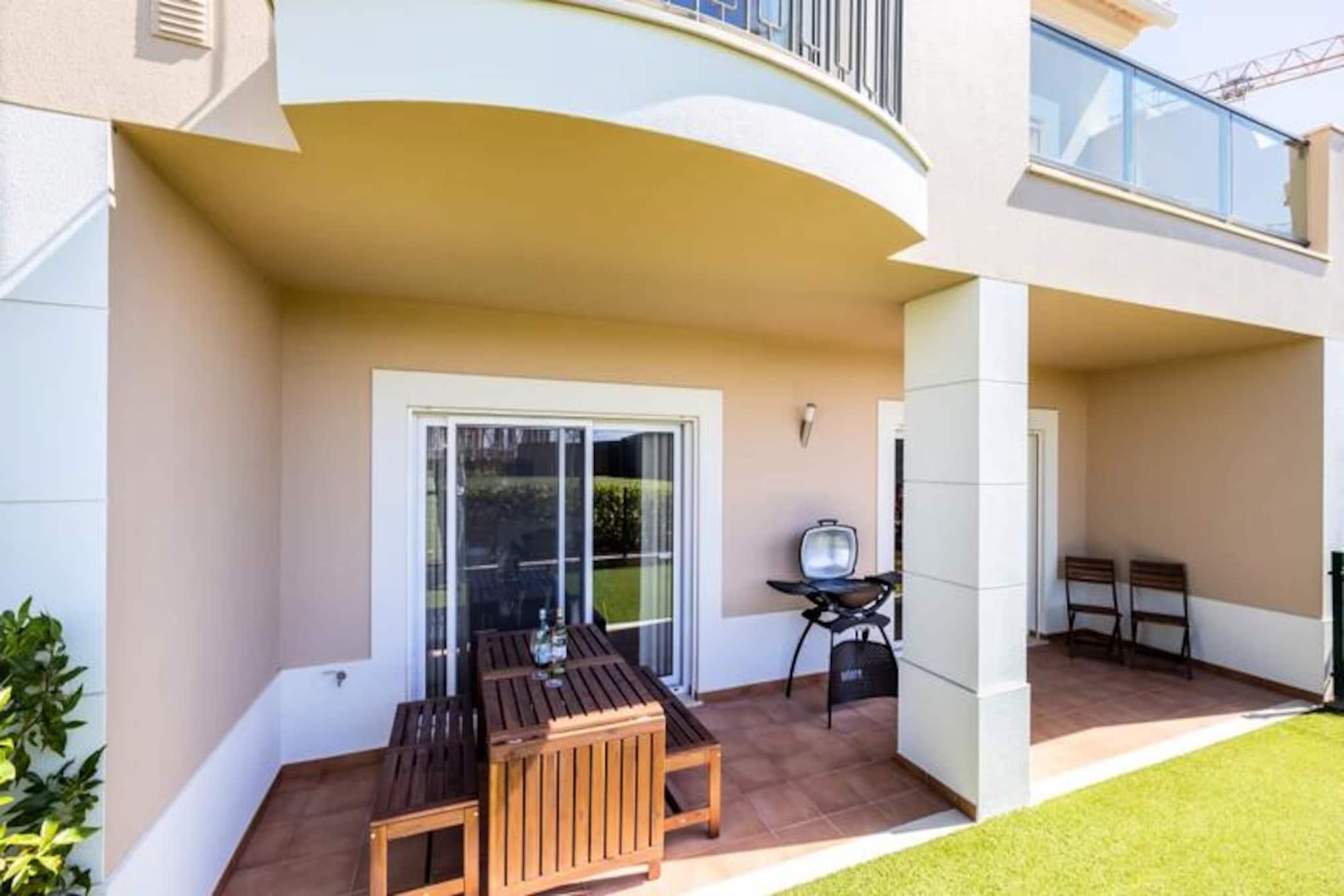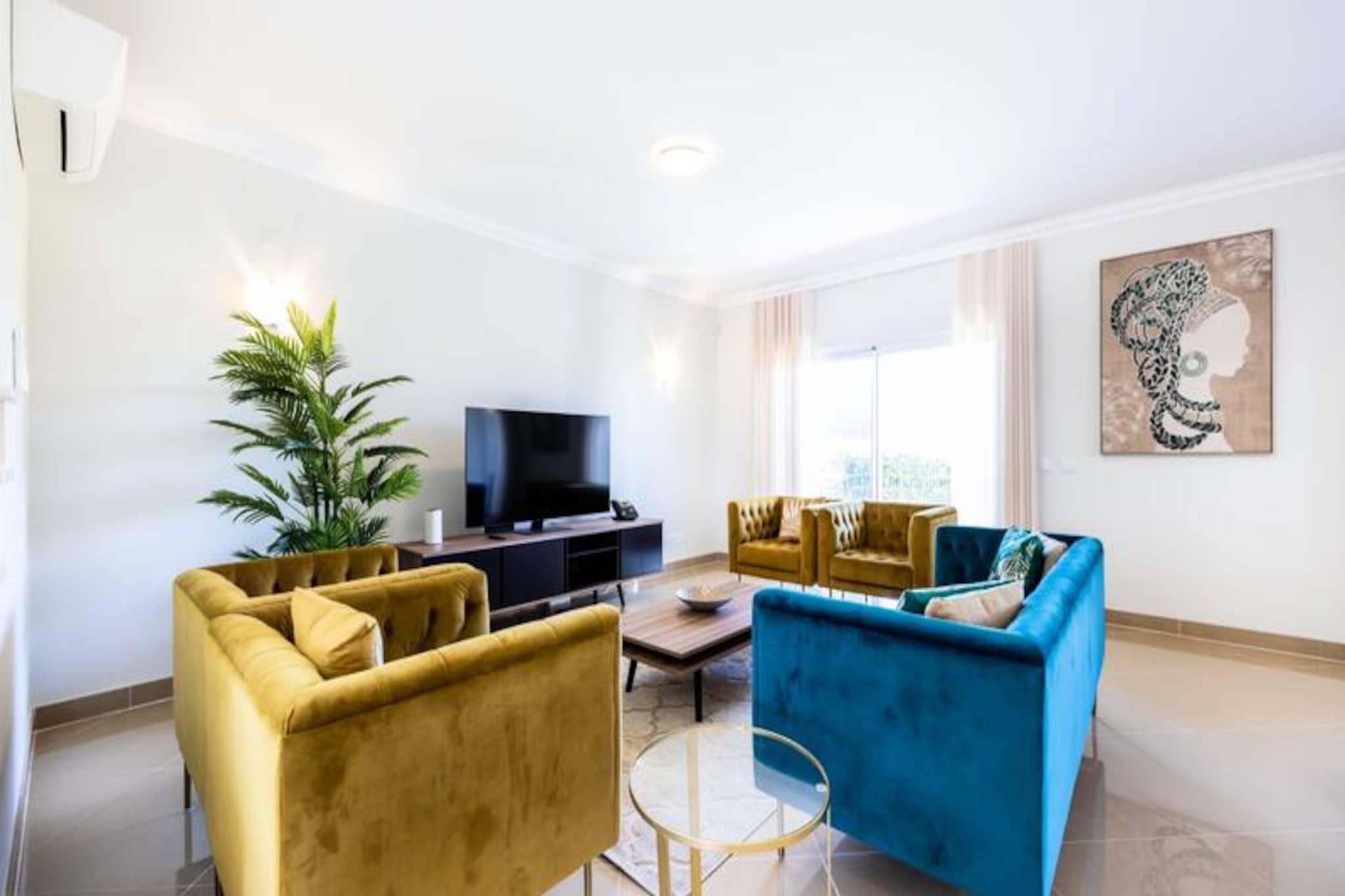 Tenk deg å våkne opp til Algarves fredelige skjønnhet, hvor gyllent sollys filtrerer gjennom din private balkong, og de frodige grønne områdene på en golfbane i verdensklasse strekker seg foran deg. Dette stilige rekkehuset, som ligger i det eksklusive Boa Vista Golf and Spa Resort, tilbyr den perfekte blandingen av avslapning og rekreasjon, bare noen minutter fra den pulserende byen Lagos. Enten du søker et fredelig tilfluktssted eller en aktiv ferie, vil denne eiendommen tilfredsstille alle dine ønsker. Stig inn for å oppdage et vakkert designet hjem med moderne bekvemmeligheter og fargerik innredning som skaper en varm og innbydende atmosfære. Med tre romslige soverom, fire bad og et separat kontor med sovesofa, er det god plass til familier eller vennegrupper. Det fullt utstyrte kjøkkenet og utendørs grillområdet gjør det enkelt å nyte hjemmelagde måltider, mens de delte innendørs- og utendørsbassengene, badstuen og boblebadet gir uendelige muligheter for avslapning. For de som elsker å holde seg aktive, kan feriestedet skryte av tennisbaner, et treningsstudio og en 18-hulls golfbane. Utenfor feriestedet venter den historiske byen Lagos med sine brosteinsbelagte gater, livlige marina og fantastiske klipper. Ta en båt- eller kajakktur for å utforske den fantastiske kystlinjen, eller nyt regionens berømte mat på en av de mange lokale restaurantene. Algarves uberørte strender, vannsport og kulturelle attraksjoner sørger for at det finnes noe for enhver smak. Enten du er her for å slappe av ved bassenget, perfeksjonere golfsvingen din eller utforske Algarves underverker, tilbyr dette rekkehuset en uforglemmelig ferie. Bestill oppholdet ditt i dag og skap minner som vil vare livet ut.