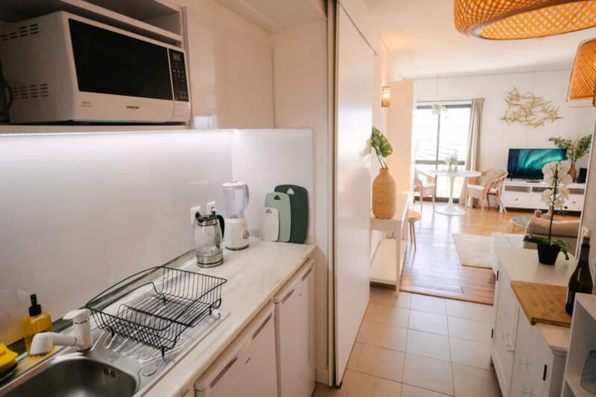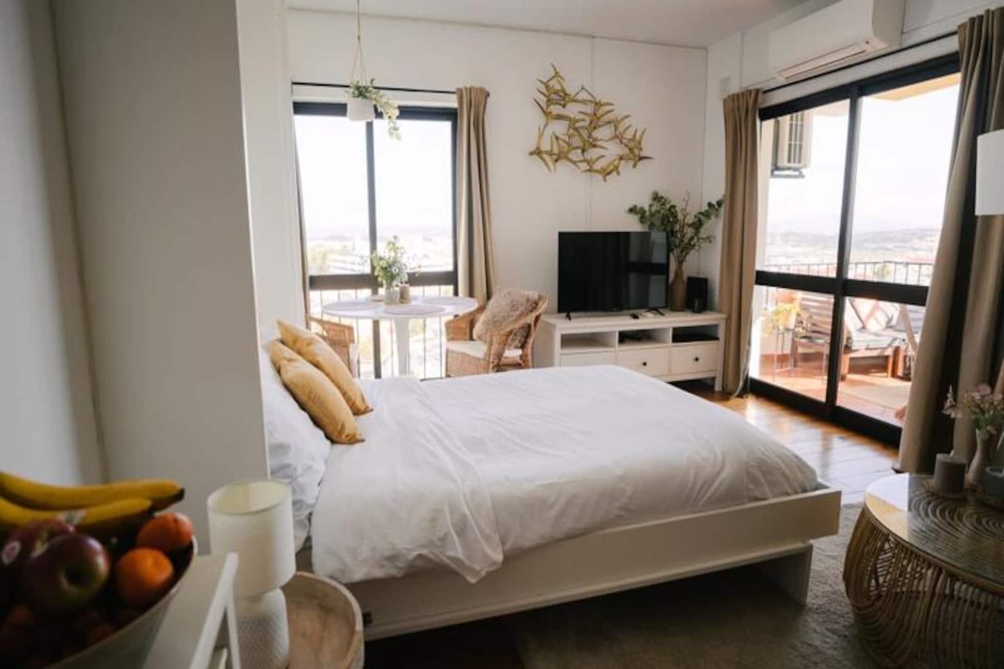 Våkn opp til en vidstrakt utsikt over Lagos fra dette innbydende studioet i 6. etasje, et perfekt tilfluktssted for par eller venner som søker en minneverdig Algarve-flukt. Fra balkongen kan du beundre byens historiske hustak og det glitrende Atlanterhavet når solen står opp eller går ned, og skape et rolig bakteppe for ferien din. Enten du er her for å slappe av eller utforske, tilbyr dette studioet en blanding av komfort og bekvemmelighet i hjertet av Lagos.\n\nInnvendig er plassen gjennomtenkt designet for å maksimere komfort og funksjonalitet. Inngangen fører til en lys stue med en koselig sofa og en smart designet Murphy-seng som kan brettes sammen om dagen og skaper et romslig miljø. Et kompakt, men fullt utstyrt kjøkken lar deg enkelt tilberede måltider, mens den østvendte balkongen inviterer deg til å nyte frokost i morgensolen eller slappe av med et glass vin om kvelden. Moderne fasiliteter som klimaanlegg, Wi-Fi og TV sikrer et komfortabelt opphold, selv i de varme sommermånedene.\n\nGå ut, og du er bare noen minutter unna Lagos' gylne strender og pulserende historiske sentrum. Utforsk brosteinsgatene med butikker, restauranter og kafeer, eller ta turen til marinaen for vannsport som kajakkpadling og padlebrett. For en forfriskende dukkert tilbyr nærliggende klubber som Casabah Restaurant og Dona Ana Pools tilgang til bassenget mot en liten avgift. Algarves fantastiske klipper og kyststier er også innen rekkevidde, og lover uforglemmelige opplevelser.\n\nMed sin førsteklasses beliggenhet og innbydende atmosfære er dette studioet det ideelle utgangspunktet for å oppdage sjarmen og skjønnheten i Lagos. Enten du er her for kulturen, maten eller kystlinjen, sikrer denne eiendommen et herlig og problemfritt opphold i Portugals solfylte paradis.