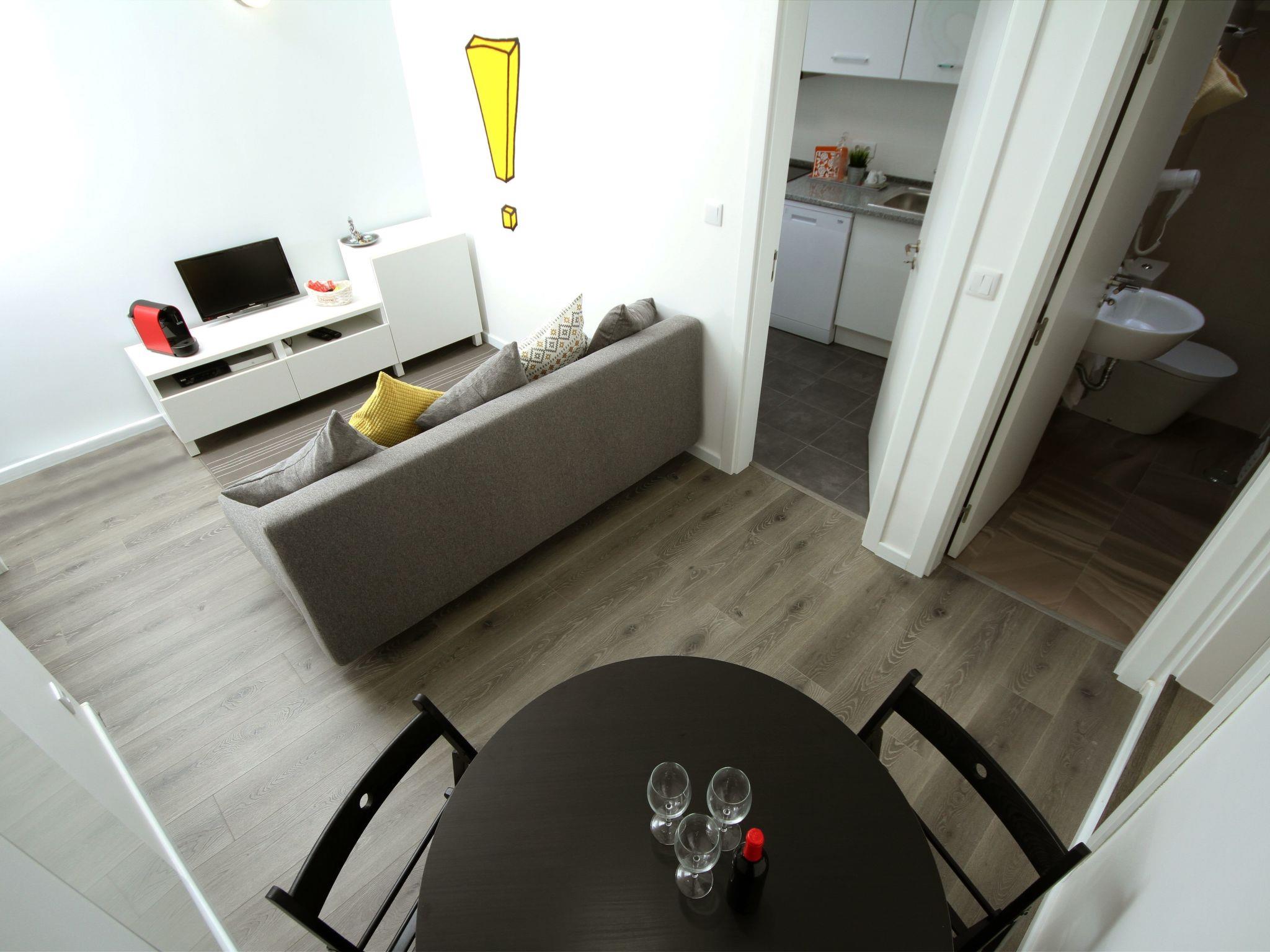 The apartment has a large living room with sofa bed, tv, coffee machine, bathroom with hairdryer and towels, kitchen and bedroom with double bed. Air Condition. Excelent wi-fi free. Very nice and comfortable. Welcome drinks. It is a warm and friendly space for you to enjoy!