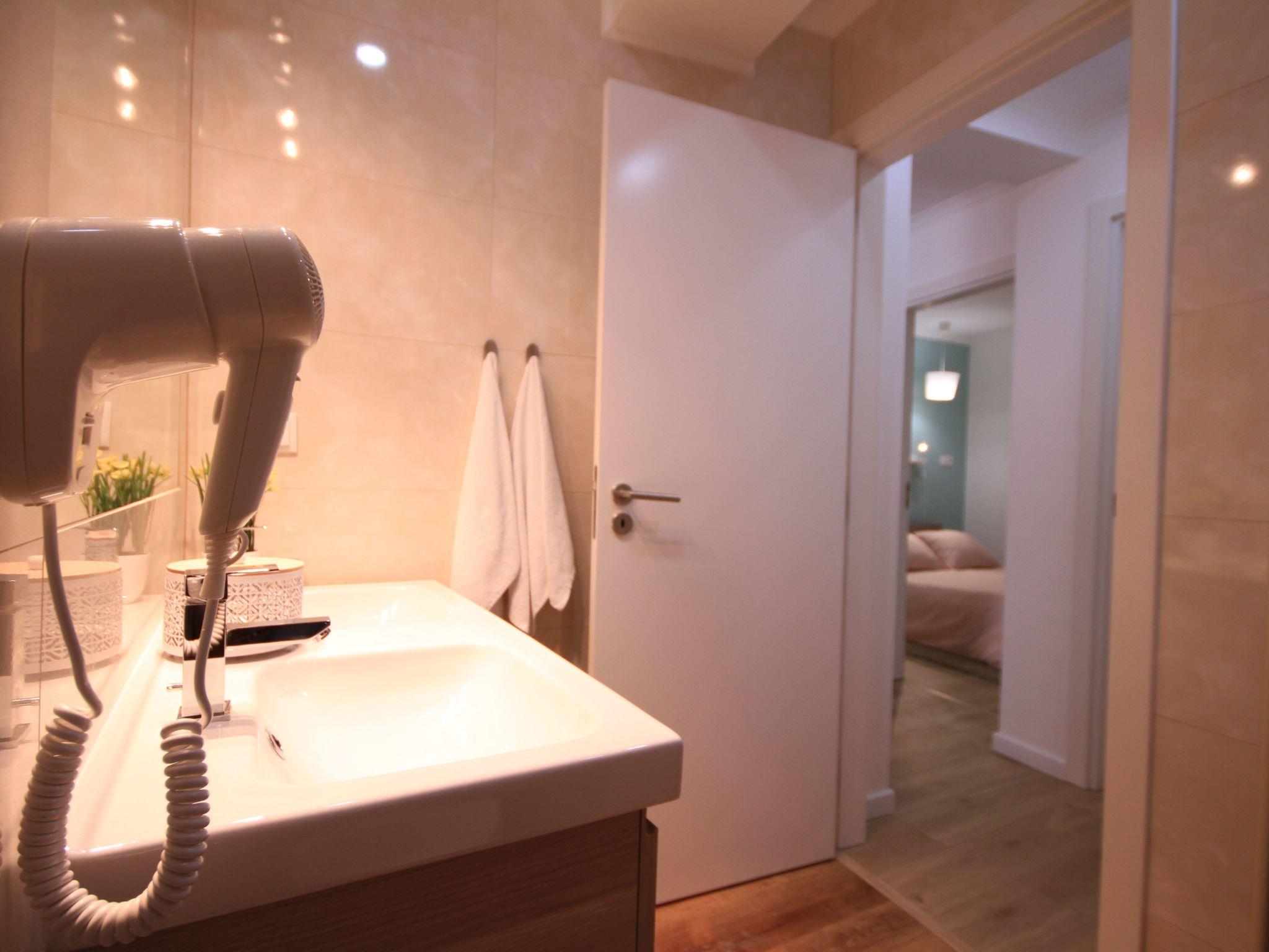 The apartment has two bedrooms, closet, kitchen with everything you need to cook, the bathroom was hairdryer and towels and living room with sofa-bed, tv and dining table. Excelent wi-fi free. Balcony in the living room and bedroom. Very nice and comfortable. Welcome drinks. Apartment very large and beautiful.