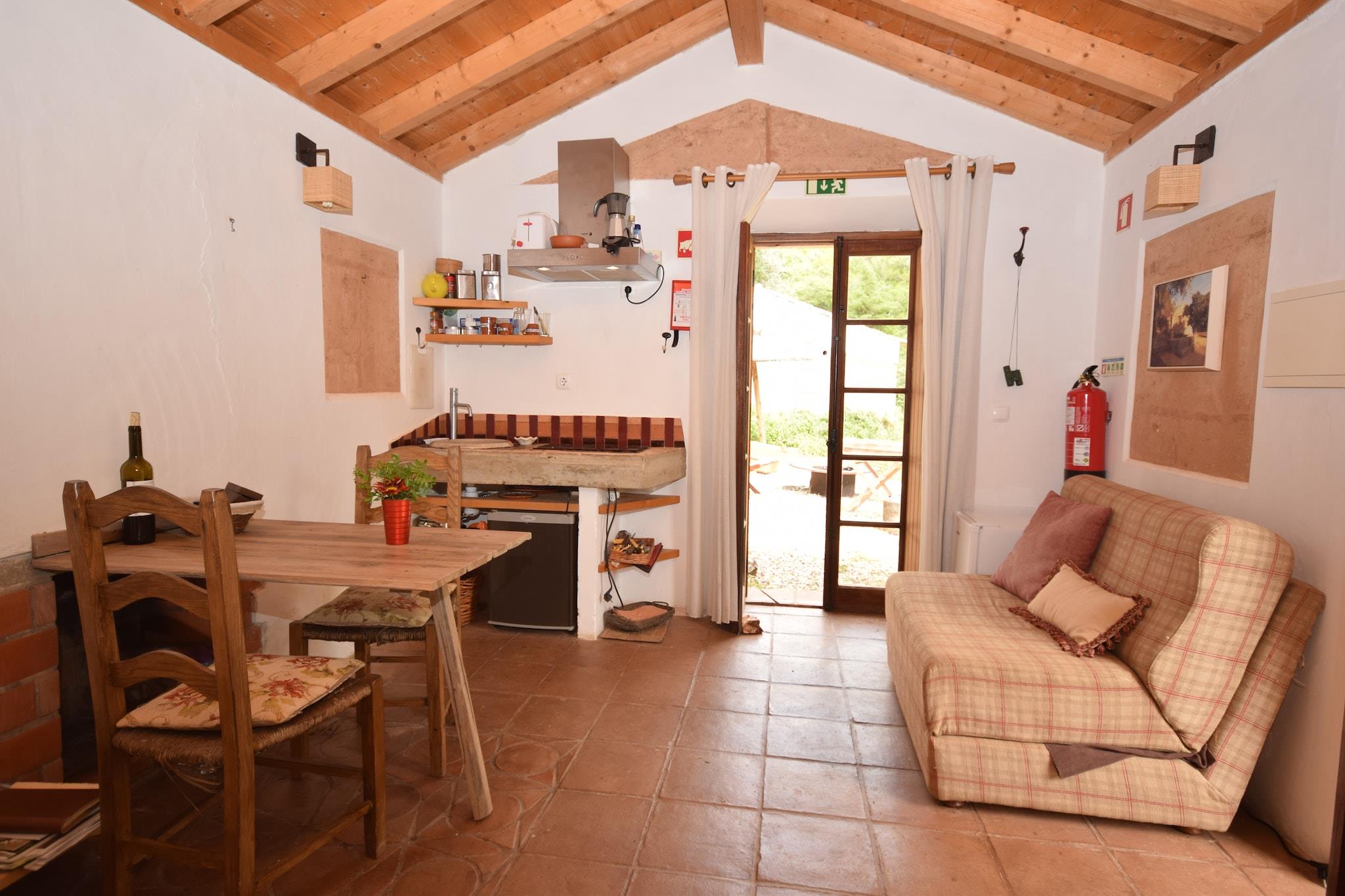 Fantastisk natur omgir deg i denne hytta i Vicentine Coast National Park. Ligger i São Luís, og har en stue-soverom og et privat svømmebasseng for å svømme noen runder på varmere dager. En familie på 2 eller et par vil finne dette oppholdet ideelt. Det landlige området er fredelig og tilbyr mange aktiviteter som fugletitting, ridning, kanopadling, sykling eller svømming. Besøk de nærliggende stedene som S. Luís 8 km unna, Odemira 15 km unna og Vila Nova de Milfontes 22 km unna. Strandelskere må besøke Costa Vicentina med noen av de vakreste strendene i Portugal. Supermarked ligger 1 km unna, og restauranter ligger 9 km unna. En gammel vinkjeller ble ombygd og innredet for å lage denne fantastiske hytta. Du vil nyte den koselige atmosfæren med oppvarming og peis. Den møblerte hagen og terrassen tilbyr fantastisk utsikt over landskapet. Det er en grill for å nyte kveldene. En barneseng er tilgjengelig på forespørsel. Du kan ta med et kjæledyr. Offentlig transport ligger 4 km unna. Denne eiendommen er integrert i en gruppe på tre isolerte hus som ligger omtrent 25 meter fra hverandre og ligger på et avgrenset sted på en 30 hektar stor eiendom i et av de mest beskyttede områdene i naturparken hvor restriksjonene for bygging er svært strenge. På grunn av beliggenheten og naturen rundt eiendommen er veier som fører opp til eiendommen grusveier.