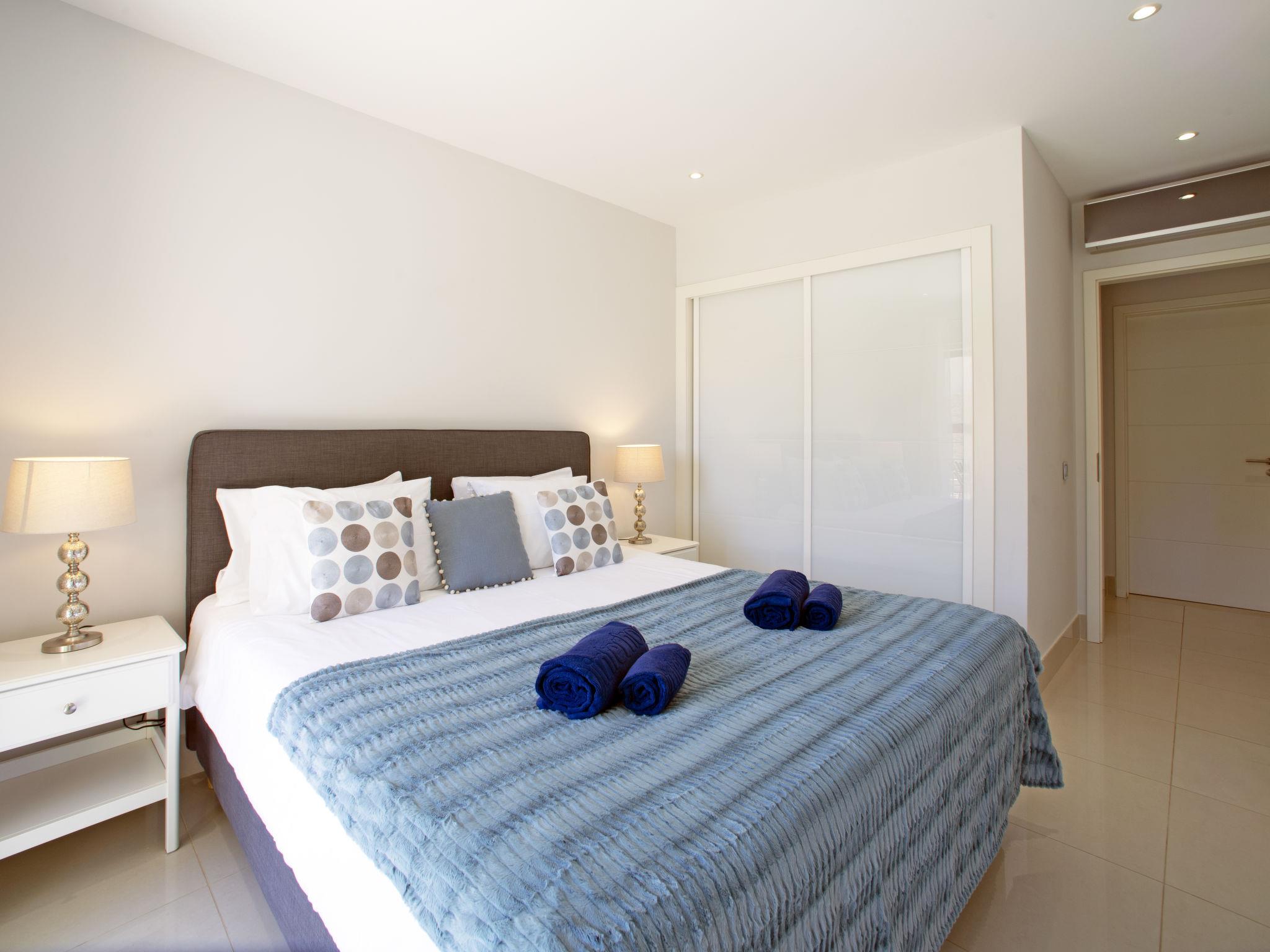 "Pine Hills Ambar", 3-room apartment 123 m2, on the upper ground floor. Modern and cosy furnishings: living/dining room with 1 sofabed (140 cm, length 190 cm), dining table, TV, international TV channels, flat screen, air conditioning and forced-air heating. Exit to the terrace. 1 room with 1 french bed (160 cm, length 190 cm), shower/WC, air conditioning and forced-air heating. 1 room with 1 french bed (180 cm, length 195 cm), bath/WC, double hand-basin, air conditioning and forced-air heating. Exit to the terrace. Kitchen (oven, dishwasher, 4 ceramic glass hob hotplates, microwave, freezer, electric coffee machine, Capsules for coffee machine (Delta Q Not Incl)). Sep. WC. Small terrace 40 m2. Terrace furniture, deck chairs (2). Side view of the swimming pool and the garden. Facilities: washing machine, iron, children's high chair, baby cot for up to 2 year olds, hair dryer. Internet (WiFi, free). Parking (roofed), garage space n L33 + L49. Please note: suitable for families. Non-smokers only. Fire extinguisher. 87399/AL