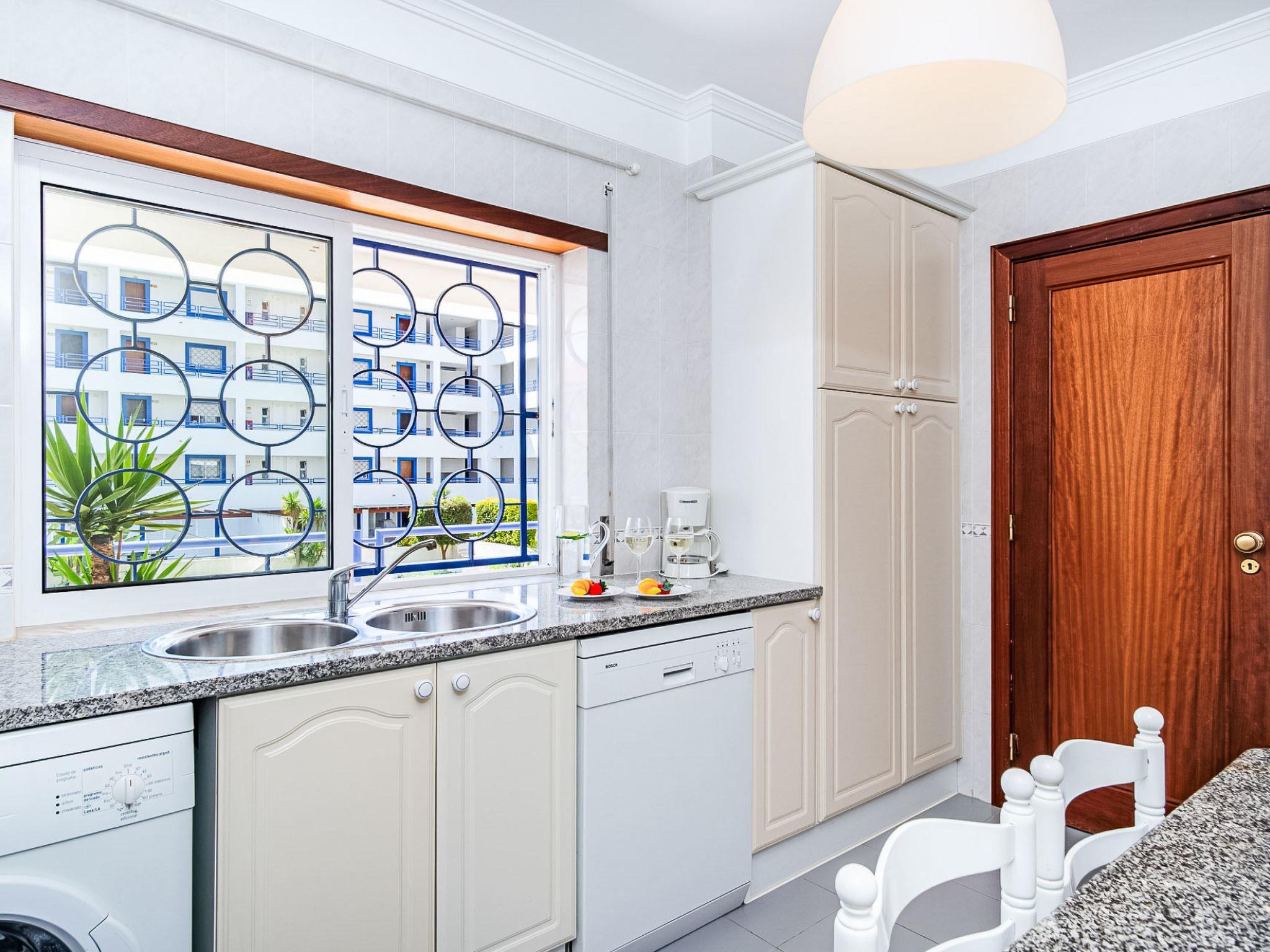 "Mediterrâneo", 3-room apartment 75 m2 on 1st floor. Very comfortable and cosy furnishings: living/dining room with cable TV, flat screen, air conditioning and forced-air heating. Exit to the balcony. 1 room with 1 french bed (1 x 160 cm, length 200 cm), bath/WC, air conditioning and forced-air heating. 1 room with 1 french bed (1 x 140 cm, length 200 cm), air conditioning and forced-air heating. Kitchen (oven, dishwasher, 4 gas rings, toaster, kettle, microwave, freezer, electric coffee machine, Capsules for coffee machine (Delta Q Not Incl)). Bath/WC. Air-conditioning. Balcony furniture. View of the resort. Facilities: washing machine, iron, children's high chair, baby cot for up to 2 year olds, hair dryer. Internet (WiFi, free). Suitable for families. 163453/AL