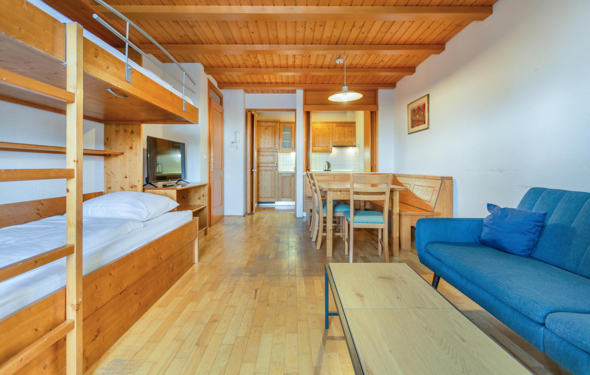 Føl deg som hjemme i de attraktive rommene, med de hjemmekoselige møblene, som får et varmt uttrykk ved bruk av mye treverk, er leiligheten det ideelle stedet for en herlig ferie og egner seg godt for en ferie med barn. Svøm i bassenget, som deles med andre gjester, uansett vær, og sett deg godt til rette i stuen etter aktivitetene.