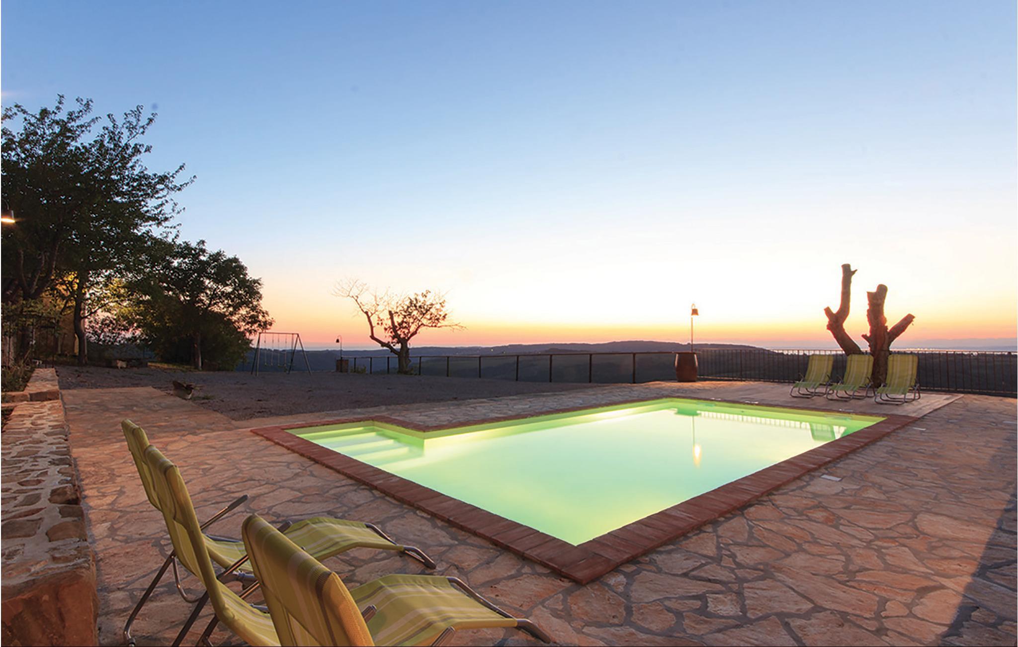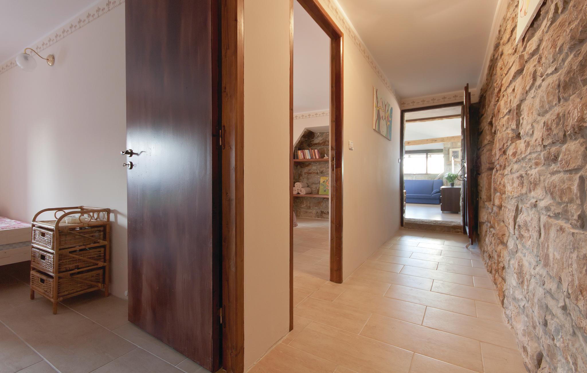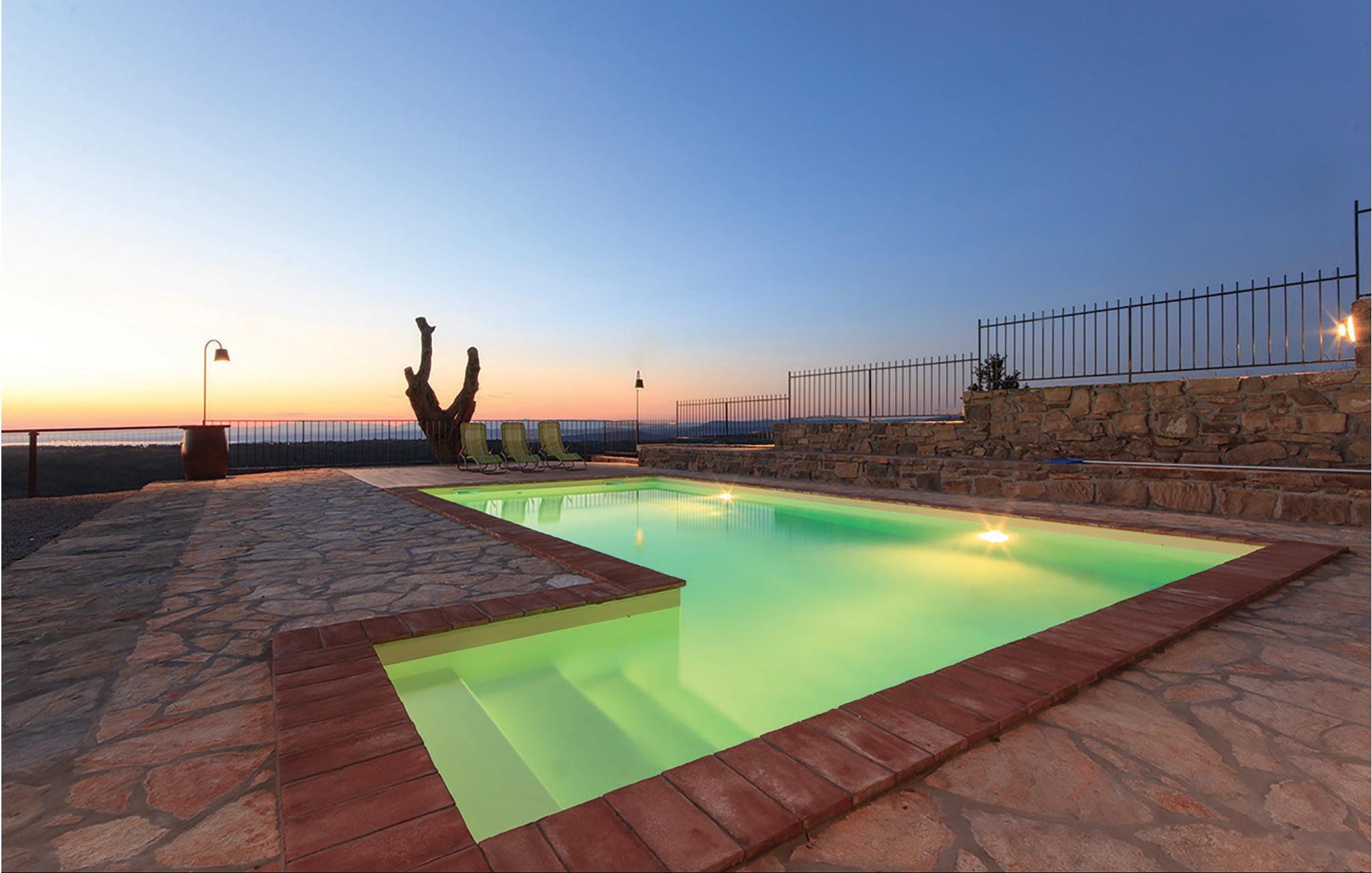 Denne innkvarteringen består av to separate steinhus som har blitt nøye renovert samtidig som de tradisjonelle elementene er beholdt. I det ene huset, i første etasje, er det en stor stue og en spisestue med biljard og dart. Kjøkkenet er veldig godt utstyrt og er atskilt fra de andre rommene. I 1. etasje er det tre soverom for totalt 9 gjester. 2 soverom med eget bad. Dette huset har en overbygd terrasse med grill. I det andre huset er det et spisekjøkken og et toalett i første etasje, de 2 soverommene er i 1. og 2. etasje. Ett soverom er med eget bad. Dette huset har en åpen terrasse med grill og fluktstoler. Mellom husene er det to separate toaletter og et vaskerom. Huske for små barn. Det er også en tredje enhet med egen inngang, bestående av første etasje med stue og kjøkken og et bad og ovenpå med soverom. Det er et utendørsbasseng til din disposisjon. Eiendommen er omgitt av en steinmur. Panoramautsikten over omgivelsene helt til sjøen gir en spesielt hyggelig atmosfære. En dagligvarebutikk ligger 7 km fra huset, og et vertshus som serverer autentiske spesialiteter ligger bare 1 km unna. Det er mulig å organisere frokost på stedet etter avtale.