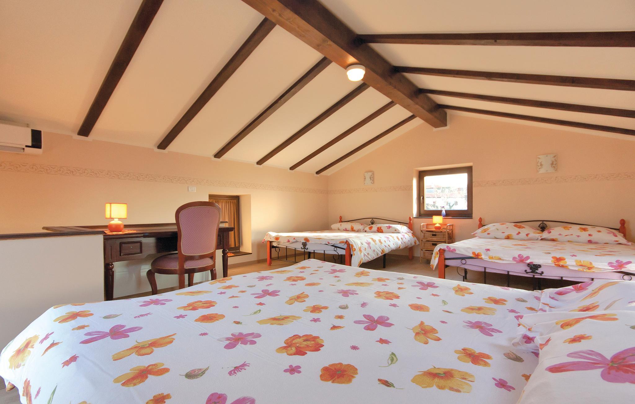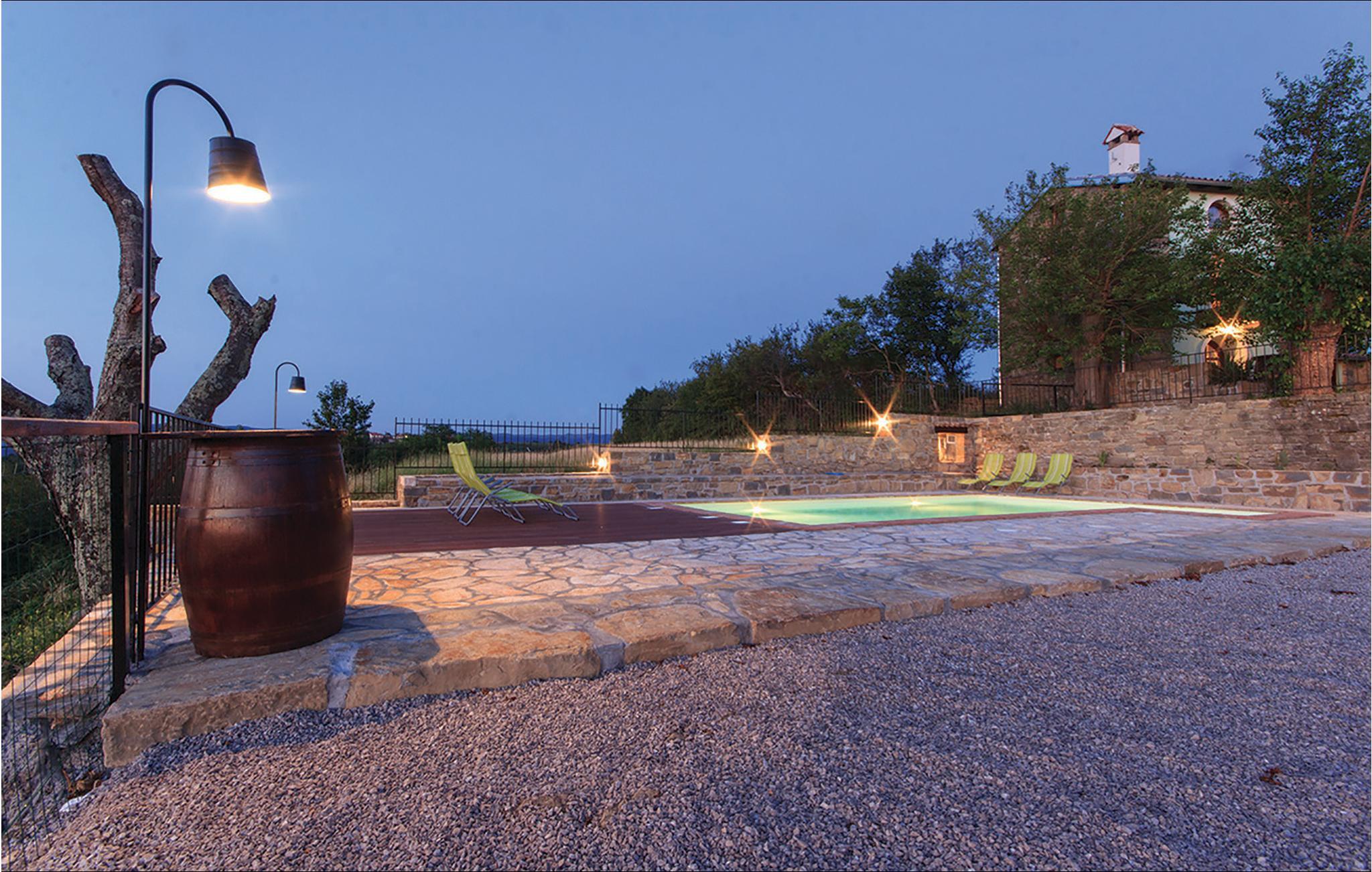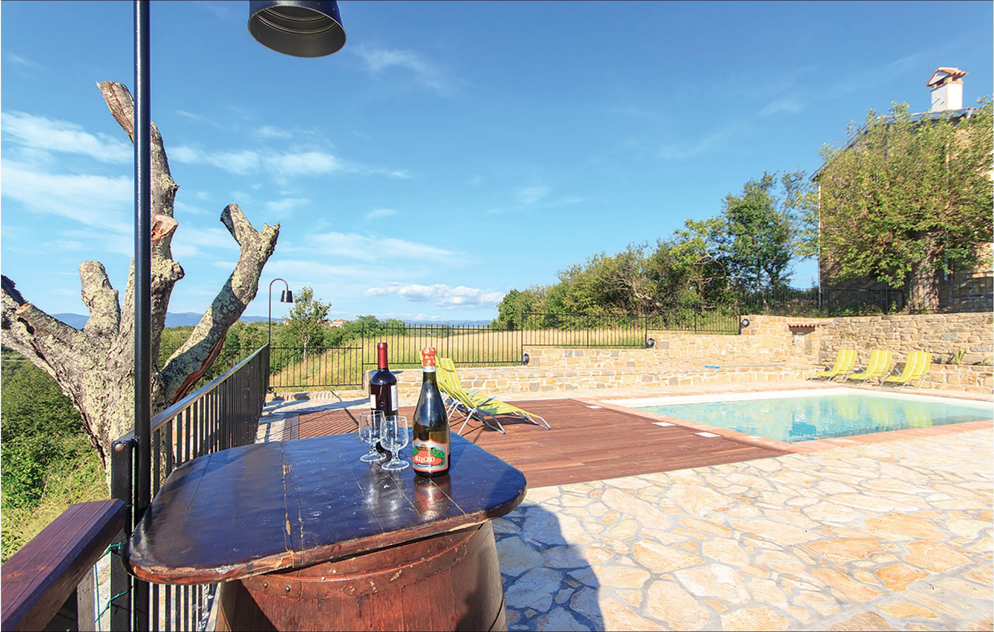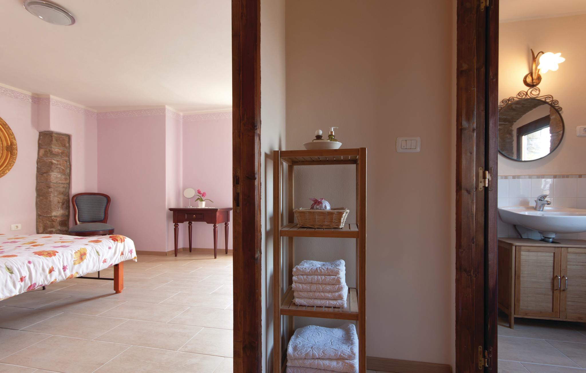 Denne innkvarteringen består av to separate steinhus som har blitt nøye renovert samtidig som de tradisjonelle elementene er beholdt. I det ene huset, i første etasje, er det en stor stue og en spisestue med biljard og dart. Kjøkkenet er veldig godt utstyrt og er atskilt fra de andre rommene. I 1. etasje er det tre soverom for totalt 9 gjester. 2 soverom med eget bad. Dette huset har en overbygd terrasse med grill. I det andre huset er det et spisekjøkken og et toalett i første etasje, de 2 soverommene er i 1. og 2. etasje. Ett soverom er med eget bad. Dette huset har en åpen terrasse med grill og fluktstoler. Mellom husene er det to separate toaletter og et vaskerom. Huske for små barn. Det er også en tredje enhet med egen inngang, bestående av første etasje med stue og kjøkken og et bad og ovenpå med soverom. Det er et utendørsbasseng til din disposisjon. Eiendommen er omgitt av en steinmur. Panoramautsikten over omgivelsene helt til sjøen gir en spesielt hyggelig atmosfære. En dagligvarebutikk ligger 7 km fra huset, og et vertshus som serverer autentiske spesialiteter ligger bare 1 km unna. Det er mulig å organisere frokost på stedet etter avtale.