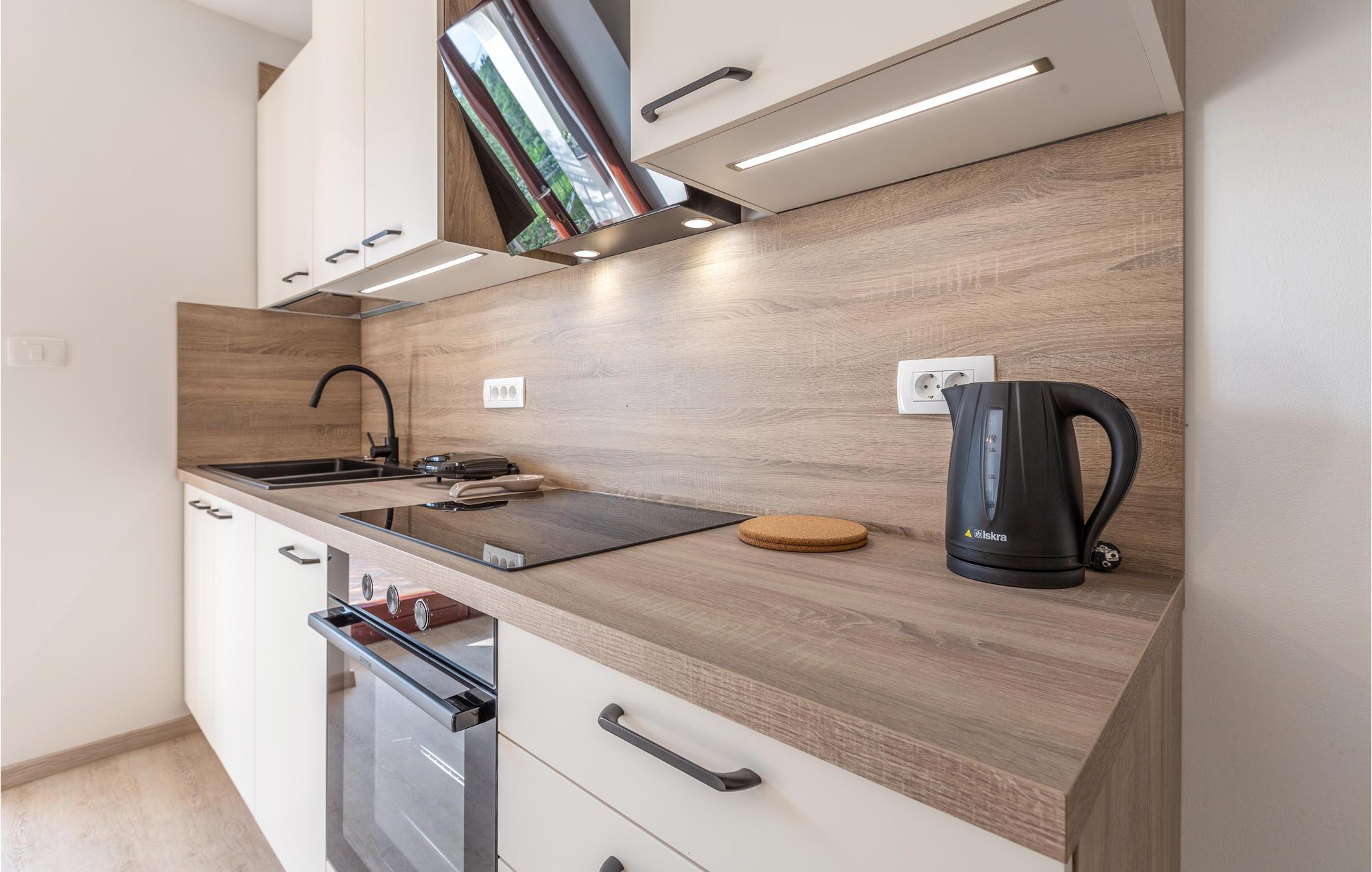 Velkommen til Seovlje og til denne vakre ferieleiligheten i et hus med to leiligheter, som gir deg og familien den ideelle rammen for en opplevelsesrik ferie. Lag en deilig frokost om morgenen og legg planer for dagen mens du spiser. Du vil umiddelbart føle deg som hjemme i de vakre rommene med moderne møbler.
