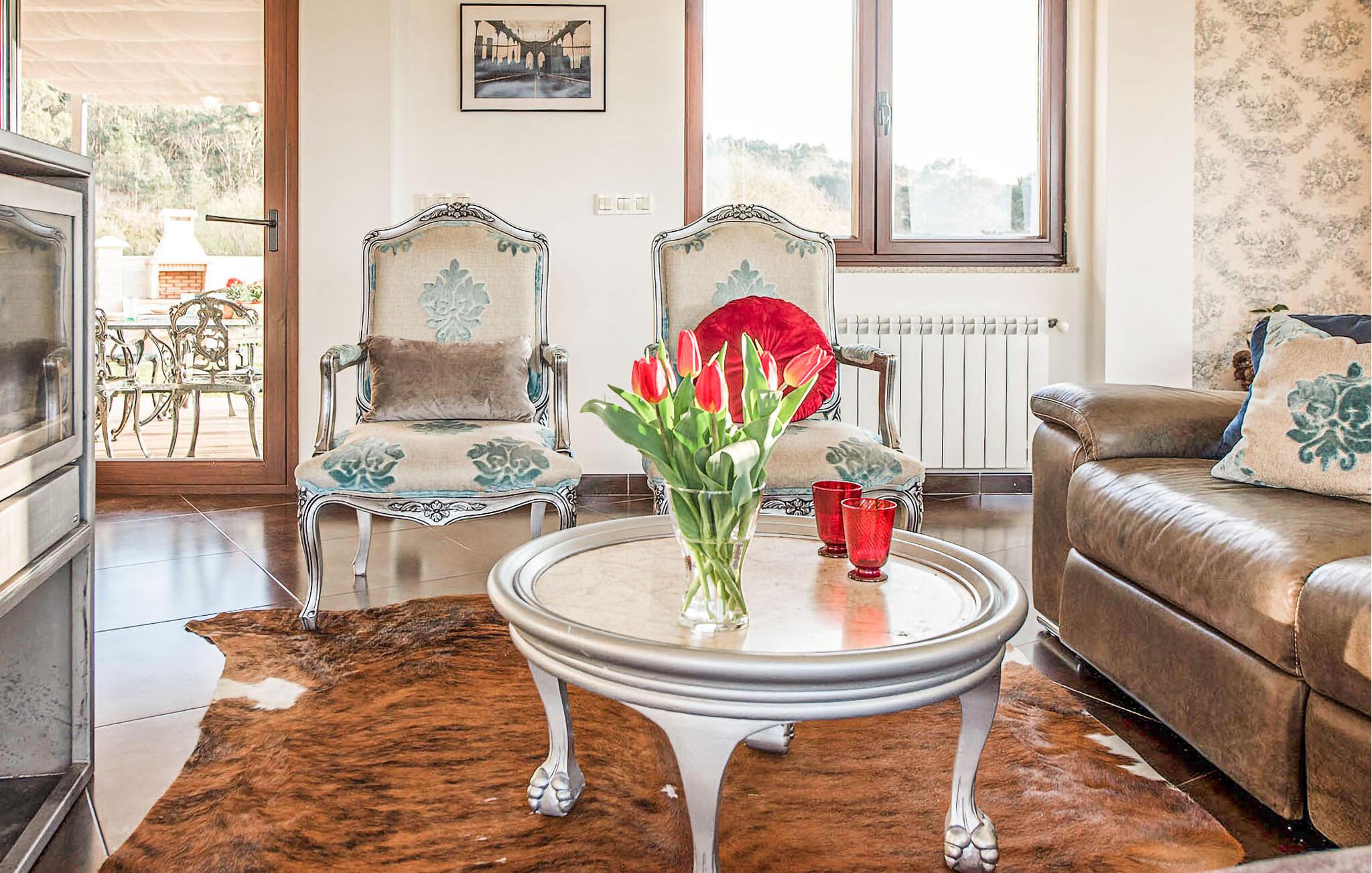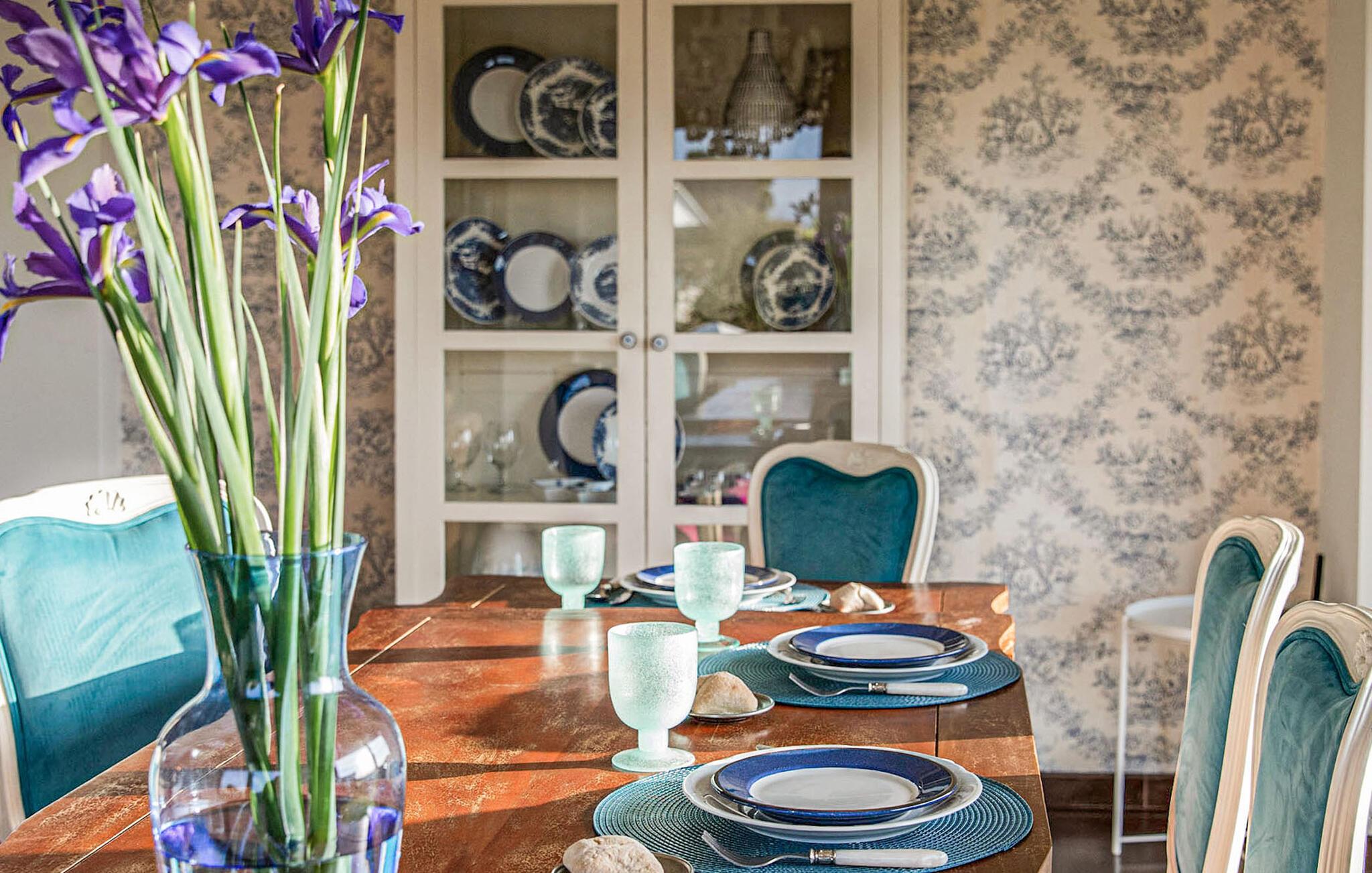 Utenfor venter en romslig hage med innbydende sitteplasser i sol og skygge. Spaser barbeint til det vakre bassenget, la barna organisere en piknik på den velstelte plenen og feir tiden sammen med stemningsfulle måltider i det fri.