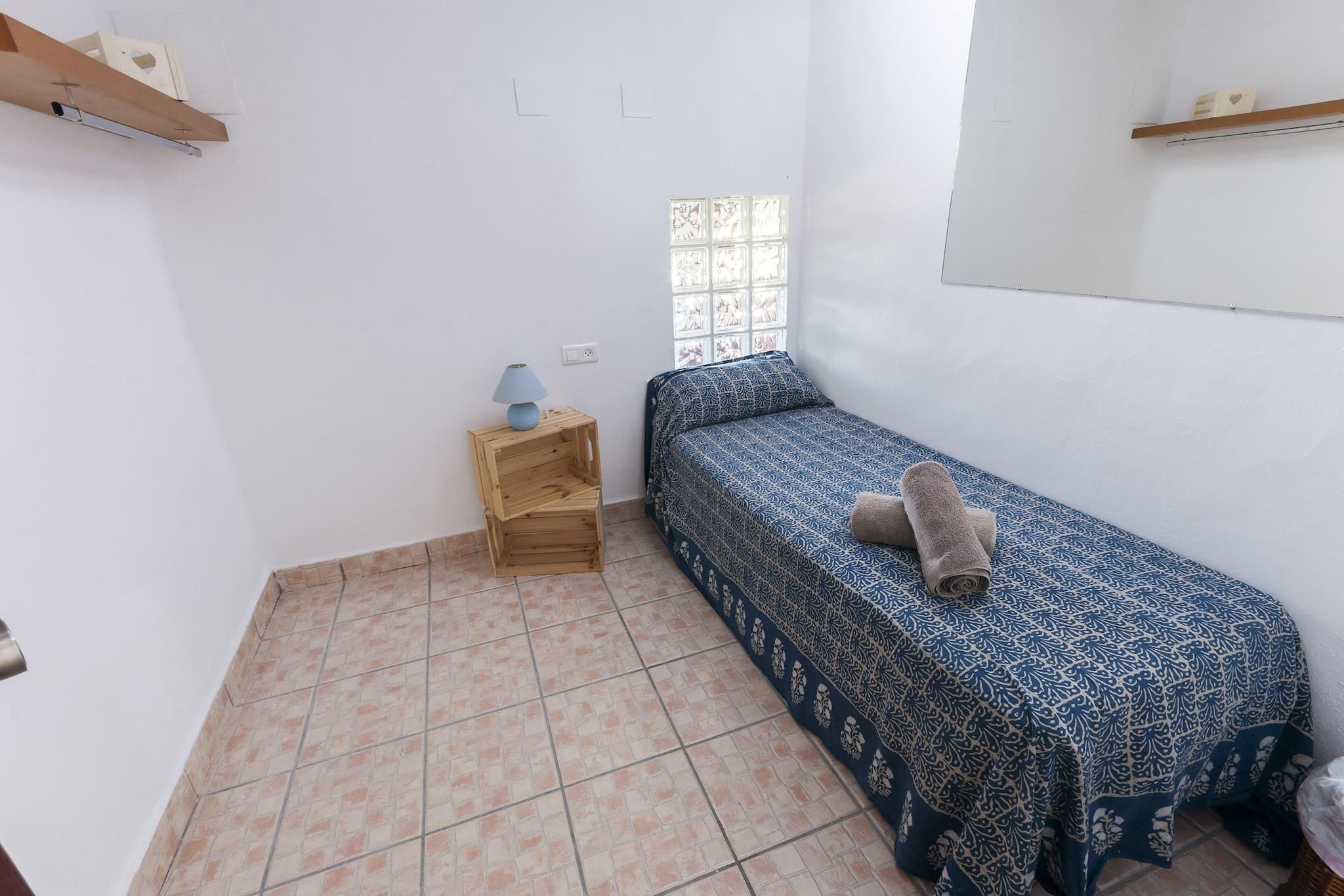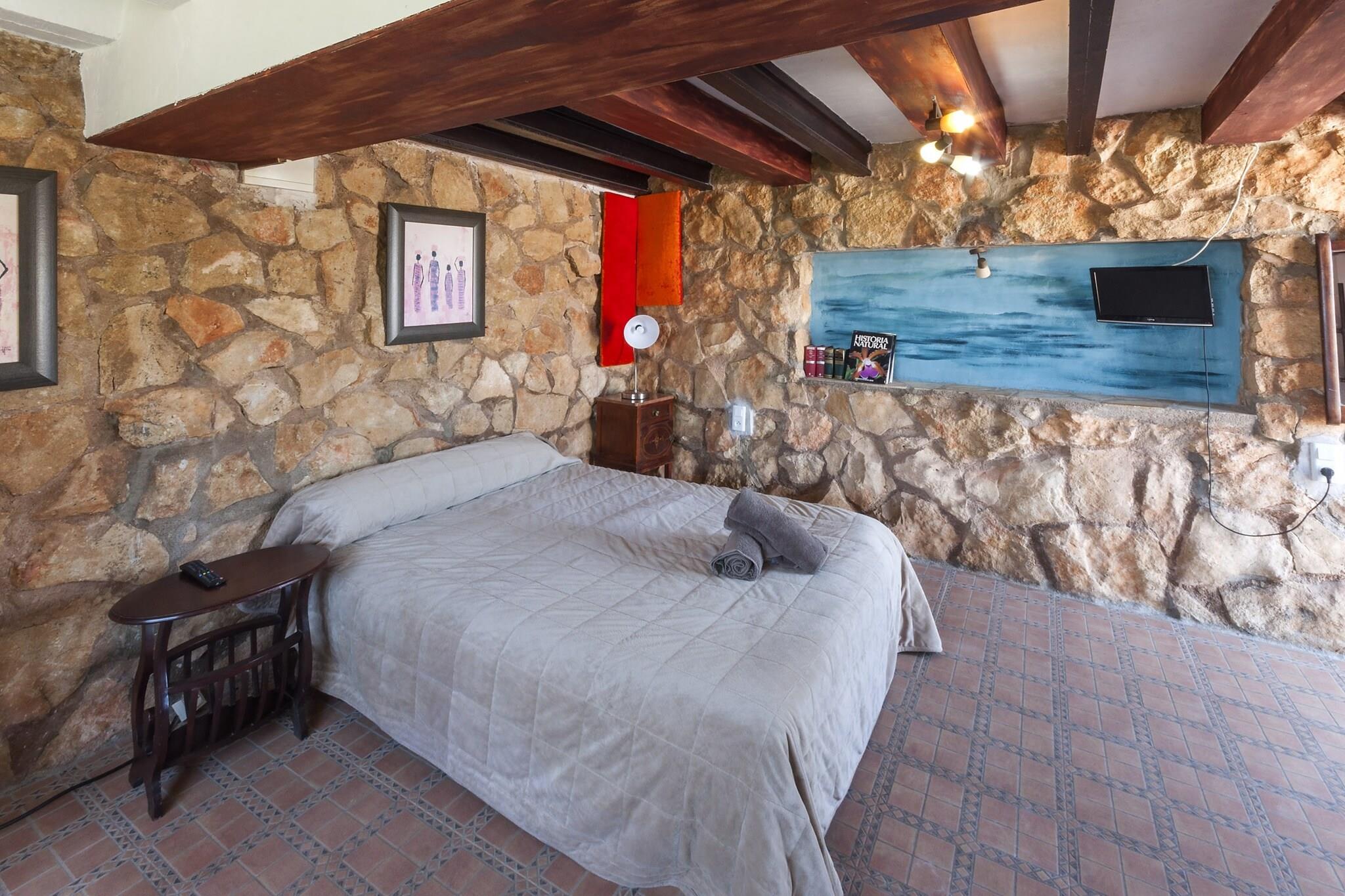 Genießen Sie einen privilegierten Blick auf die Berge bei einem angenehmen Bad im privaten Salzpool – 8 x 7 m groß und 1,8 m tief – oder kühlen Sie sich auch in der Außendusche ab. Rundherum gibt es eine schöne Kunstrasenecke mit 4 Sonnenliegen, ideal zum Sonnenbaden. Dieser Bereich ist eingezäunt, falls Sie mit Kindern übernachten. Dann laden wir Sie ein, ein köstliches Barbecue im Freien zuzubereiten und es auf der Terrasse zu genießen. Dieses einzigartige Haus verfügt dank seines freigelegten Felsens über eine große, sehr originelle Wohnküche. Zusammen mit der Klimaanlage können Sie auf dem Gasherd Ihre besten Rezepte zubereiten, essen, fernsehen, Musik hören oder lesen. Hier gibt es eine Waschmaschine, ein Bügeleisen und ein Bügelbrett. Es gibt 3 Schlafzimmer mit Doppelbett und Kleiderschrank, eines davon mit eigenem Bad mit Dusche und einer zusätzlichen einfachen Küche, wodurch es wie ein kleines Apartment mit direktem Zugang zum Pool wirkt. Zwei Zimmer verfügen über eine Klimaanlage. Für zwei weitere Gäste steht eine Doppelschlafcouch zur Verfügung. Abgerundet wird die Unterkunft durch ein weiteres Badezimmer mit Badewanne, zwei Ventilatoren, zwei Heizkörpern, einem Kinderbett und einem Hochstuhl. Dieses charmante Anwesen, das auf demselben Berg erbaut wurde und einen weiten Blick auf das Mittelmeer und die Städte Safor bietet, kombiniert jahrhundertealte Möbel und Steine ??mit Rustikalität, Komfort, Originalität und Stille, die durch seine Gärten noch verstärkt werden. Es ist ideal für diejenigen, die Ruhe suchen. Ador liegt nur 8 km von Gandía und 15 km vom Strand von Gandía entfernt. Hinweis: In dieser Unterkunft können keine Gäste unter 25 Jahren akzeptiert werden, es sei denn, es handelt sich um einen Familienaufenthalt. Wir benötigen Kopien der Ausweise jeder Person, um die Reservierung annehmen zu können. Bezüglich möglicher zusätzlicher Kosten wenden Sie sich bitte an den Werbetreibenden. Haustiere bis 30,00 kg sind willkommen. Das Feiern von Veranstaltungen ist nicht gestattet. Es gibt einen Außenparkplatz für 2 Autos. Entfernungen Strand: 15 km - Gandia Flughafen: 85 km - Valencia Golfplatz: 12 km - Gandia Stadt: 0,4 km - Ador Bahnhof: 10 km - Gandia Bushaltestelle: 1,2 km - Ador Fähre: 41 km - Denia Krankenhaus: 12 km - Gandia Touristenlizenz: ARV-463