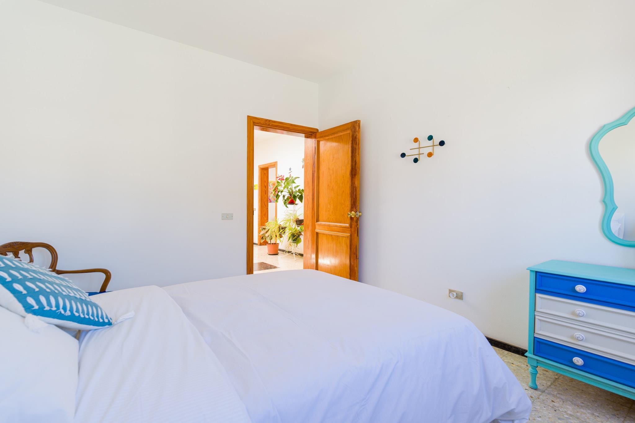 Denne romslige 3-roms hytten i Agaete ligger bortgjemt i den robuste skjønnheten på Gran Canarias nordvestkyst, og tilbyr et fredelig tilfluktssted for opptil seks gjester. Med 175 m² med innbydende interiør og en 30 m² møblert terrasse, er det den perfekte blandingen av komfort, natur og privatliv. Dette hjemmet er omgitt av fjell og bare et steinkast fra havet, og er ideelt for reisende som søker en rolig tilfluktssted med lett tilgang til både strender og sjarmerende lokalliv. Hytta er utstyrt med alt du trenger for et bekymringsløst opphold – høyhastighets Wi-Fi, et velutstyrt kjøkken med keramisk kokeplate, stekeovn, mikrobølgeovn, juicepresse, kaffemaskin og mer, pluss nødvendigheter som vaskemaskin, grill og fire bærbare vifter for ekstra komfort. Nyt utendørs servering på den inngjerdede terrassen eller ta en spasertur gjennom hagen mens du nyter utsikten over de omkringliggende åsene. En privat parkeringsplass legger til bekvemmelighet, mens hjemmets rustikke eleganse sikrer et minneverdig opphold. Ligger bare noen meter fra naturskjønne Playa del Juncal og i nærheten av lokale favoritter som restauranten Dedo de Dios, vil du også være nær de naturlige bassengene i Las Salinas, sanden på Playa de Guayedra og Sardina del Norte, og den kulturelle sjarmen til Agaete og Gáldar. Enten du går på fottur i Tamadaba naturpark, slapper av ved sjøen eller utforsker lokale markeder og kafeer, tilbyr denne koselige fjellhytten den perfekte setting for en rolig øyferie.