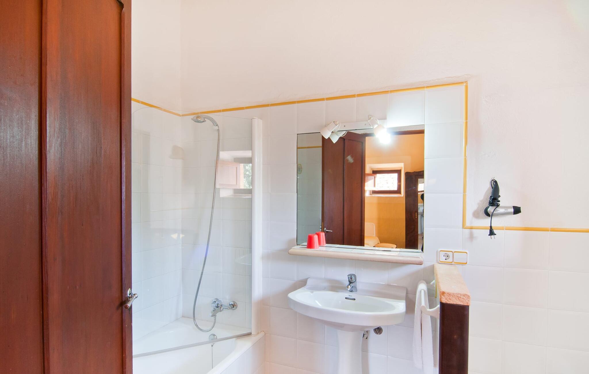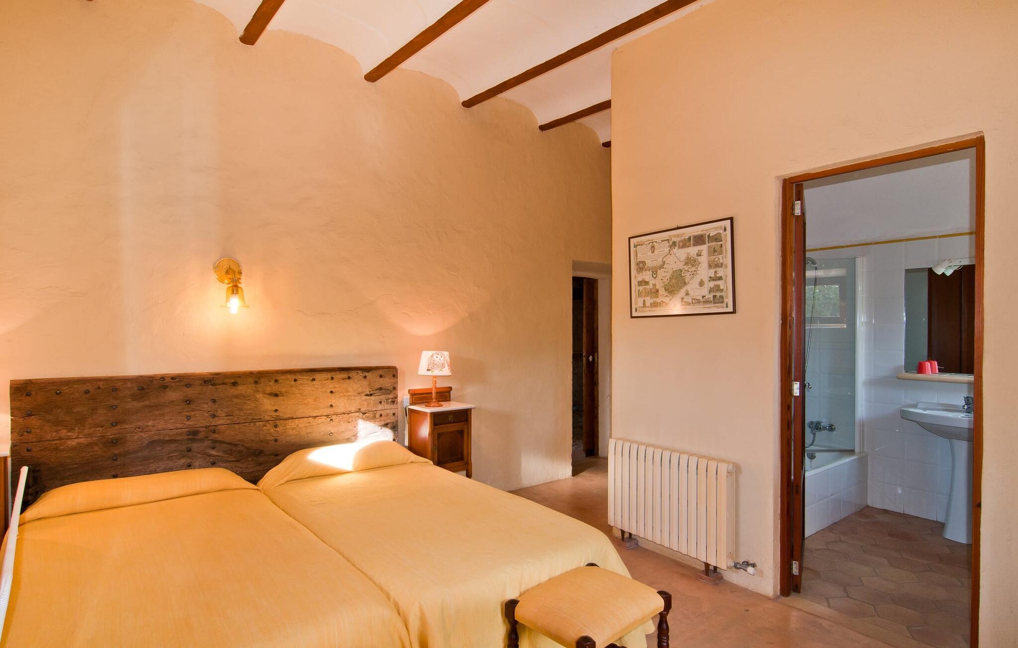 Kanskje er det denne leiligheten med sin unike historie. Es Moli, kornmøllen, er fullt ut bevart i dagens stue og fungerer som et unikt bord. Før i tiden løp et esel eller et muldyr rundt og rundt her og vred på kvernsteinene. Kornet ble lagret i soverommene. Begge dobbeltrommene har eget bad med dusjnisje. Den koselige stuen er innredet med sofa, TV og en rustikk peis, som gir en spesiell atmosfære og varme når det trengs. På dager da du ønsker å være på eiendommen hele dagen, kan du tilberede snacks, salater og små måltider i kjøkkenkroken med kjøleskap, to keramiske kokeplater, mikrobølgeovn og kaffemaskin. I tillegg til bord, stoler og parasoll har terrassen en liten dør, slik at du kan være helt privat. Samtidig har du utsikt over bassenget og barna som plasker rundt i det. Unn deg en pust i bakken med en god bok innimellom. Og det finnes en rekke utfluktsmål som er verdt det: Byliv eller havbris? Fra villaen din kan du enkelt utforske de forskjellige sidene av øya. Godt og vel 15 kilometer unna venter strendene på soltilbedere, surfere og familier. Den langstrakte Son Serra de Marina og den nesten to kilometer lange sandstranden i retning Colònia de Sant Pere tilbyr nok plass til å spre ut mer enn bare et håndkle. Hvis du vil nyte de blå tonene fra oven, kan du kjøre til Betlem og klatre de fem kilometerne opp til den lille Ermita. Det er selvfølgelig også mulig å gå mer utfordrende ruter med tursko og terrengsykkel. Ma-3322, som noen ganger kan høres avhengig av vindretningen, tar deg til byen Manacor for en spontan tur til det historiske sentrum eller for å handle på vitaminmarkedet. Hvis du vil besøke katedralen i Palma, er det bare å sette fra seg bilen på jernbanestasjonen og ta buss eller tog. Feriehus på landet med mye natur for villaens gjester. Føl deg som hjemme på agroturismoen Son Sureda, som ligger mellom sauebeiter og vinmarker og har elleve selvbetjente leiligheter og studioer, en stor U-formet gårdsplass og flere bassenger. Manacor, en av øyas metropoler, ligger bare 9 km unna. Her kan du handle på det daglige frukt- og grønnsaksmarkedet, dra på utflukter og spise en avslappet middag på en restaurant. Og på Badia dAlcúdia, i retning Son Serra de Marina og Colònia de Sant Pere, kan du fortsatt finne noen strender som ennå ikke er overfylte.