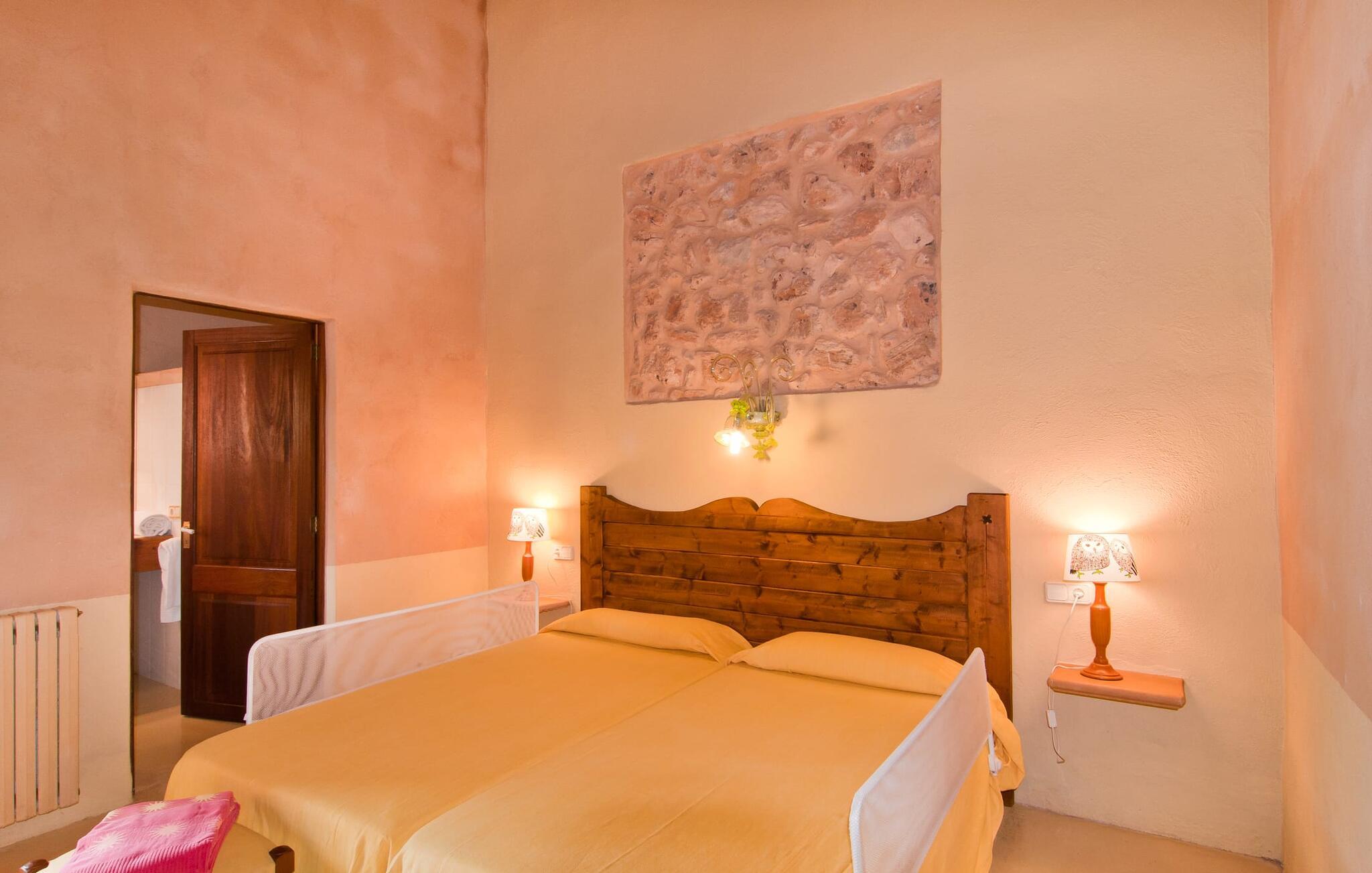 Kanskje er det denne leiligheten med sin unike historie. I gamle dager var dette huset hingstenes stall. Et hannesel ble krysset med en hoppe, og på den måten fikk man et muldyr, et sterkt dyr som kunne bære tunge lass og arbeide i timevis. Hvert av soverommene i denne boenheten har eget bad med dusj, dobbel servant og toalett. Den koselige stuen er innredet med sofa, mallorkinske gyngestoler, TV og peis, som gir en spesiell atmosfære og varme når det trengs. På dager da du ønsker å være på eiendommen hele dagen, kan du tilberede snacks, salater og små måltider i kjøkkenkroken med kjøleskap, to keramiske kokeplater, mikrobølgeovn og kaffemaskin. Terrassen er møblert med bord, stoler, solsenger og parasoll. Unn deg en pust i bakken med en god bok innimellom. Og det finnes en rekke utfluktsmål som er verdt å besøke: Byliv eller havbris? Fra villaen din kan du enkelt utforske de forskjellige sidene av øya. Godt og vel 15 kilometer unna venter strendene på soltilbedere, surfere og familier. Den langstrakte Son Serra de Marina og den nesten to kilometer lange sandstranden i retning Colònia de Sant Pere tilbyr nok plass til å spre ut mer enn bare et håndkle. Hvis du vil nyte de blå tonene fra oven, kan du kjøre til Betlem og klatre de fem kilometerne opp til den lille Ermita. Det er selvfølgelig også mulig å gå mer utfordrende ruter med tursko og terrengsykkel. Ma-3322, som noen ganger kan høres avhengig av vindretningen, tar deg til byen Manacor for en spontan tur til det historiske sentrum eller for å handle på vitaminmarkedet. Hvis du vil besøke katedralen i Palma, er det bare å sette fra seg bilen på jernbanestasjonen og ta buss eller tog. Feriehus på landet med mye natur for villaens gjester. Føl deg som hjemme på agroturismoen Son Sureda, som ligger mellom sauebeiter og vinmarker, og har elleve selvbetjente leiligheter og studioer, en stor U-formet gårdsplass og flere bassenger. Manacor, en av øyas metropoler, ligger bare 9 km unna. Her kan du handle på det daglige frukt- og grønnsaksmarkedet, dra på utflukter og spise en avslappet middag på en restaurant. Og på Badia dAlcúdia, i retning Son Serra de Marina og Colònia de Sant Pere, kan du fortsatt finne noen strender som ennå ikke er overfylte.