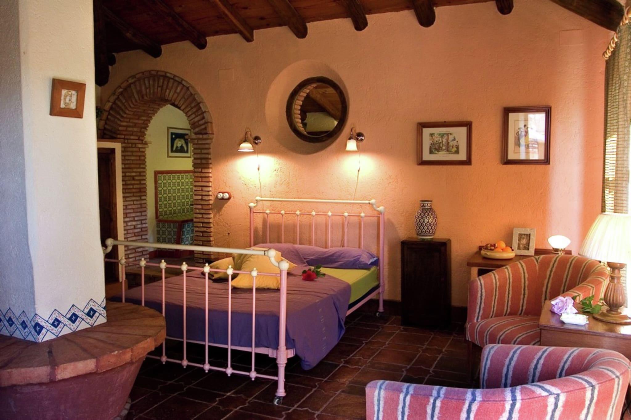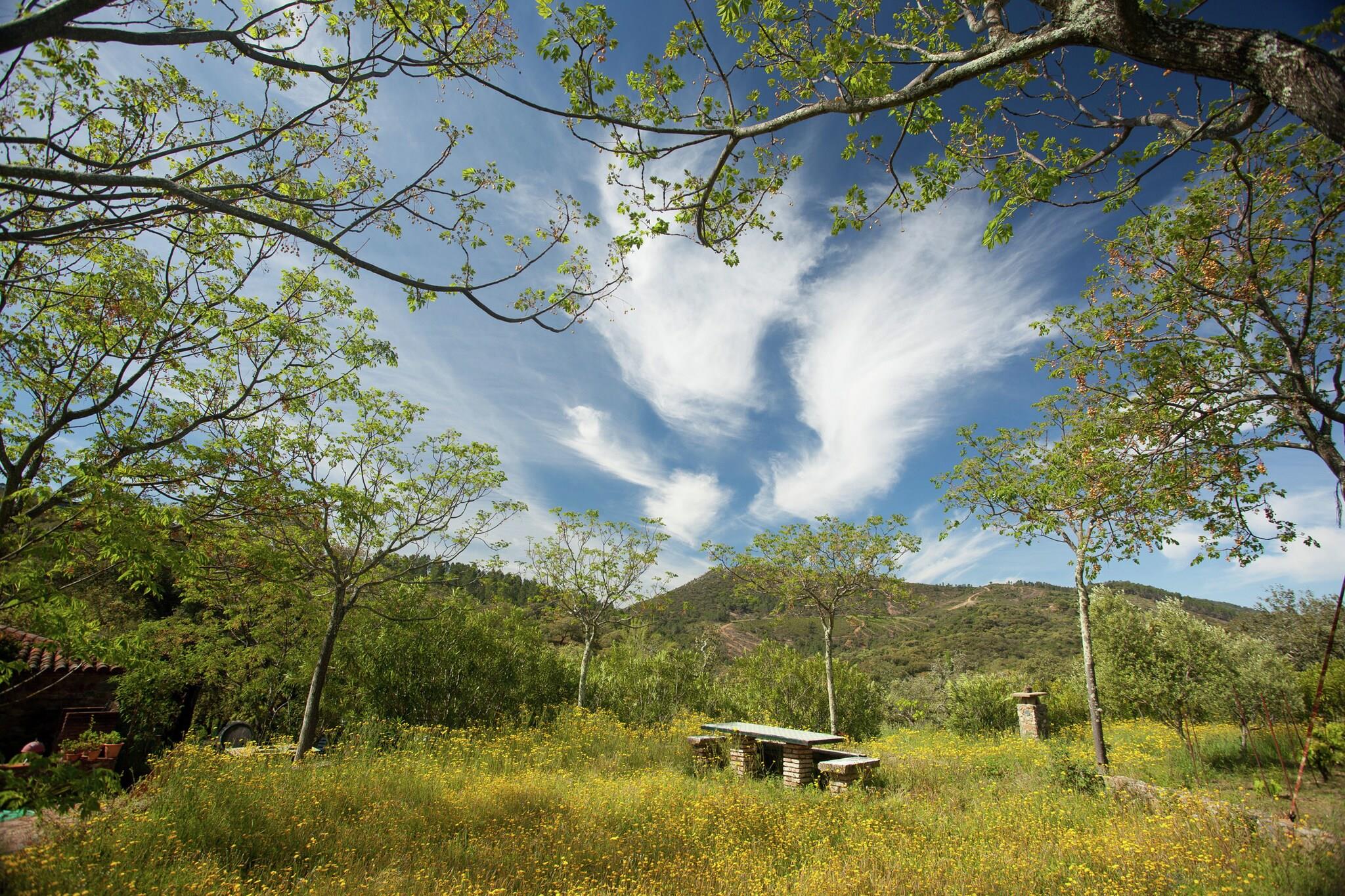 Dette koselige og funksjonelle tilfluktsstedet er gjennomtenkt designet for par som søker ro i privilegerte naturlige omgivelser. Interiøret har en lys, åpen stue og soveromsløsning som tilbyr fredelig utsikt over det omkringliggende landskapet, og blander sømløst rustikk sjarm med moderne komfort. En dobbeltseng fungerer som et avslappende midtpunkt, mens en vedovn skaper en varm og innbydende atmosfære i de kjøligere månedene, supplert av elektrisk radiatoroppvarming og klimaanlegg for klimakontroll året rundt. Kjøkkenet er fullt utstyrt for å gi fullstendig uavhengighet, med en gasskomfyr med fem bluss, en elektrisk stekeovn og et kjøleskap. Gjestene finner alt som trengs for hjemmelagde måltider, inkludert et omfattende utvalg av rustfritt stålredskaper, bestikk og tradisjonelle leirboller som gir et snev av lokal autentisitet til matopplevelsen. Denne kombinasjonen av praktiske fasiliteter og tradisjonell stil gjør huset til et ideelt valg for de som setter pris på bekvemmeligheten av et velutstyrt hjem i et bortgjemt, intimt miljø. Dette er et av de siste uberørte områdene i Europa. På kysten sør for Sierra de Aracena finner du sine pittoreske fiskevær og vakre, fredelige strender. Den travle hovedstaden i Andalusia, Sevilla, ligger så nært at man kan planlegge én eller flere dagsturer til byen under oppholdet i Molino. Vær oppmerksom på at vaskemaskin og tørketrommel er til felles bruk. Hvert hus har ikke sin egen. Merk: Kun katter og ufarlige hunderaser, som definert i spansk lov, er tillatt.