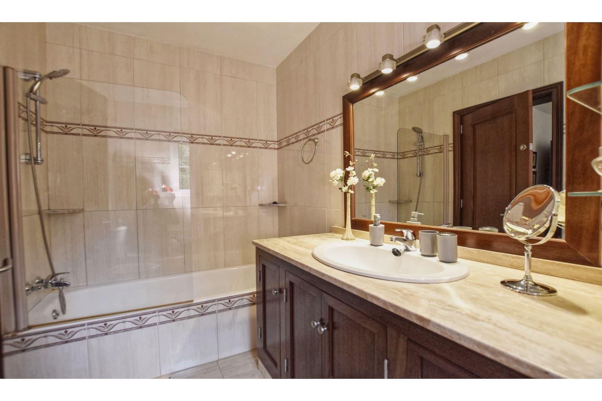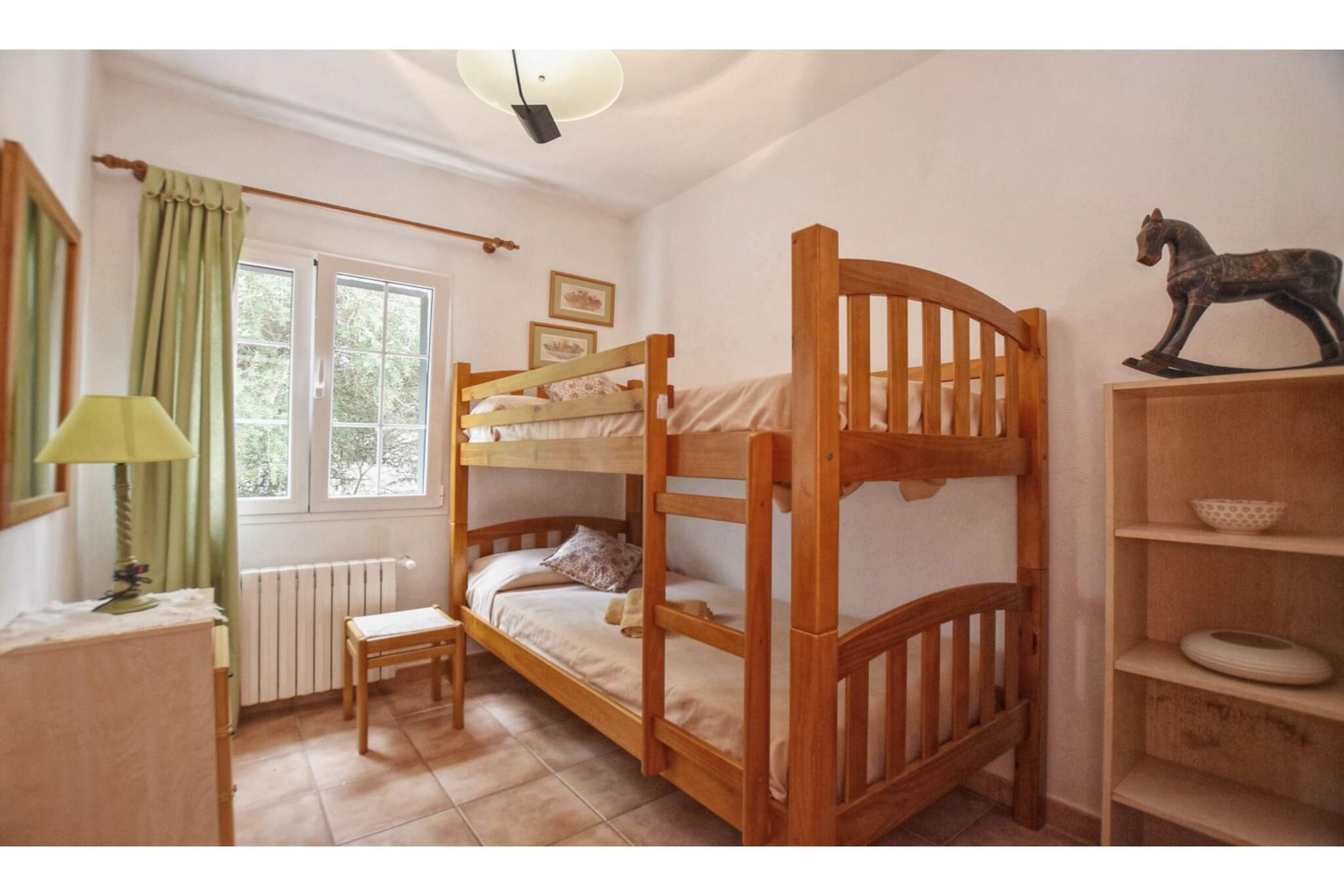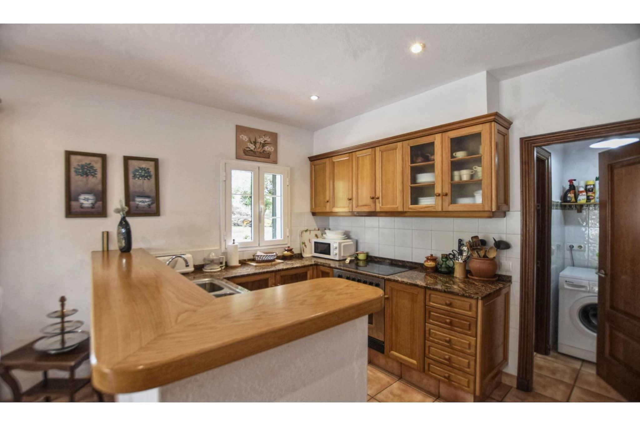 Fredelig hageflukt Denne nylig restaurerte villaen i Alaior tilbyr et rolig tilfluktssted for opptil seks gjester. Med tre soverom og et gjennomtenkt utformet oppholdsrom, er det ideelt for familier eller små grupper som søker komfort og ro. Gå ut til et privat svømmebasseng eller slapp av i den frodige hagen, hvor fluktstoler og en parasoll inviterer deg til å slappe av under middelhavssolen. Interiøret er lyst og praktisk, med klimaanlegg og oppvarming som sørger for komfort hele året. Praktisk lokal tilgang Villaen er perfekt posisjonert for daglige behov og lokale opplevelser. Fyll opp nødvendigheter bare 2 km unna, eller nyt tradisjonell spansk mat på nærliggende restauranter kun 4 km fra dørstokken din. For sol og sand er stranden en kort kjøretur på 6 km, mens eventyrlystne besøkende kan utforske vannsport 8 km unna. Tennisbaner og en golfbane er også innen rekkevidde, og tilbyr aktive sysler for hver gjest. Hjemmekomfort inkludert Inne finner du et fullt utstyrt kjøkken, spiseplasser og koselige sittegrupper som er perfekte for felles måltider og avslapning. To bad pluss en utendørs dusj gjør familieopphold praktisk, mens privat parkering gir ekstra enkelhet. Villaens inngjerdede, overbygde terrasse og hage gir trygge og innbydende rom for å nyte stille stunder eller samles. Merk: Av hensyn til roen er villaen ikke tilgjengelig for grupper under 25 år, og kjæledyr er ikke tillatt.