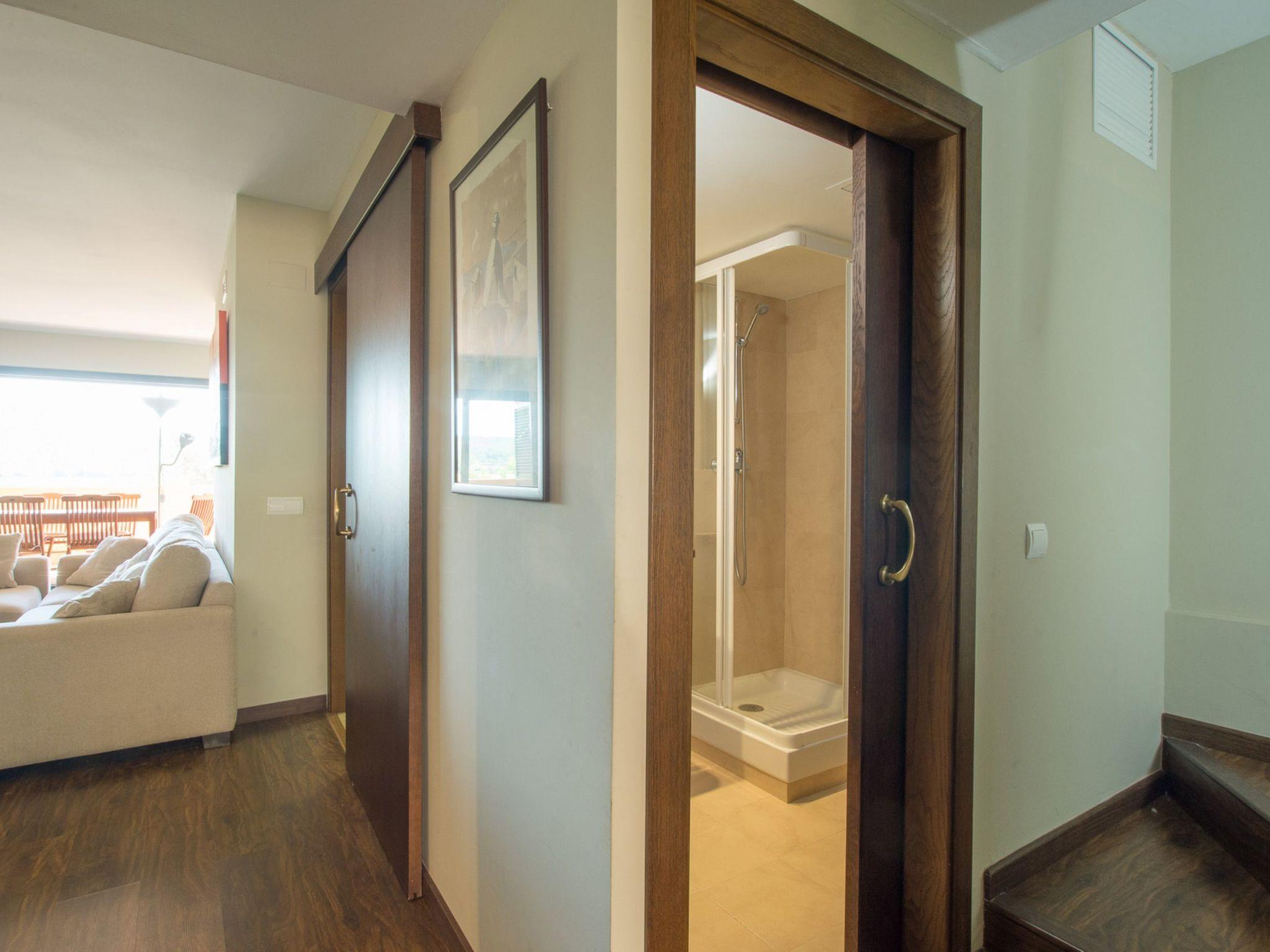Apartment in the village of Albons, Costa Brava, with views, pool, Wi-Fi internet and parking. 4 km from the Empúries-L'Escala beaches. Ideal for family holidays with children in Albons, L'Escala and the Costa Brava.Costabravaforrent Segalar 3 is a lovely duplex apartment with panoramic views of the countryside and Mount Segalar, located in the rural village of Albons, 4 km from the beaches of L'Escala, Costa Brava.Newly built apartment, completely exterior and bright, in the first floor, enjoy all the features needed for a wonderful holiday with family and children.The apartment size is 90 m² for up to 6 people. Provides, among other amenities, air conditioning, terrace, solarium, communal garden (1,000 m2), saline clorination swimming pool (16x8) and private parking.Costabravaforrent Segalar 3 features three bedrooms, two bathrooms, kitchen, living room, dining room, a terrace of 10 m² and 40 m² sun terrace overlooking the countryside (afternoon sun).On the duplex floor there is a bedroom with a double bed, a bedroom with two bunk beds and a full bathroom with a bath and solarium.On the ground floor there is a bedroom with two bunk beds and a bathroom with shower, plus kitchen, living room, dining room and terrace.The kitchen is fully equipped, including dishwasher.The terraces, lounge and dining room are very well equipped (see photos).