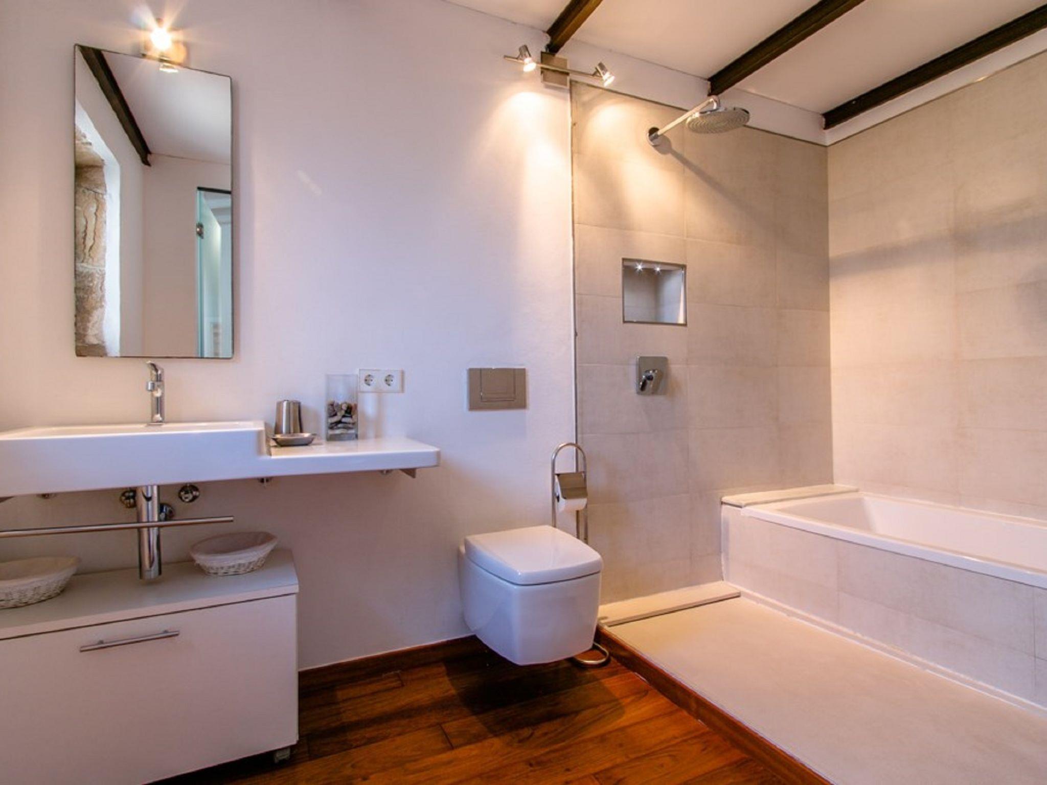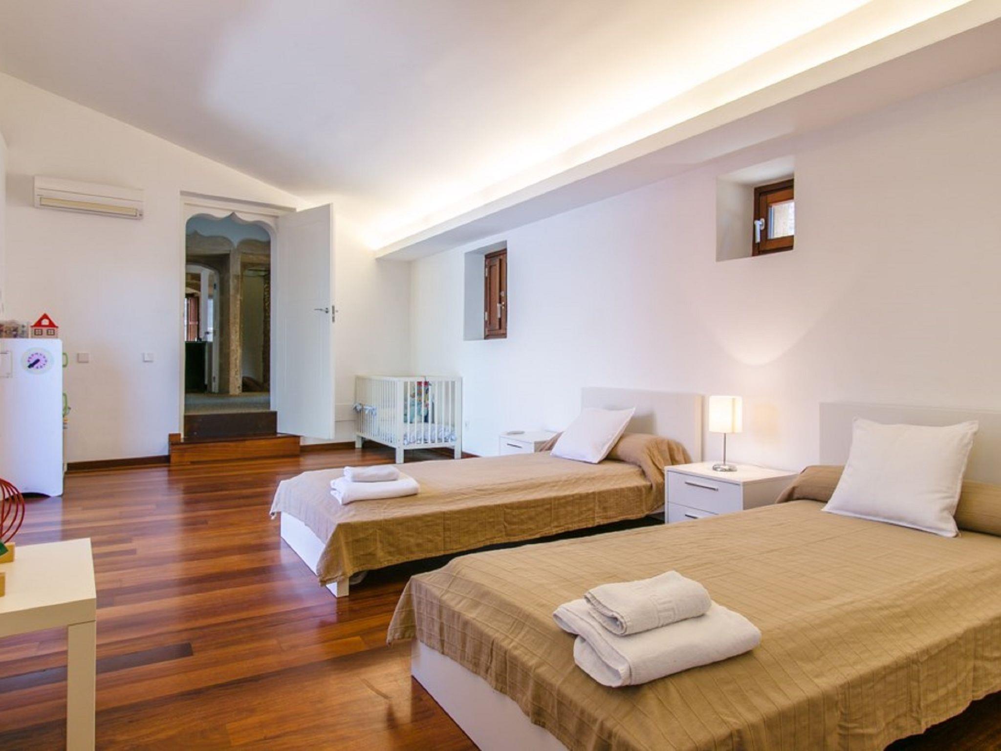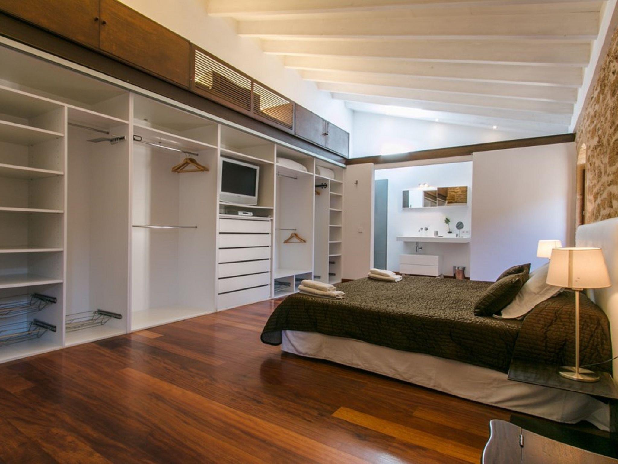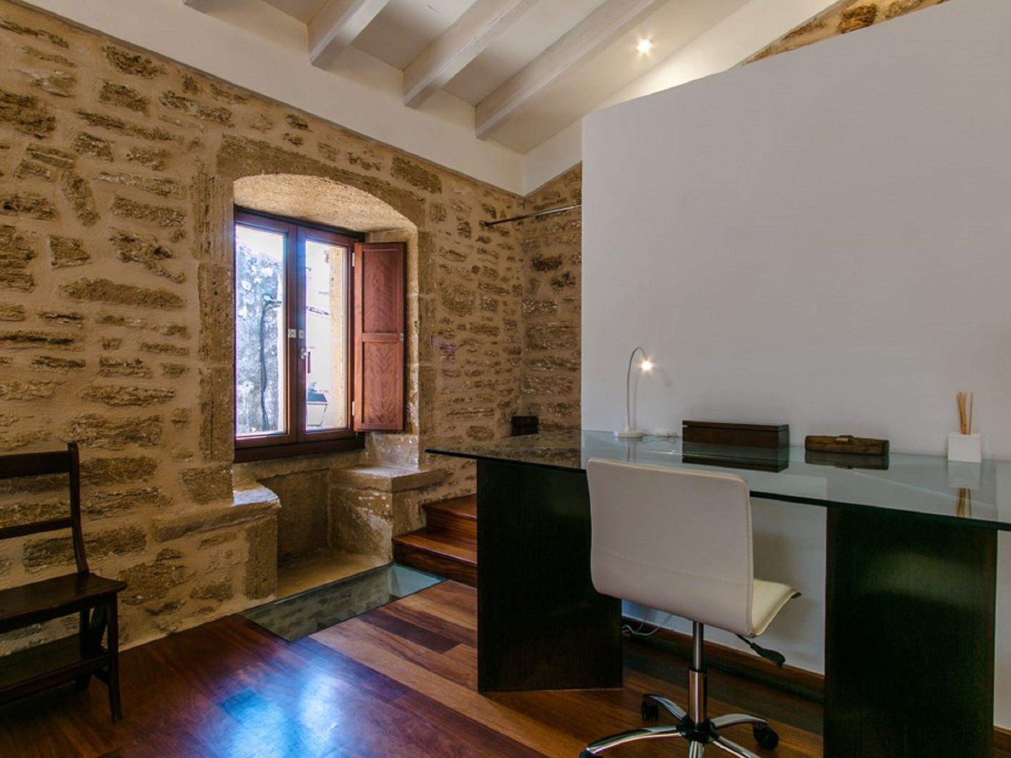 Alcudia: Very beautiful, rustic, historical house "Sa Muralla", 2 storeys. In the resort Alcudia, 700 m from the sea, 700 m from the beach. Private: beautiful, well-kept garden, courtyard, swimming pool angular (4 x 3 m, depth 190 cm, seasonal availability: 01.Apr. - 31.Oct.). Outdoor shower, arbour, terrace, garden furniture, barbecue. In the house: WiFi, central heating system, air conditioning, washing machine, tumble dryer. Bus stop 600 m, sandy beach "Playa del Corral den Bennasar" 1 km pebble beach "Es Morer Vermell" 2.1 km. Sports harbour 1.6 km, marina 1.6 km, golf course (18 hole) 1.9 km. Nearby attractions: Alcudia Old Town 600 m, Alcudia Historical Centre 600 m, Hidropark Puerto Alcudia 1.8 km. Please note: suitable for families, suitable for seniors baby equipment (included). Object suitable for 6 adults groups of teenagers on request only. Loading and unloading of baggage is possible at the holiday house. Airfield 60 km from the property.