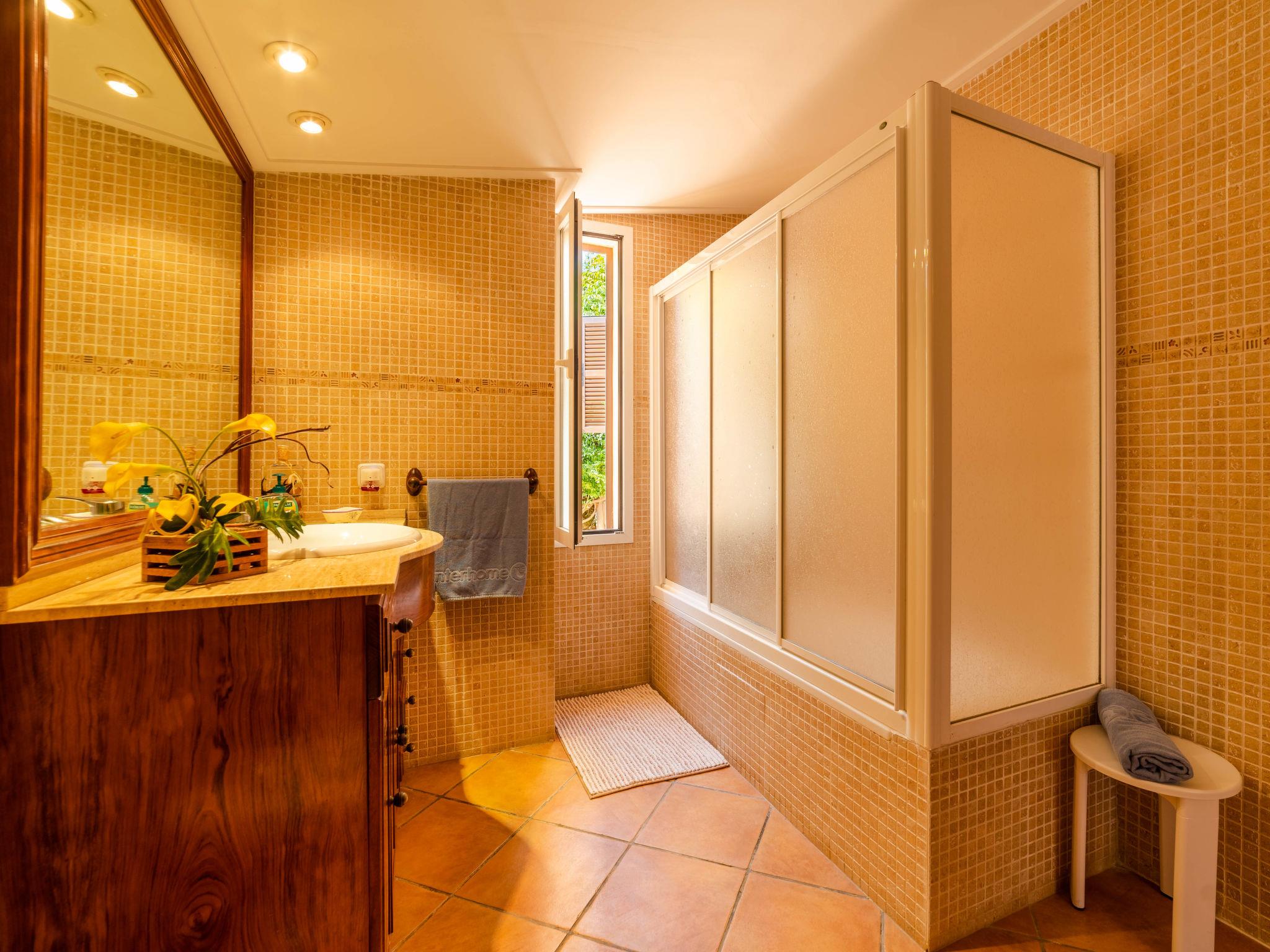 Alcúdia: Beautiful, cosy, comfortable farm estate "Can Josepot", 2 storeys, surrounded by fields. Outside the resort, 500 m from the centre of Alcúdia, in a quiet, sunny position, 2 km from the edge of the forest, 1.5 km from the sea, 1.5 km from the beach, in the countryside. Private: natural state property, well-kept garden with wildlife garden and flowers, orchard, lawn for sunbathing, swimming pool angular (9 x 5 m, depth 100 - 190 cm, seasonal availability: 01.May. - 30.Oct.). Outdoor shower, patio (100 m2), arbour, pergola, garden furniture, barbecue. In the house: internet access, WiFi, air conditioning, burglar alarm system, washing machine. Parking (for 3 cars) at the house on the premises. Shop, supermarket, bar, bakery 200 m, café 200 m, 10 minute walk to the centre, bus stop 1 km, sandy beach "Playa de Port Alcúdia" 1.5 km, rocky beach "Es Mal Pas" 2.5 km. Sports harbour 2.5 km, golf course (18 hole) 3.5 km. Nearby attractions: Ciudad romana de Pol.lentia 1.5 km, Teatro Romano/Auditorio 1.5 km, Club Náutico / Pesquero 1.5 km, Parque Acuatico Hidropark 2 km. Hiking paths: Sa Talaia d'Alcúdia, Puig de Sant Martí. Please note: suitable for families, suitable for seniors baby equipment on request (included). Object suitable for 6 adults. The owner does not accept any youth groups. Loading and unloading of baggage is possible at the holiday house. Airfield 60 km from the property.