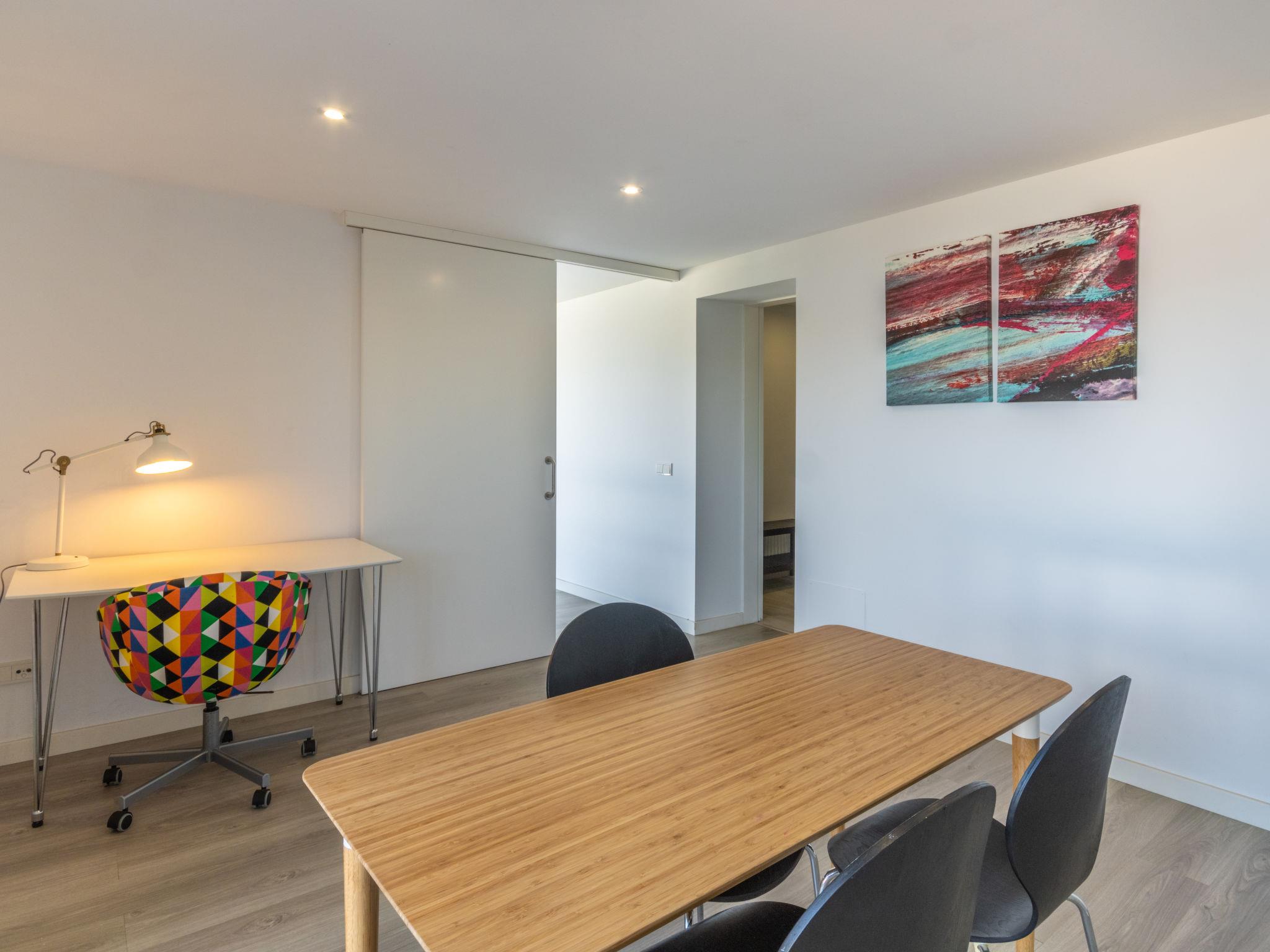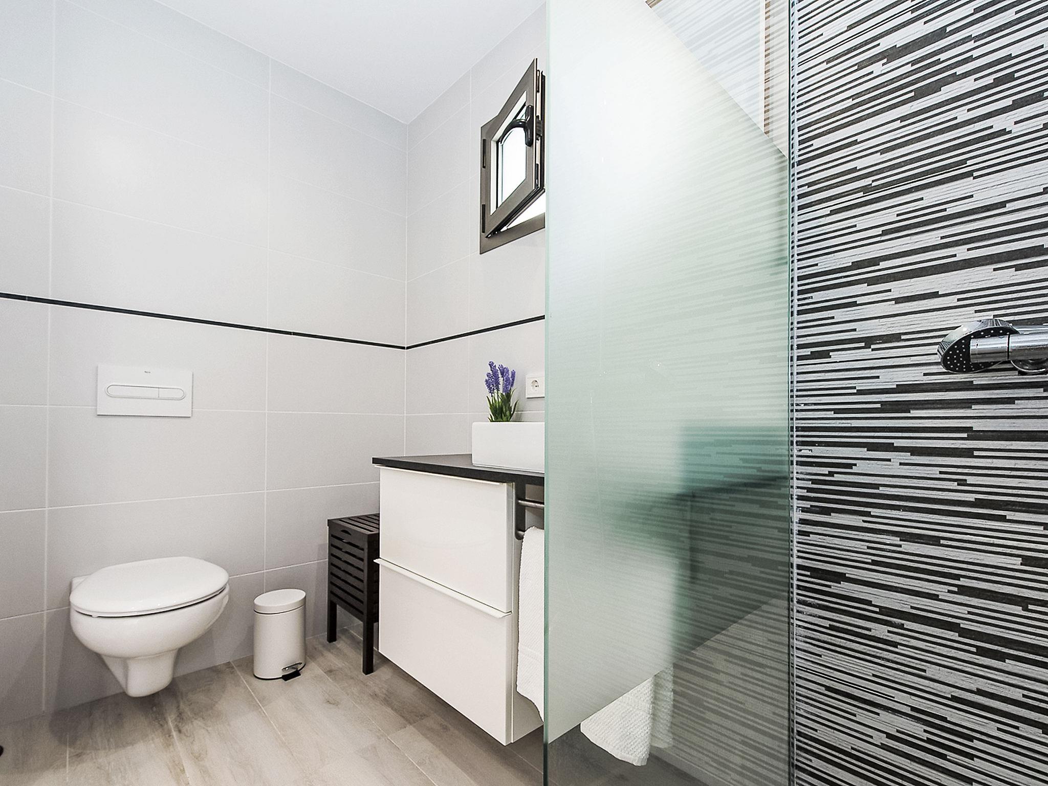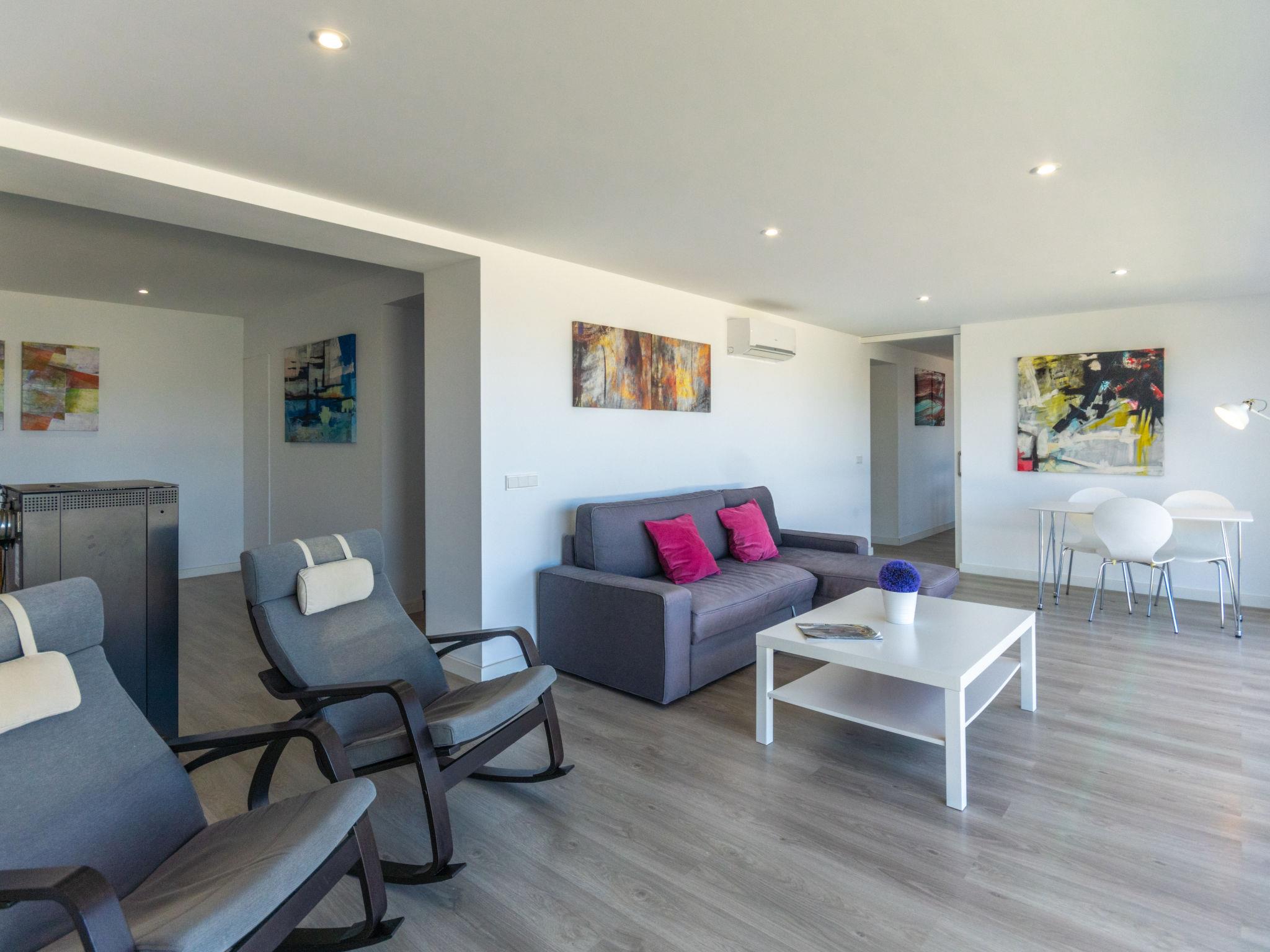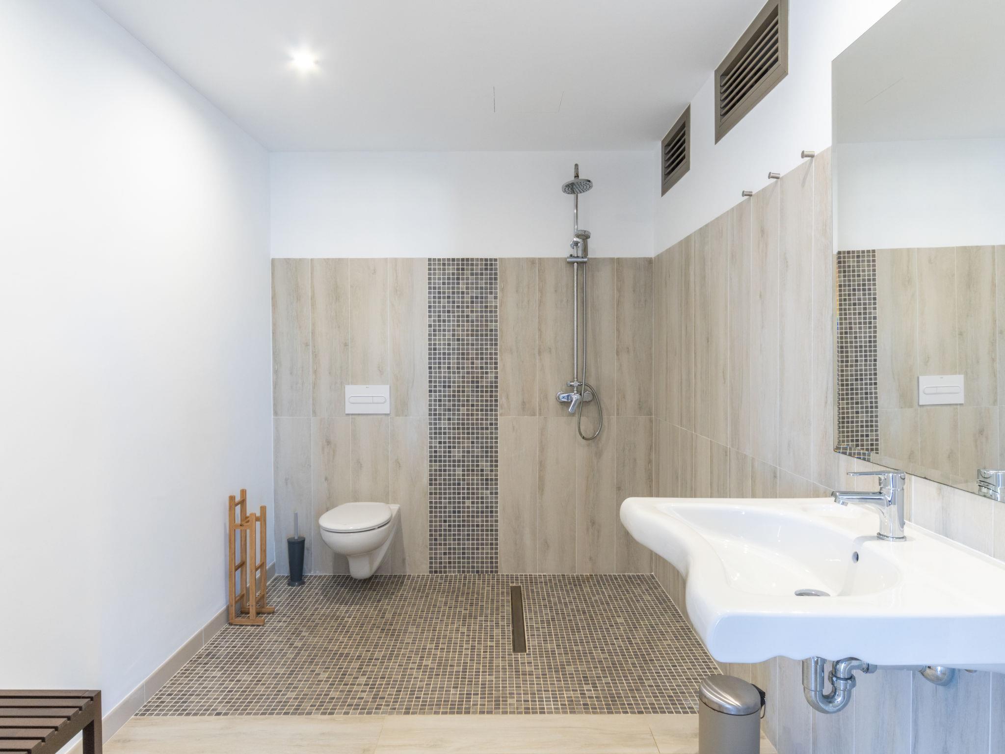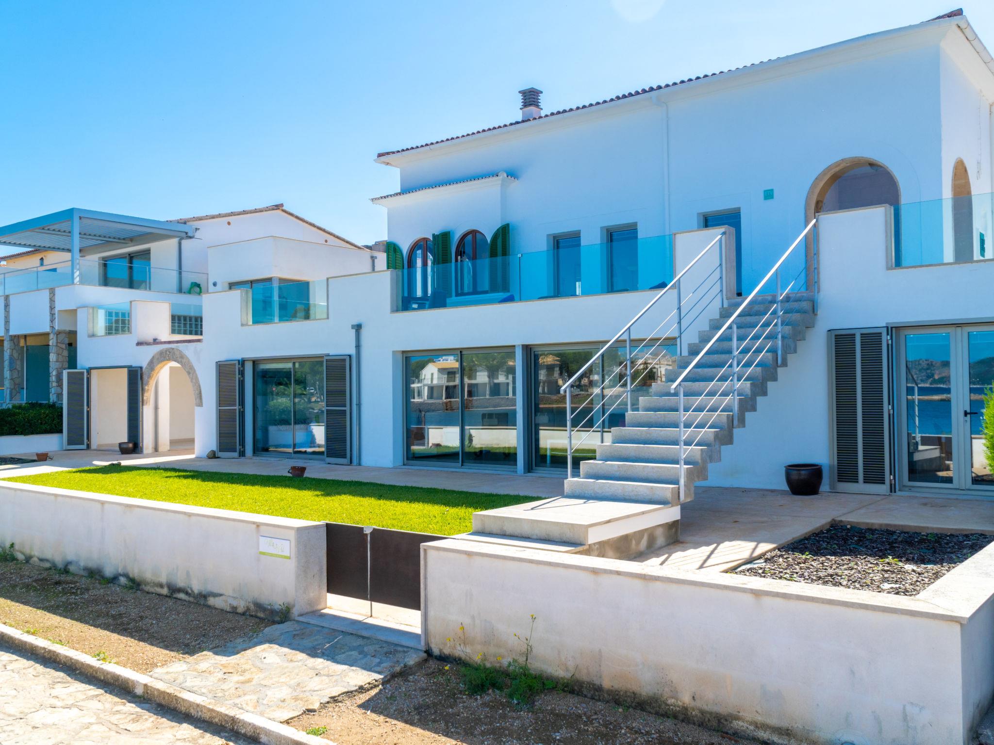 "Can Verd", 9-room villa 300 m2 on 2 levels. Object suitable for 10 adults. Fully renovated in 2016, very comfortable and cosy furnishings: living/dining room with panoramic window with dining table, satellite TV, digital TV, flat screen, air conditioning and forced-air heating. Exit to the terrace. 1 large double bedroom with curtain with 1 french bed (135 cm, length 190 cm). 1 double bedroom with 2 beds (90 cm, length 200 cm), air conditioning and forced-air heating. 1 double bedroom with 2 beds (90 cm, length 200 cm). 1 double bedroom with sliding door curtain panoramic window with 1 sofabed and 1 french bed (150 cm, length 200 cm), bath/shower/WC, TV, satellite TV, air conditioning and forced-air heating. Exit to the terrace. Kitchen 15 m2 (4 hot plates, oven, dishwasher, microwave, freezer, electric coffee machine) with dining table. Exit to the terrace. 2 Baths/showers/WC. On the lower ground floor: lounge with 1 sofabed, dining table and air conditioning. Exit to the patio. Office with panoramic window. Exit to the patio. 1 double bedroom with 1 french bed (150 cm, length 200 cm), bath/shower/WC and air conditioning. Exit to the patio. Bath/shower/WC. Large patio, porch. Terrace furniture, balcony furniture, barbecue, deck chairs, covered balcony, sitting area. Very beautiful panoramic view of the sea, the mountains and the bay. Facilities: washing machine, dryer, safe, iron, children's high chair, baby cot for up to 2 year olds, hair dryer. Internet (WiFi, free). At the house. Please note: suitable for families one double bedroom is outside the apartment. Fire extinguisher. ETV/55365 // Reg. Nr.: ESFCTU00000704300008406200000000000000000000ETV/55365