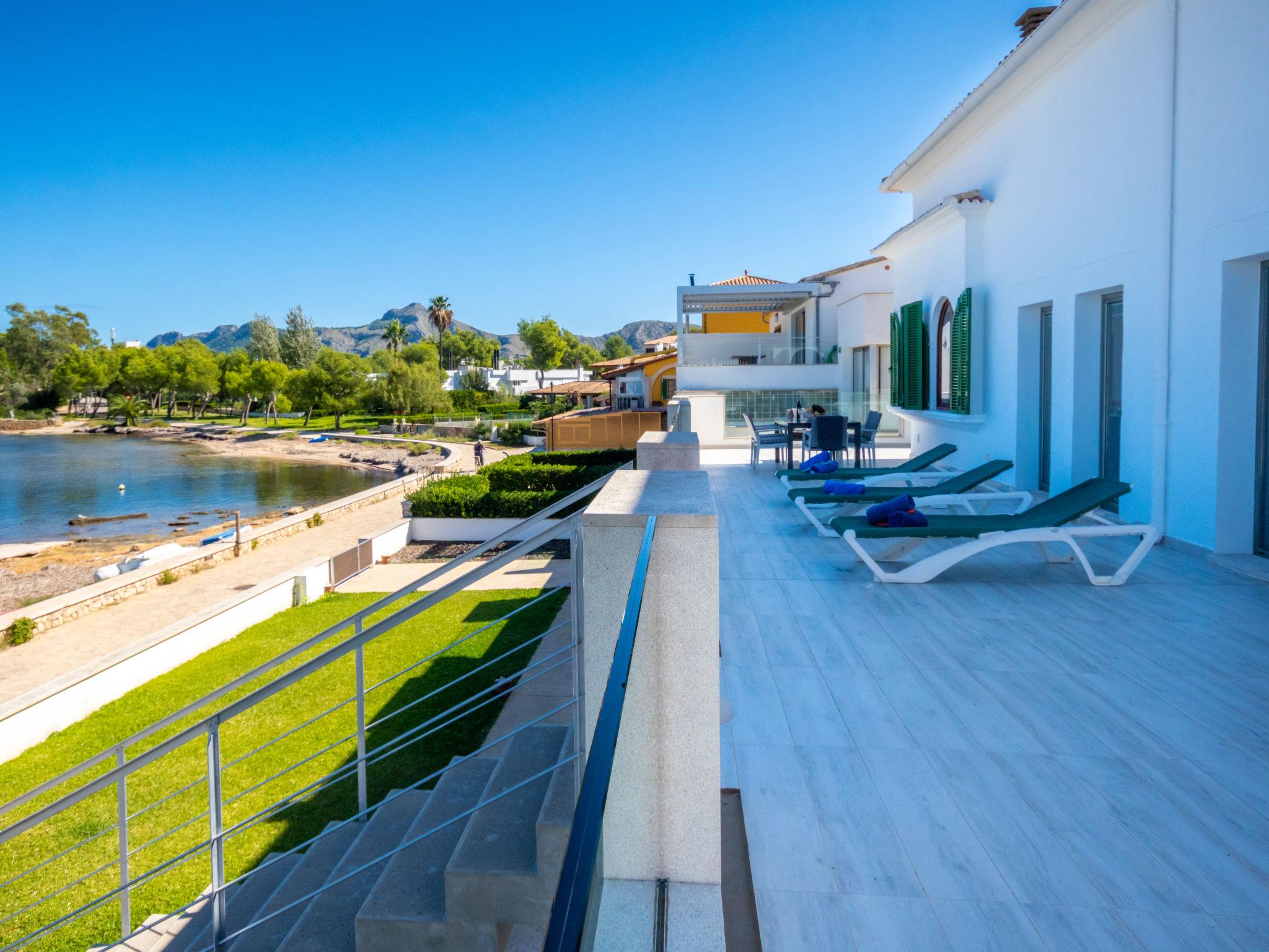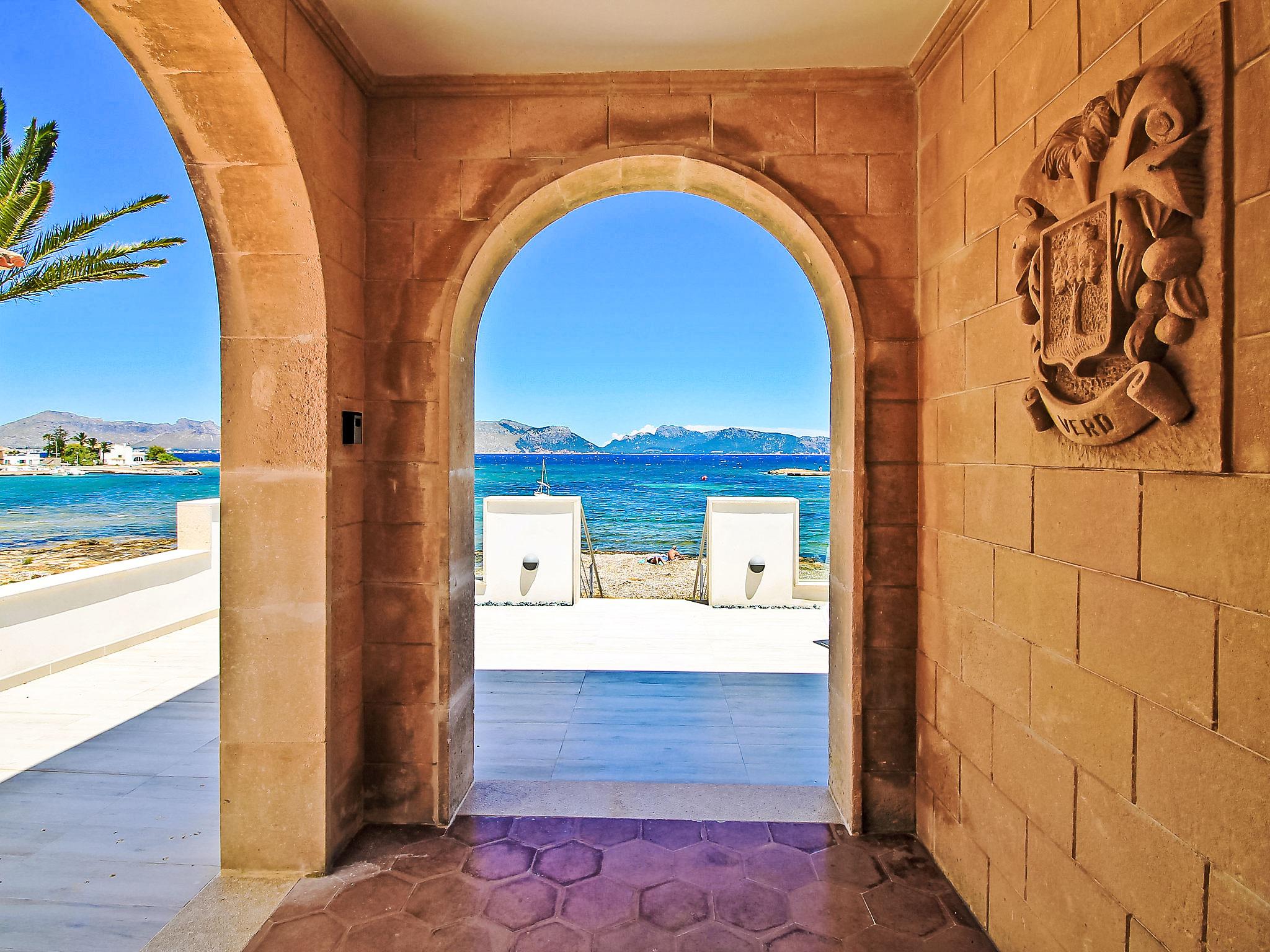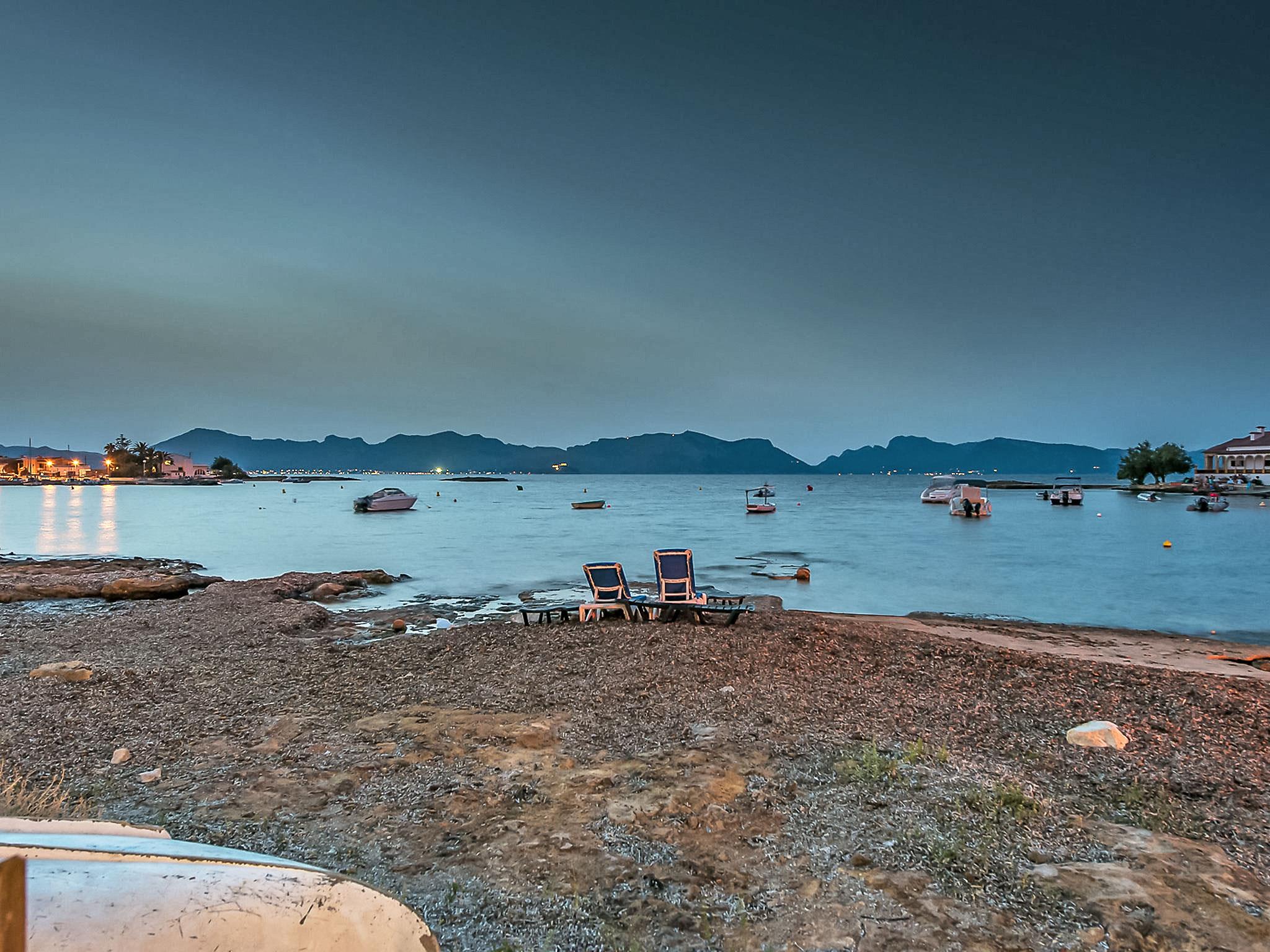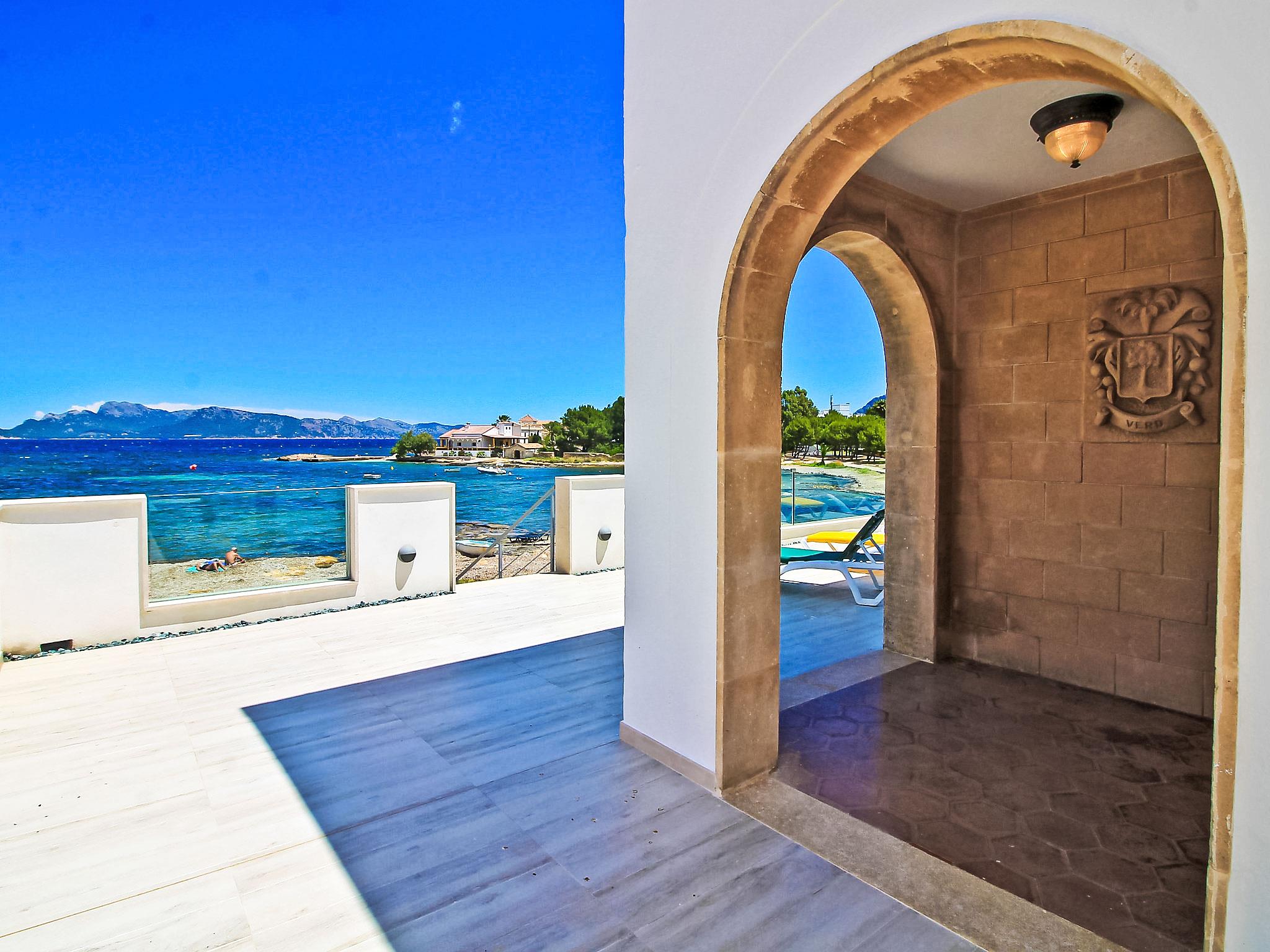 Alcúdia, Es Barcarés: Very child friendly, beautiful villa "Can Verd", 2 storeys. In the district of Es Barcarés, in the resort 4 km from the centre of Alcúdia, in a quiet position residential area (villas), traffic calmed area, 2 km from the edge of the forest, 5 m from the sea, 5 m from the beach, direct access to the beach, in a pedestrian area. Private: beautiful terraced garden with lawn, natural garden. Outdoor shower, table tennis, patio, arbour, pergola, garden furniture, barbecue. In the house: lounge, internet access, WiFi, fitness room, table tennis, playroom, storage room for bicycles, air conditioning, laundry, washing machine, tumble dryer, drying room. Parking, public car park, public parking on the road. Shop 2 km, grocery 700 m, supermarket 2 km, restaurant 50 m, bar, bakery 2 km, café, bicycle rental 2 km, 25 minute walk to the centre, bus stop 700 m, sandy beach 700 m, rocky beach 5 m, diving center 4 km, outdoor swimming pool 6 km, swimming bay 150 m, public bathing area 55 m. Sports harbour 6 km, marina 5 km, golf course (18 hole) 5 km, surf school 4 km, sailing school 6 km, tennis 5 km, riding stable 6 km, sports centre 6 km, children's playground 700 m. Please note: suitable for families, suitable for seniors. Object suitable for 10 adults groups of teenagers on request only. The owner does not accept any youth groups. Neighbourhood highly sensitive to noise. Quietness and good behaviour expected.