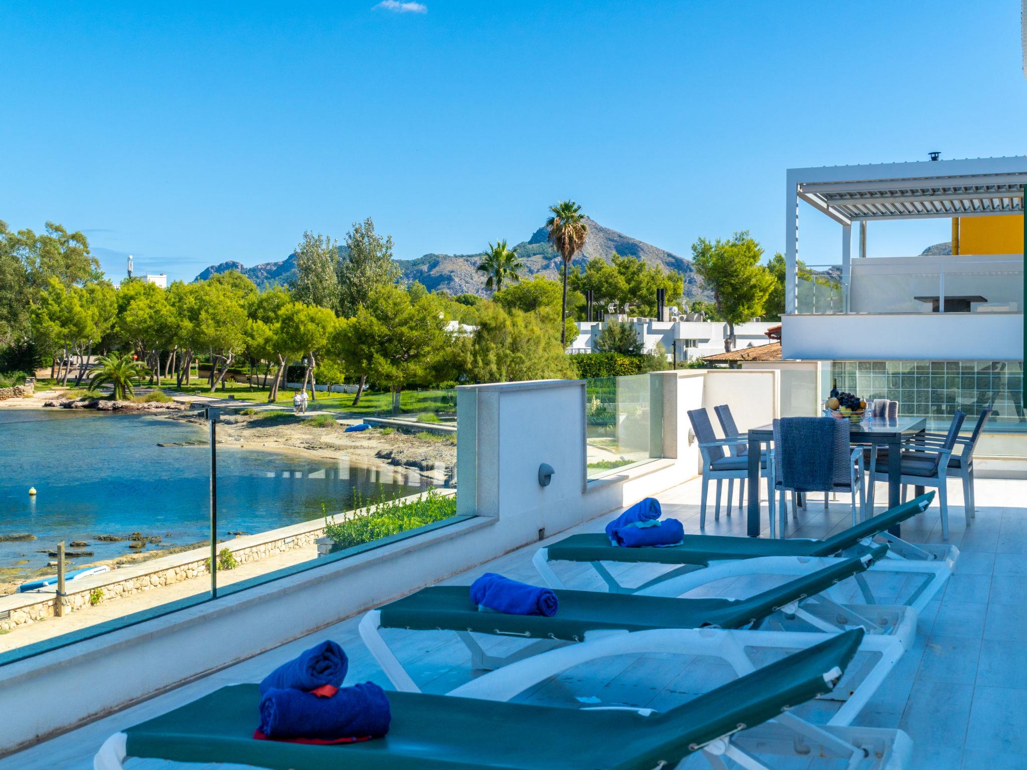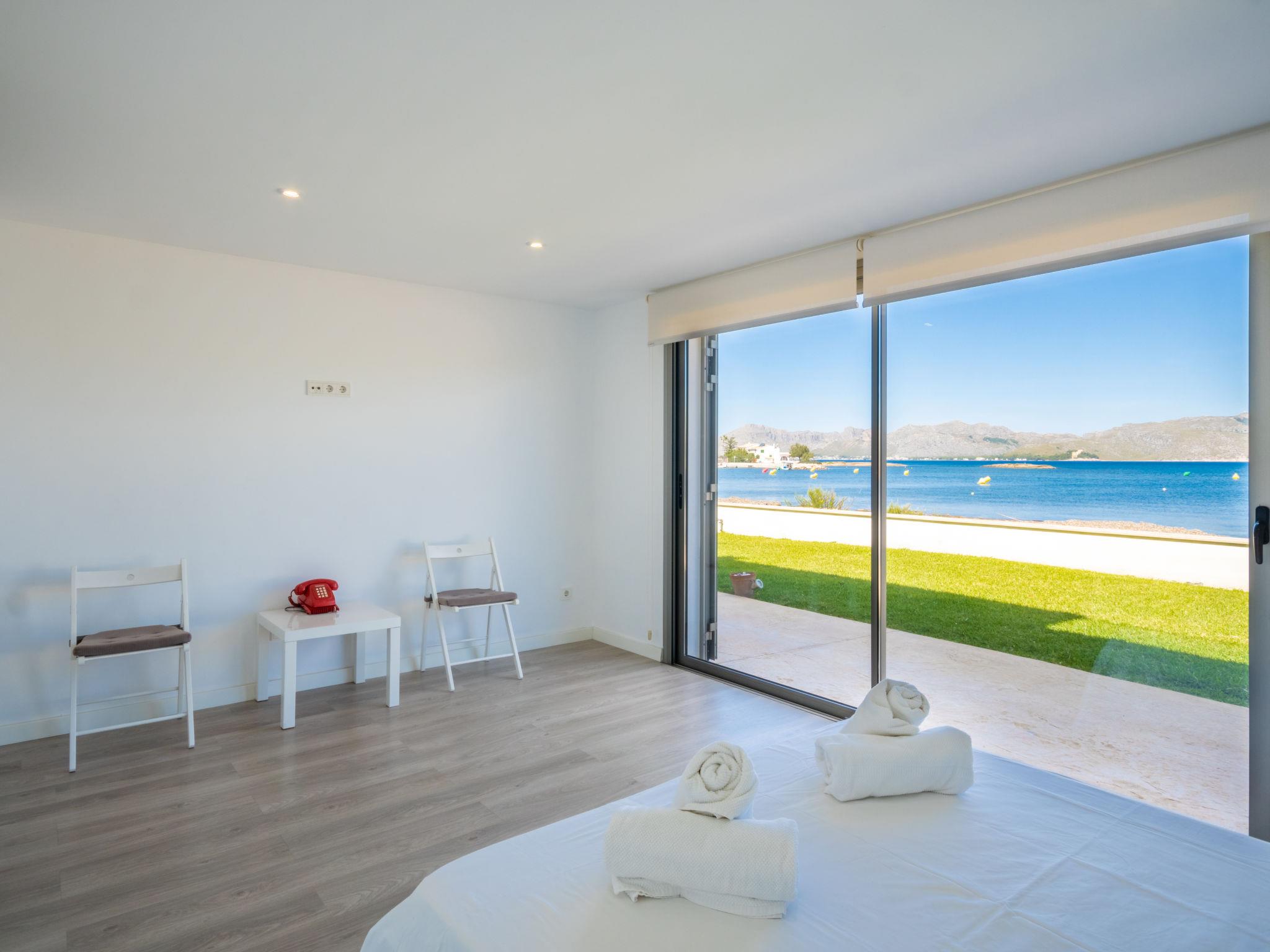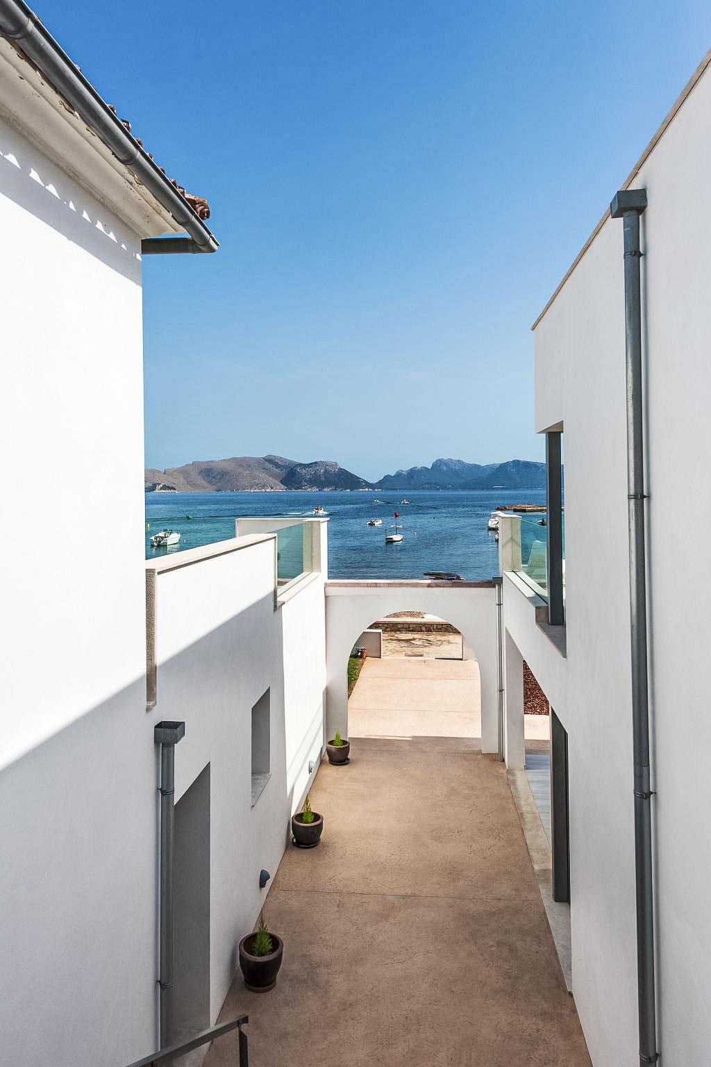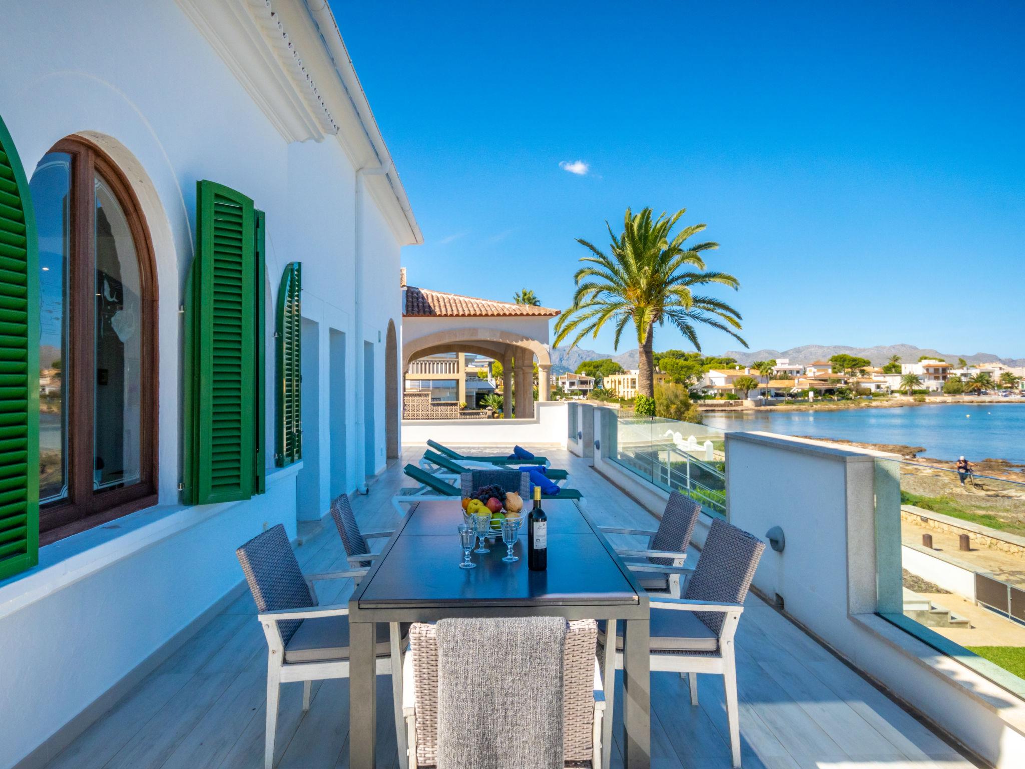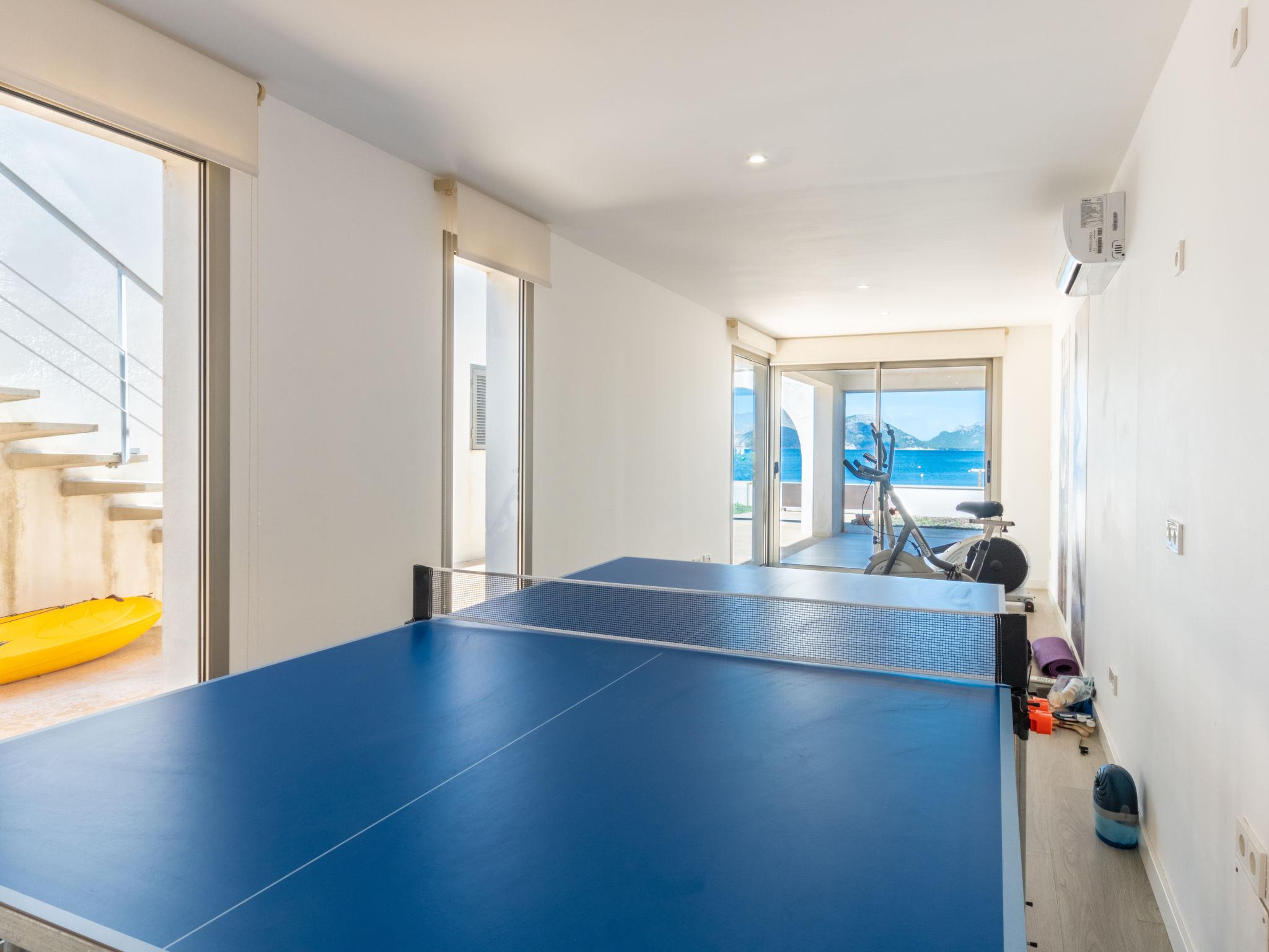 Alcúdia, Es Barcarés: Very child friendly, beautiful villa "Can Verd", 2 storeys. In the district of Es Barcarés, in the resort 4 km from the centre of Alcúdia, in a quiet position residential area (villas), traffic calmed area, 2 km from the edge of the forest, 5 m from the sea, 5 m from the beach, direct access to the beach, in a pedestrian area. Private: beautiful terraced garden with lawn, natural garden. Outdoor shower, table tennis, patio, arbour, pergola, garden furniture, barbecue. In the house: lounge, internet access, WiFi, fitness room, table tennis, playroom, storage room for bicycles, air conditioning, laundry, washing machine, tumble dryer, drying room. Parking, public car park, public parking on the road. Shop 2 km, grocery 700 m, supermarket 2 km, restaurant 50 m, bar, bakery 2 km, café, bicycle rental 2 km, 25 minute walk to the centre, bus stop 700 m, sandy beach 700 m, rocky beach 5 m, diving center 4 km, outdoor swimming pool 6 km, swimming bay 150 m, public bathing area 55 m. Sports harbour 6 km, marina 5 km, golf course (18 hole) 5 km, surf school 4 km, sailing school 6 km, tennis 5 km, riding stable 6 km, sports centre 6 km, children's playground 700 m. Please note: suitable for families, suitable for seniors. Object suitable for 10 adults groups of teenagers on request only. The owner does not accept any youth groups. Neighbourhood highly sensitive to noise. Quietness and good behaviour expected.