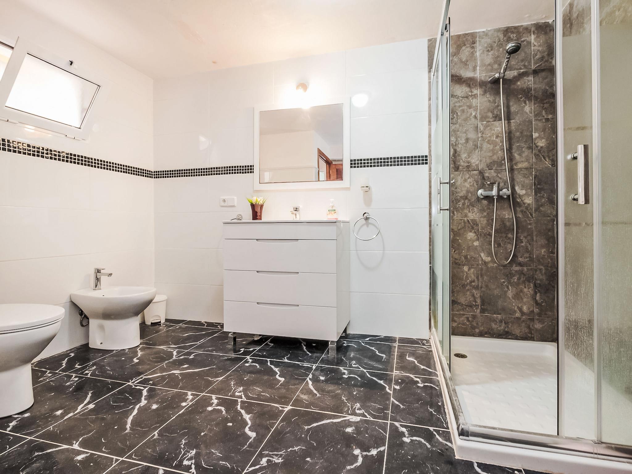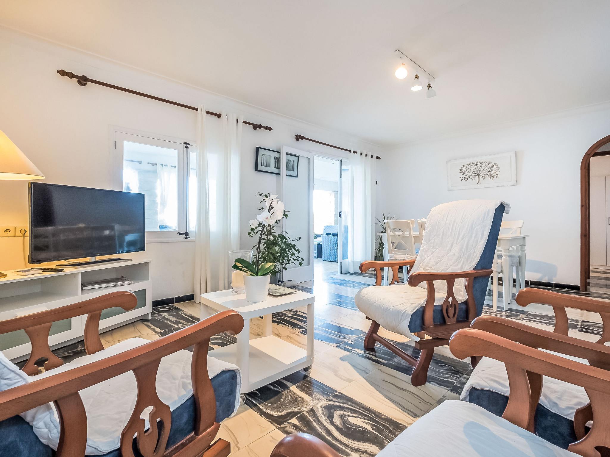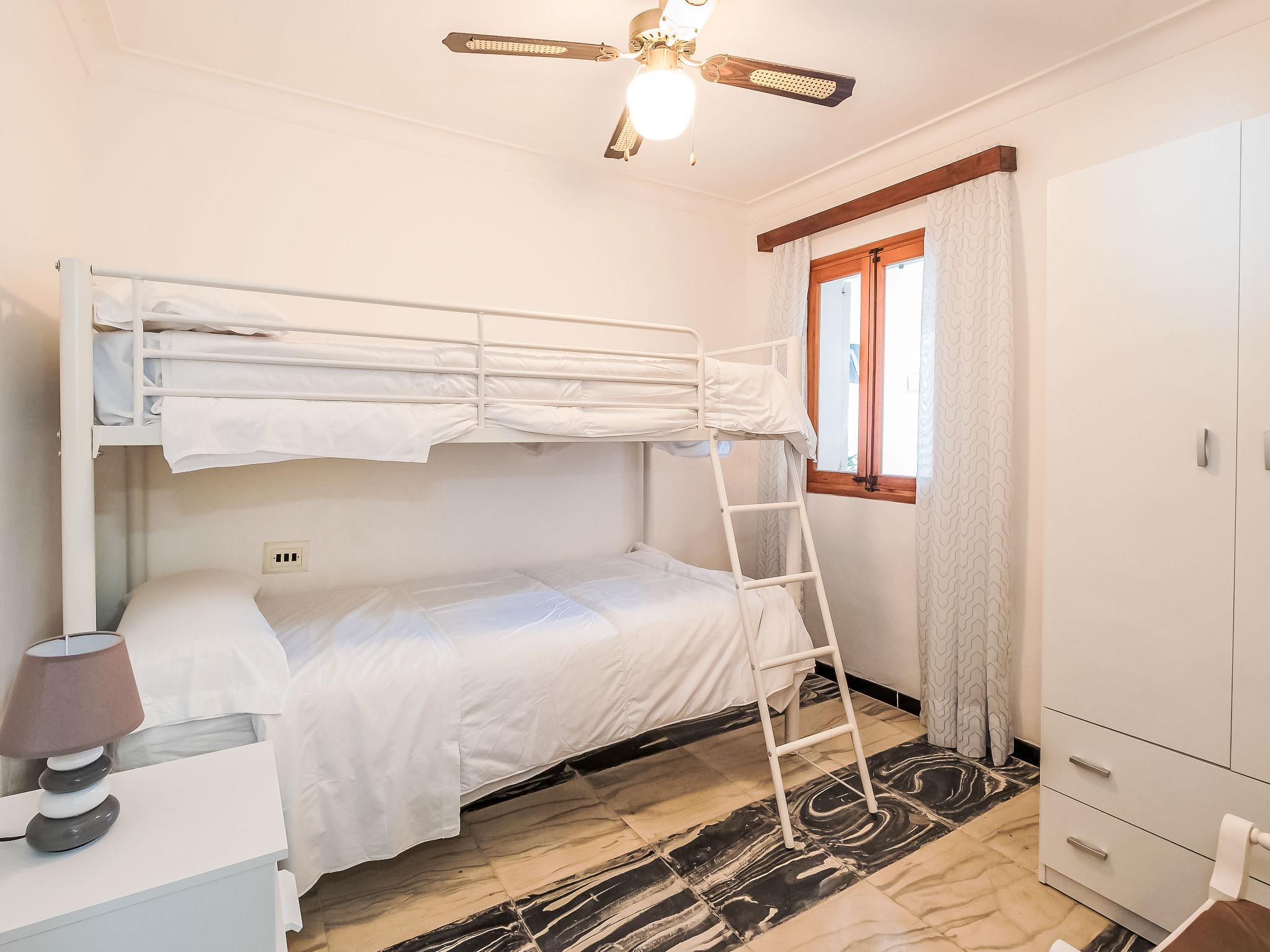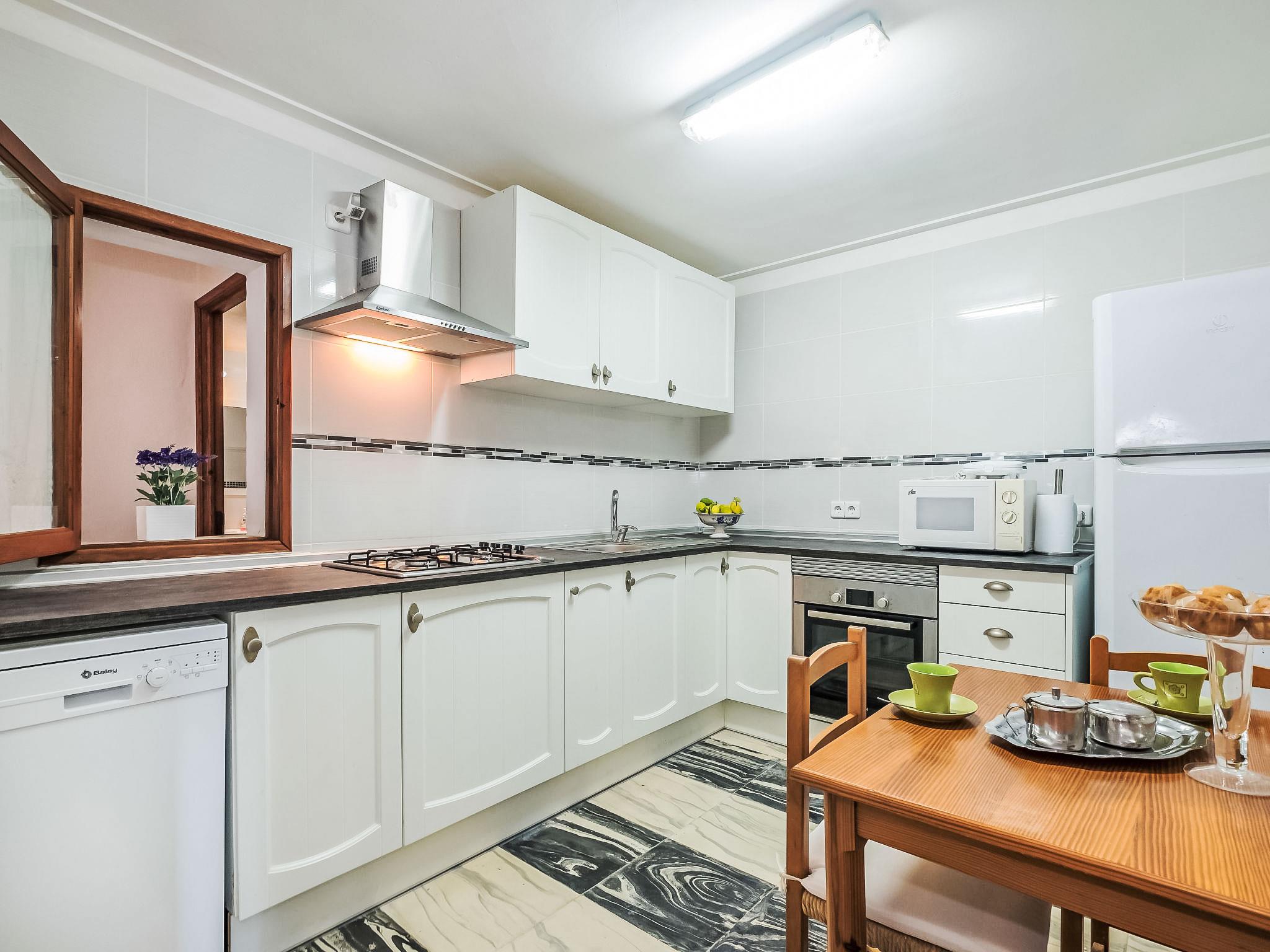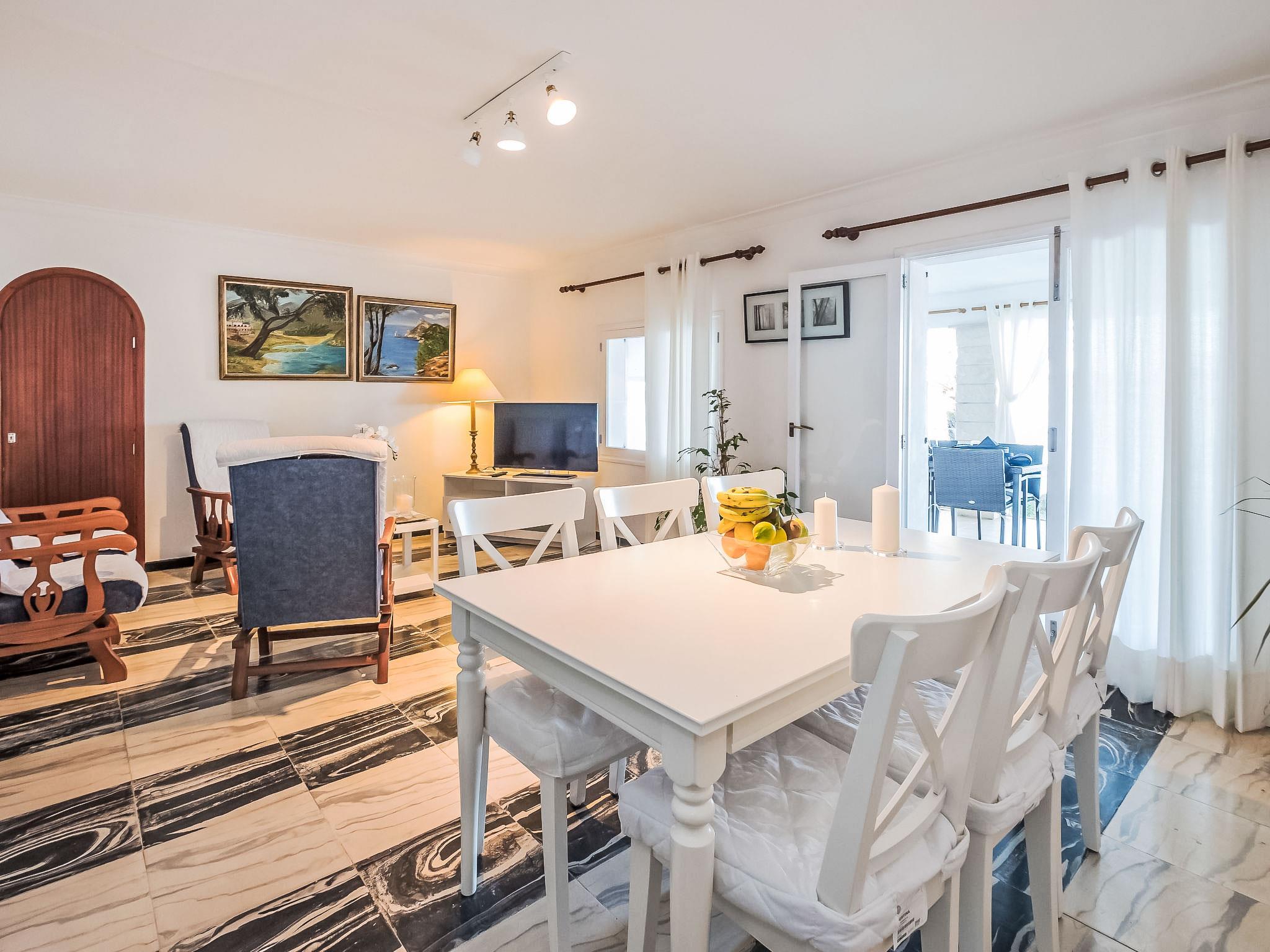 "Voramar", 4-room apartment 110 m2, on the upper ground floor. Object suitable for 6 adults. Very practical and cosy furnishings: living/dining room with panoramic window with dining table, TV, flat screen, air conditioning and forced-air heating. Exit to the terrace. 1 large double bedroom with panoramic window with 1 french bed and fan. 1 double bedroom with 1 french bed. Exit to the terrace. 1 double bedroom with 1 x 2 bunk beds (90 cm). Kitchen-/living room (oven, dishwasher, 3 ceramic glass hob hotplates, toaster, kettle, microwave, freezer, electric coffee machine) with dining table. 2 Baths/showers/WC. Large terrace, small terrace, porch. Terrace furniture, balcony furniture, covered balcony. Marvellous view of the sea, the mountains and the bay. Facilities: washing machine, iron, hair dryer. Internet (WiFi, free). Suitable for families. ETVPL12736 // Reg. Nr.: ESFCTU00000704300010671900000000000000000ETVPL/127361