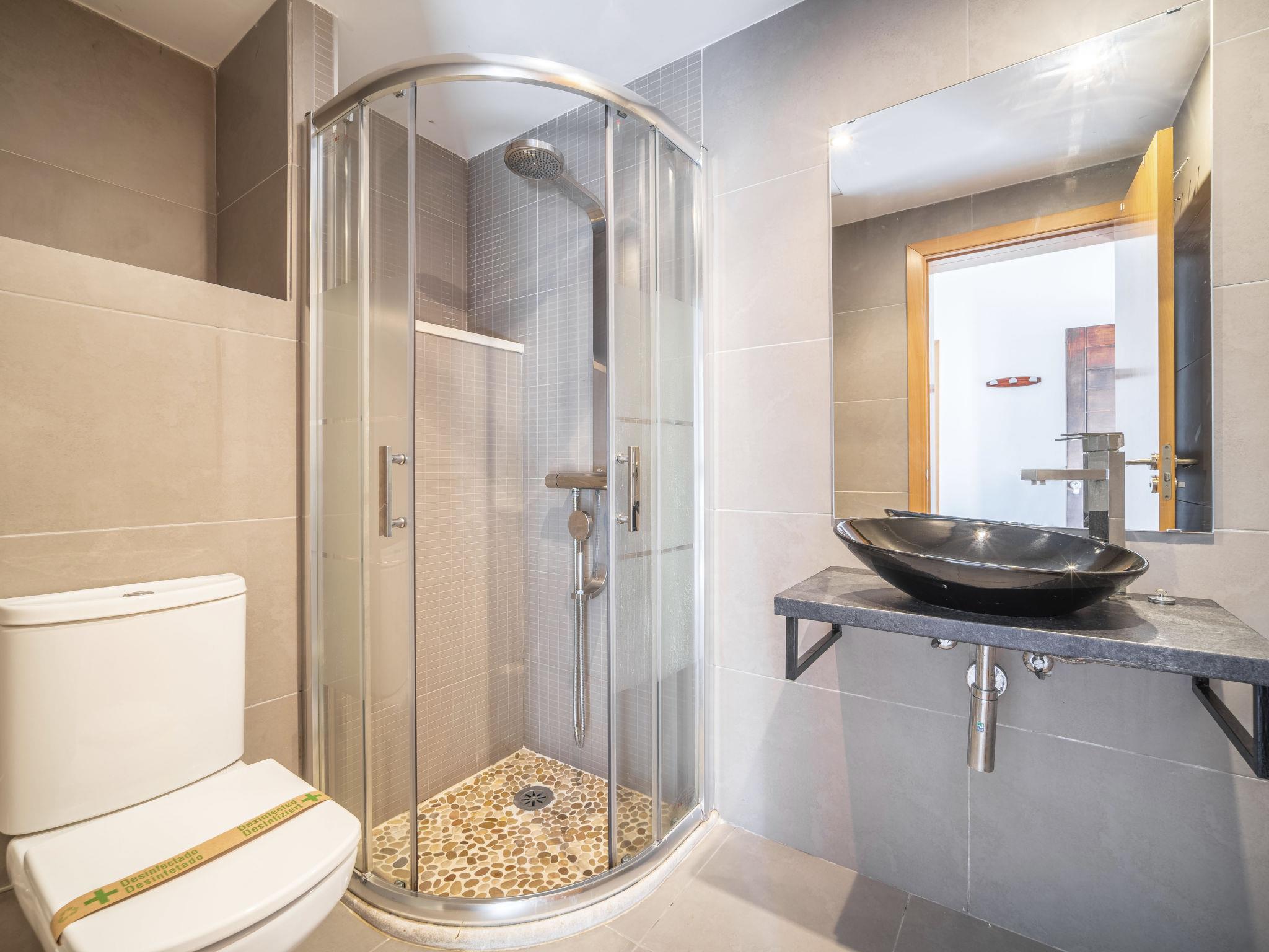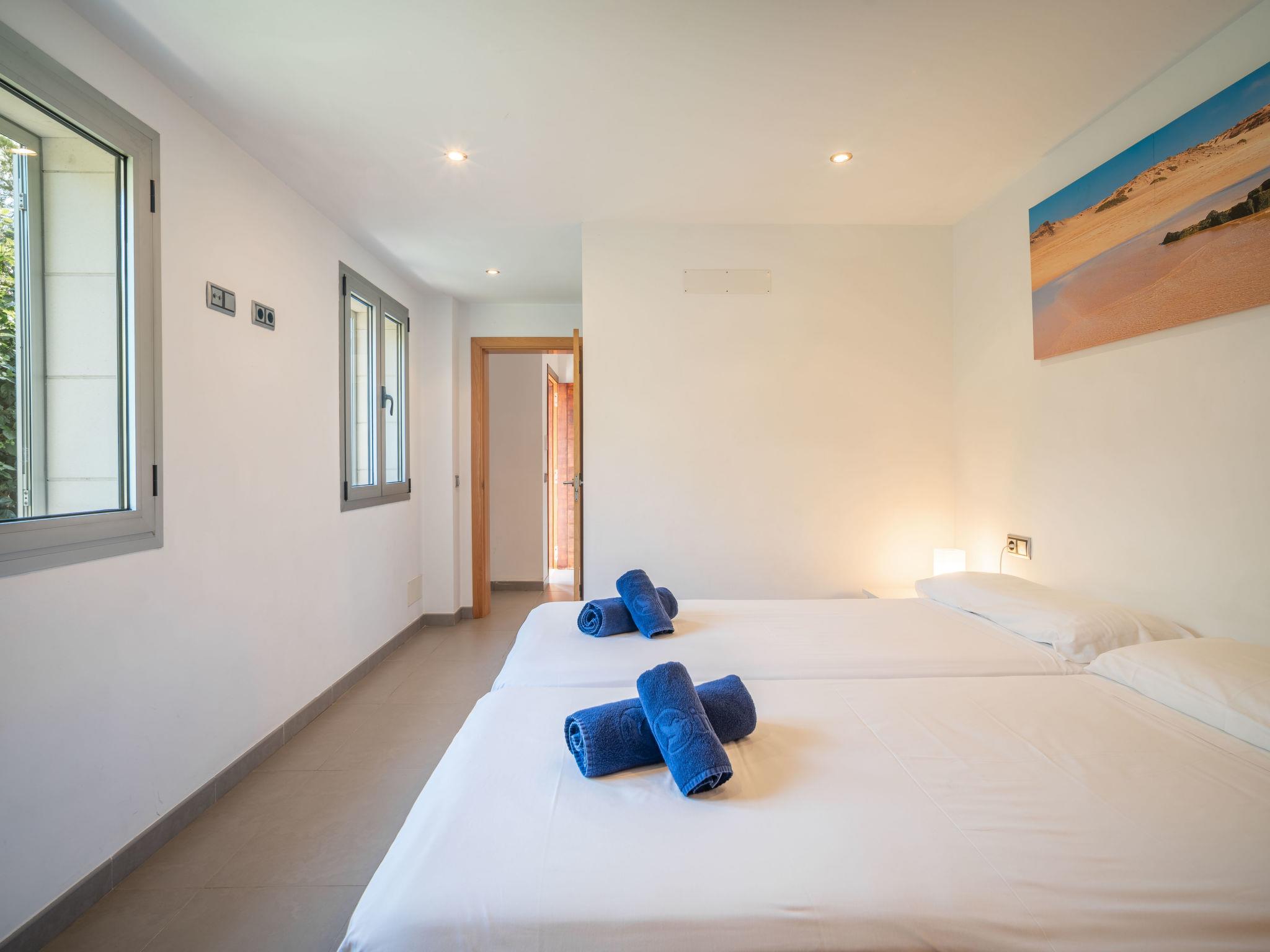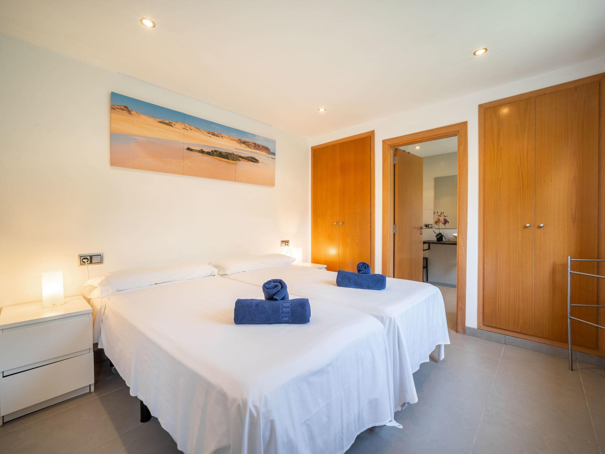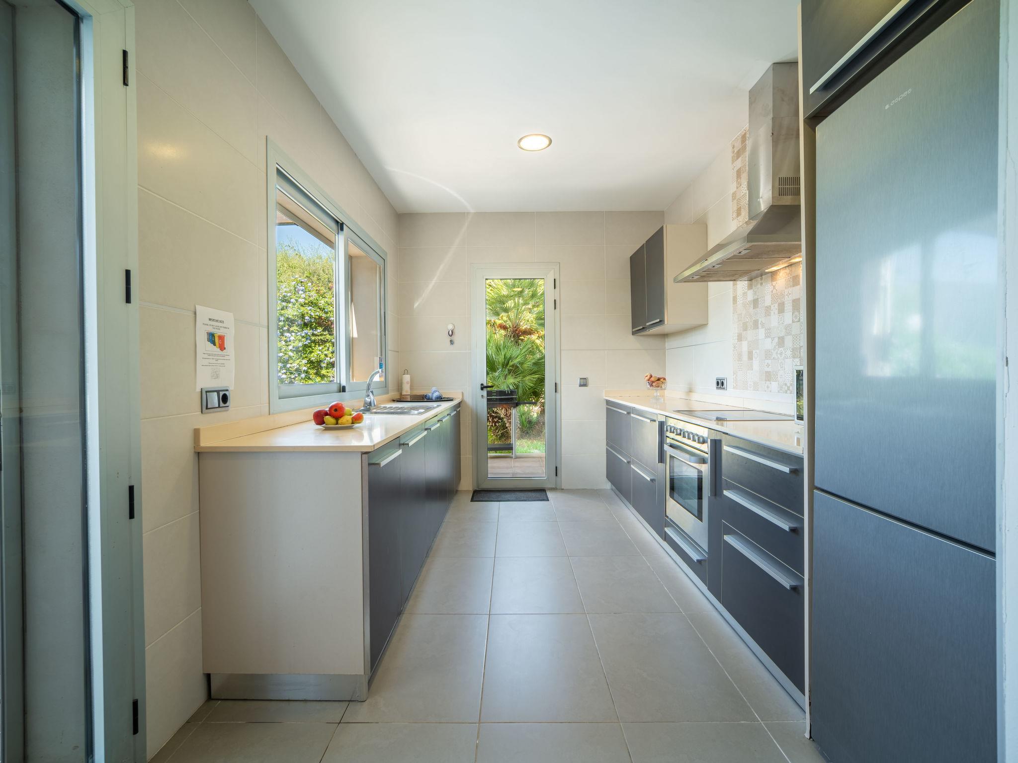 "Amanecer", 4-room villa 157 m2 on 2 levels. Object suitable for 6 adults. Spacious and bright, modern and cosy furnishings: open large living/dining room with sliding door, panoramic window with dining table, TV, satellite TV, flat screen, air conditioning and forced-air heating. Exit to the patio, to the swimming pool. 1 large double bedroom with panoramic window with 2 beds (90 cm, length 190 cm), bath/WC. 1 large double bedroom with panoramic window with 2 beds (90 cm, length 190 cm). Kitchen (oven, dishwasher, 4 ceramic glass hob hotplates, microwave, freezer, electric coffee machine). Exit to the garden. Bath/shower/WC. Upper floor: 1 large double bedroom with sliding door, panoramic window with 1 french bed (180 cm, length 200 cm), bath/shower/WC, air conditioning and forced-air heating. Exit to the terrace. Large terrace, patio, lawn, porch. Terrace furniture, balcony furniture, barbecue, deck chairs, covered balcony. Partial view of the sea and the mountains. Facilities: washing machine, iron, hair dryer. Internet (WiFi, free). ETV/2273 // Reg. Nr.: ESFCTU00000704300005100200000000000000000000ETV/22730