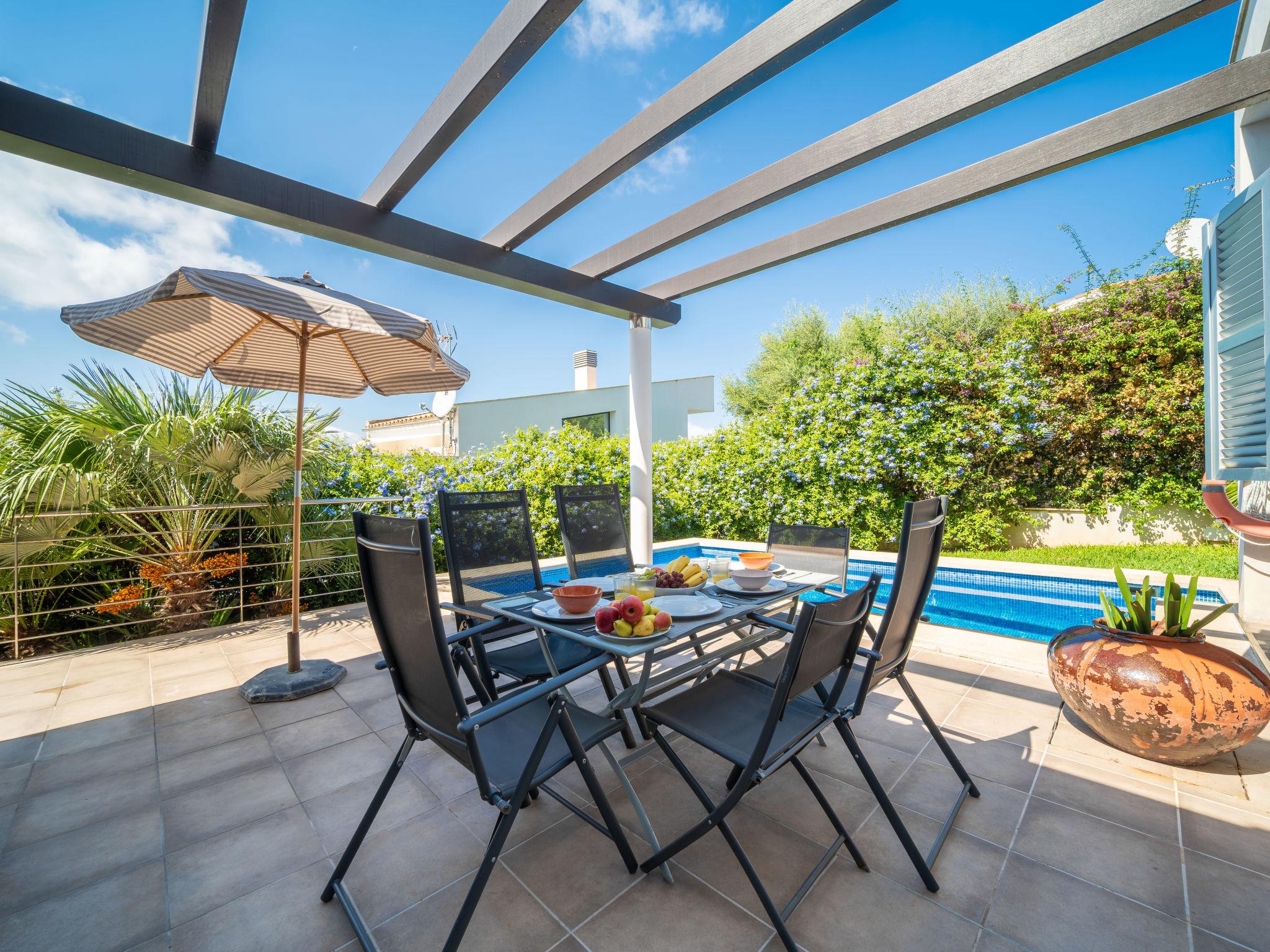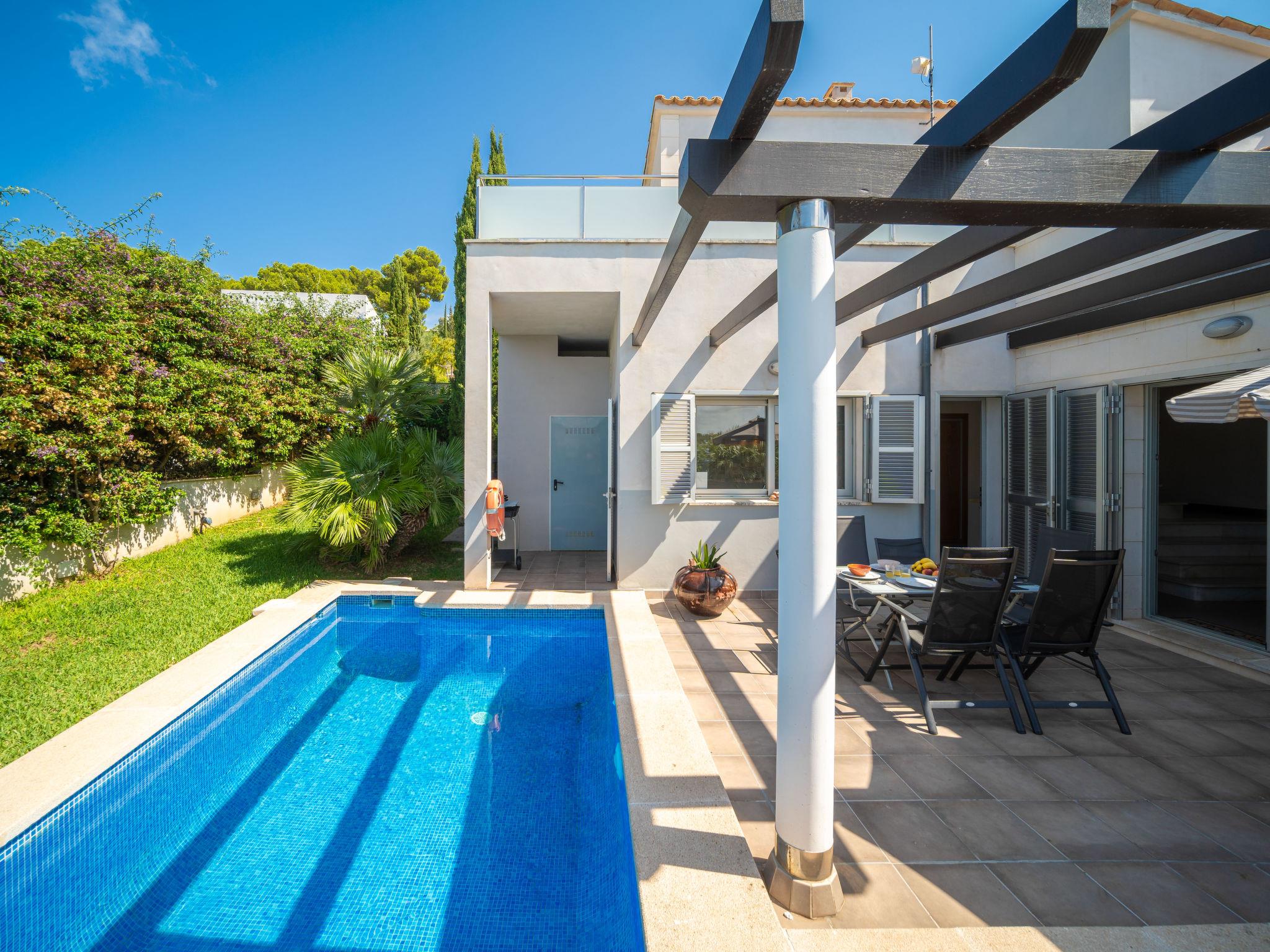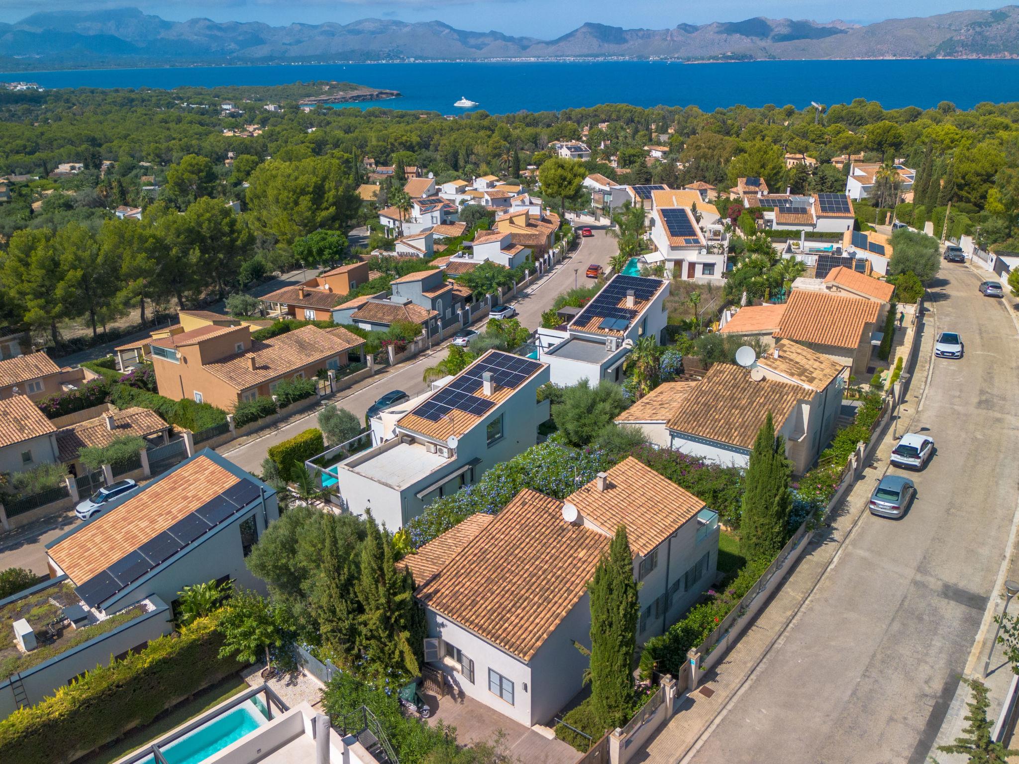 Bonaire, Alcúdia: Beautiful, comfortable villa "Amanecer", 2 storeys. In the district of Cielo de Bonaire, in a quiet, sunny position residential area (villas), 1 km from the edge of the forest, 1.3 km from the sea, 1.9 km from the beach. Private: property 400 m2 (fenced), large garden with lawn and wildlife garden, swimming pool angular (5 x 4 m, depth 120 - 190 cm, seasonal availability: 01.Jan. - 31.Dec.). Patio, arbour, pergola, garden furniture, barbecue, pool maintenance by the owner/gardener. In the house: internet access, WiFi, air conditioning, burglar alarm system, washing machine. Grocery 1.5 km, supermarket 3.4 km, restaurant 1.2 km, bar 1.3 km, bakery 3.4 km, bicycle rental 3.5 km, 40 minute walk to the centre, bus stop 1.5 km, ferry "Port Alcúdia" 5.5 km, sandy beach "Sant Pere" 1.9 km, rocky beach "La Victoria" 1.8 km, swimming bay 1.3 km. Sports harbour 1.3 km, golf course (18 hole) 5 km, riding stable 6 km, walking paths from the house 800 m, cycle lane 800 m. Nearby attractions: Ciudad Romana de Alcúdia 3.8 km, Puerto de Alcúdia 4.5 km, Ermita de La Victoria y s'Illot Playa. 3.8 km, Malpas, Es Barcarés, Sa Marina. Puerto de Pollença y Pollença Pueblo 12 km, Hidropark Aquatic Park 5.5 km. Hiking paths: Atalaya de Alcúdia - La Victoria 4.5 km, Puig de Sant Martí, Alcúdia. Serra de Tramuntana y Albufera Mallorca. Please note: car recommended. Object suitable for 6 adults. The owner does not accept any youth groups. Airfield 55 km from the property.